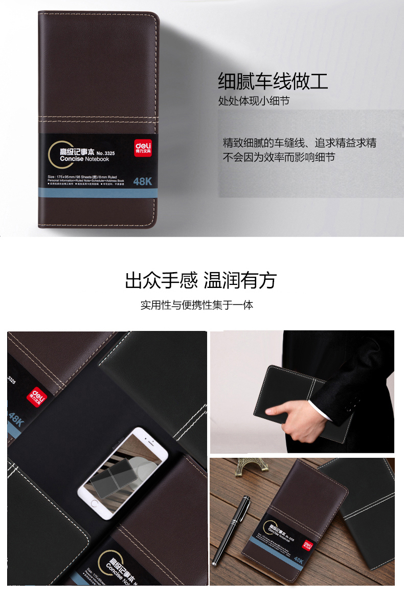 得力(deli) 笔记本子活页会议商务办公皮面本创意日记本开会记事本文具用品 32K-80页 7902 自营