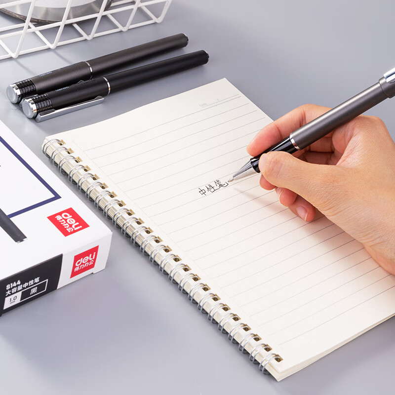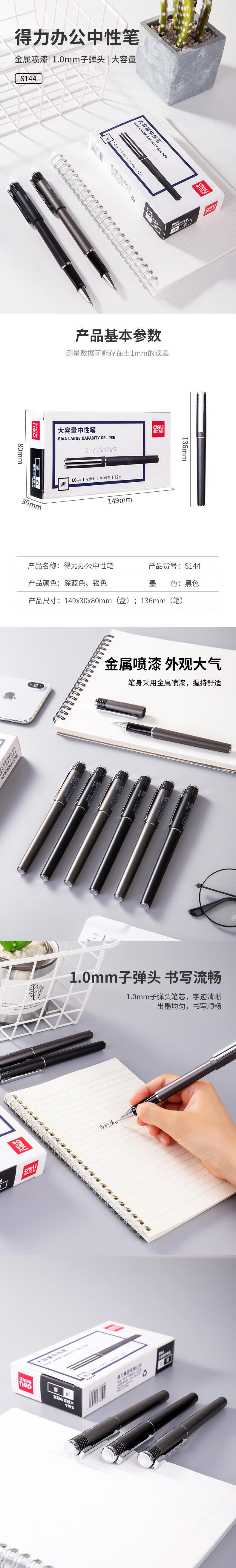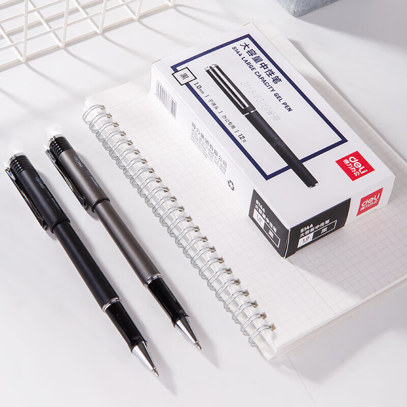 得力(deli)S144 1.0mm办公子弹头大容量中性笔 黑色【12支/盒】 自营