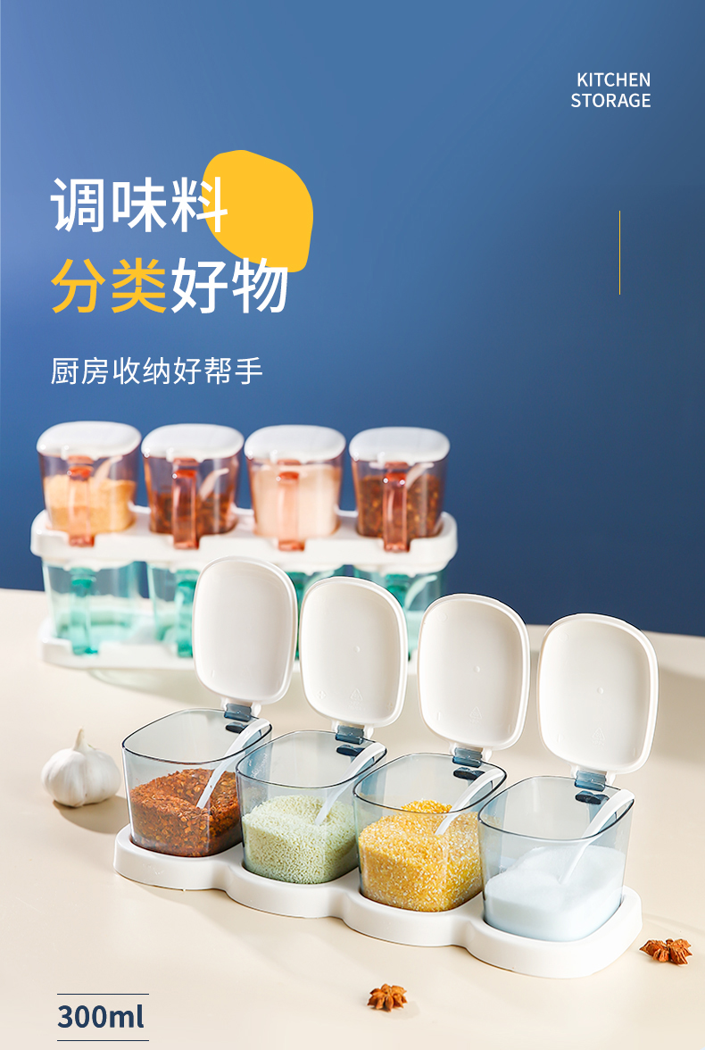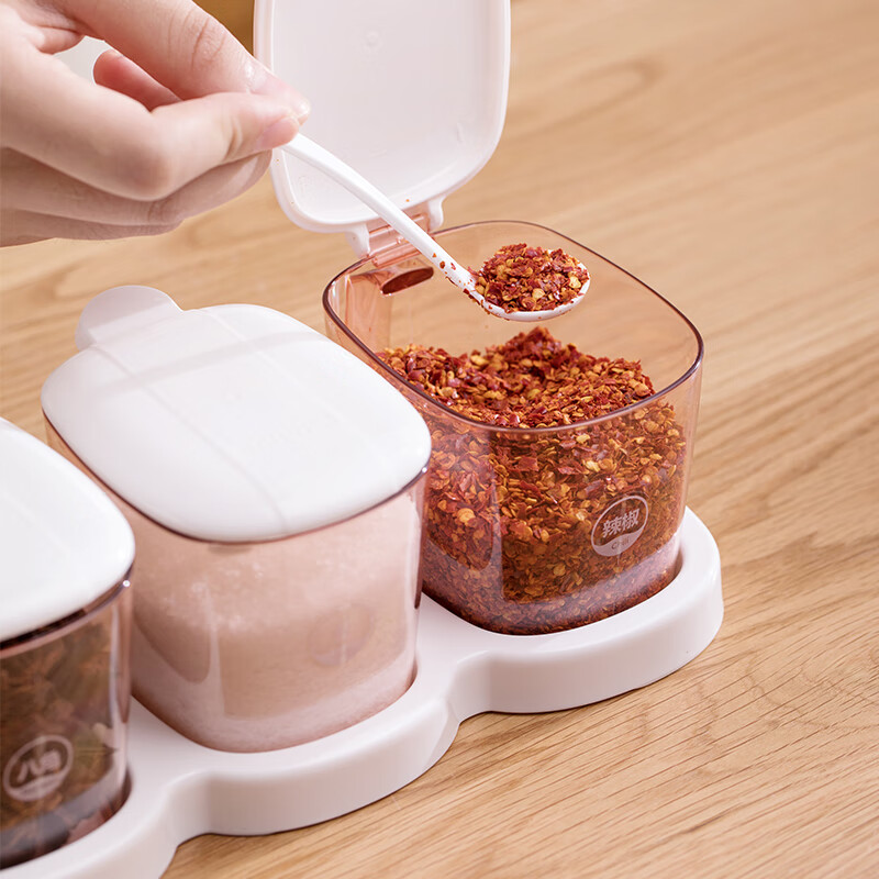 茶花调料盒调味罐塑料调料瓶套装 盐盒餐桌家用厨房用品盐罐调料缸香料理盒子收纳盒架 B25003 自营
