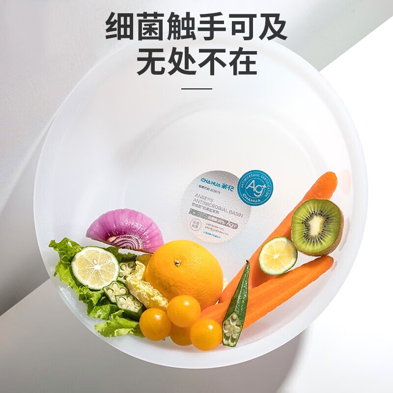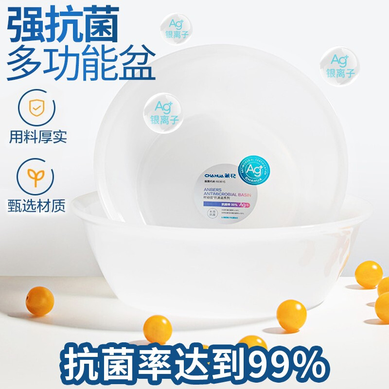 茶花 抗菌洗头洗脸盆 塑料盆子洗衣盆 浴盆水盆26.5cm 欧铂兹 圆盆S 白色 1只装 自营