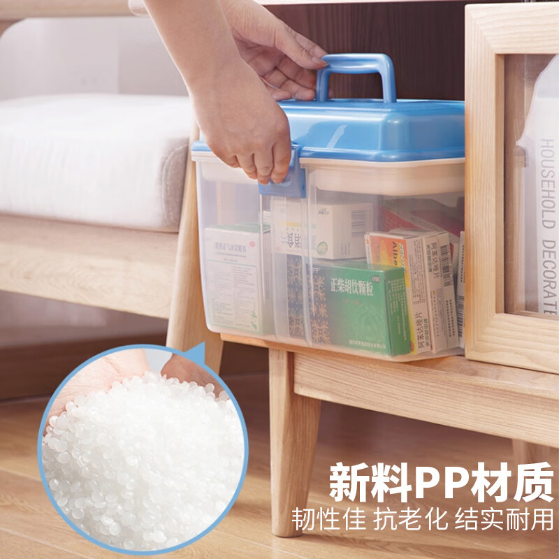 茶花 收纳箱 口罩收纳盒 整理箱子储物箱 塑料箱家用药箱 药盒式多层 9.5L 自营