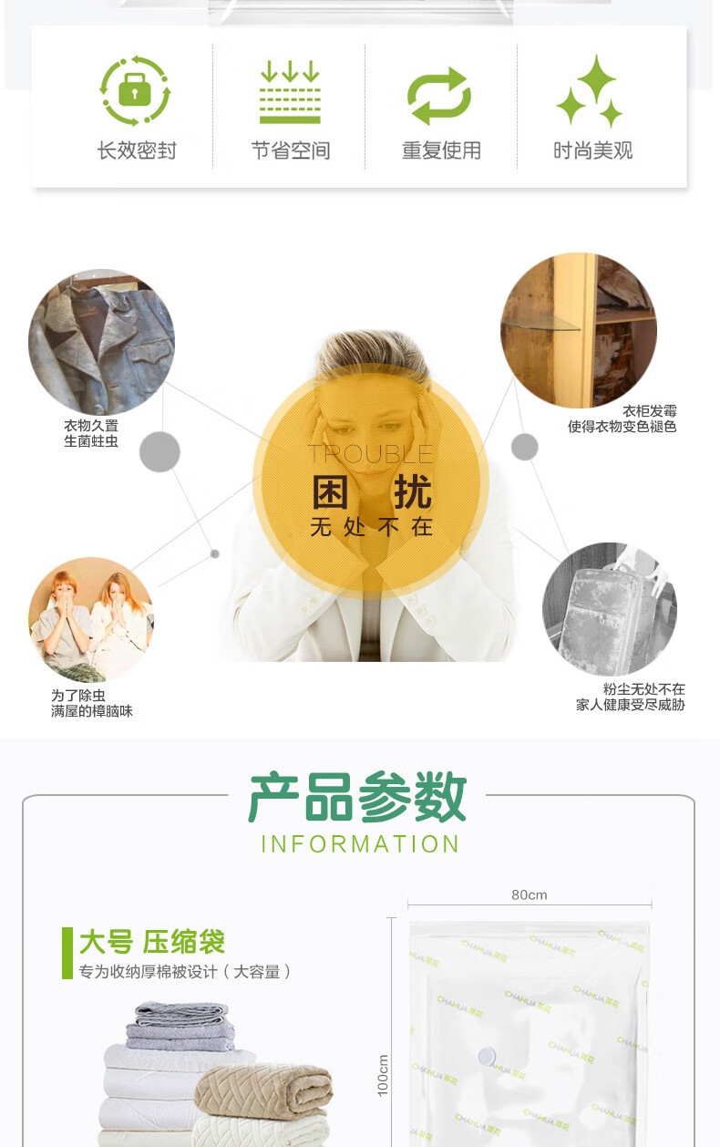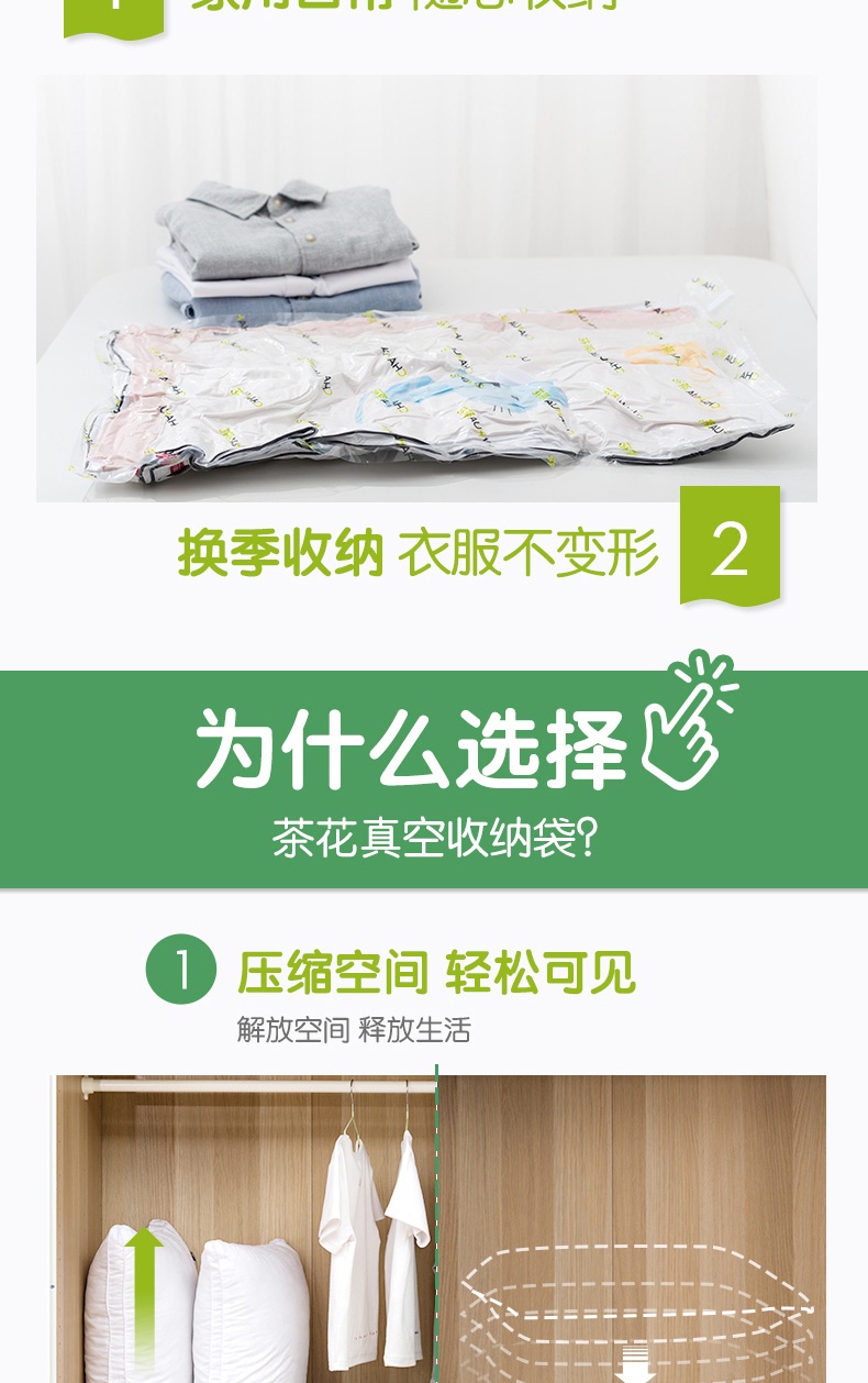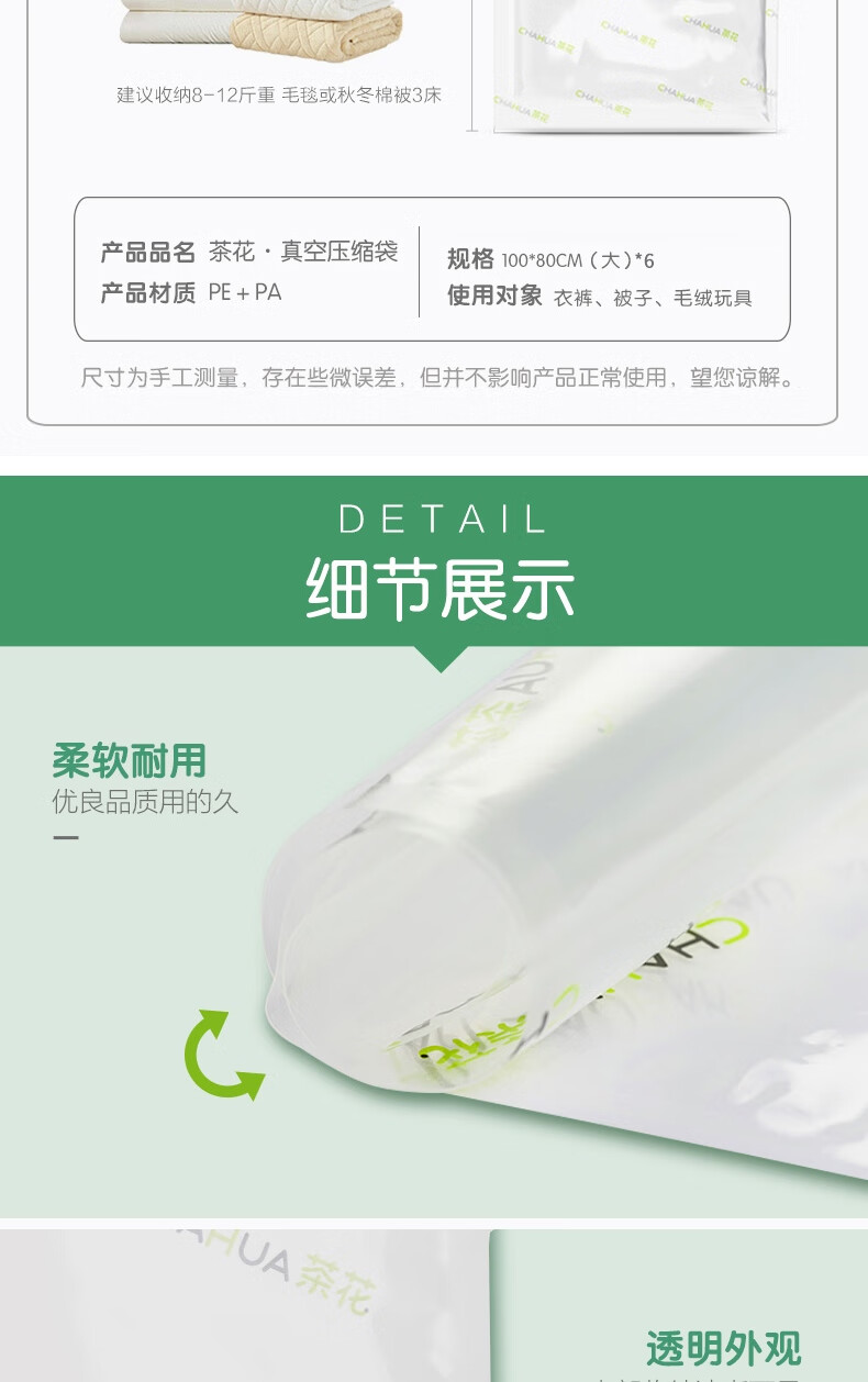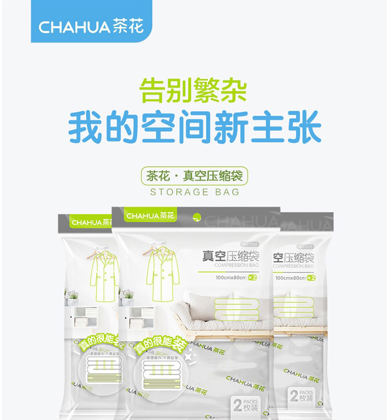 茶花 真空压缩袋 棉被褥收纳袋 衣物整理袋 中号搬家打包真空袋带手泵6大号 自营