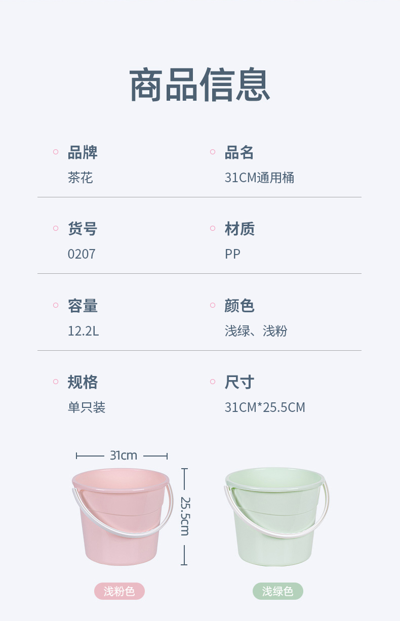 茶花 塑料桶12.2L大号家用手提水桶大桶洗车洗衣圆桶子加厚储水桶大容量31CM 0207 自营