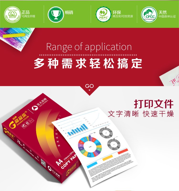亚太森博亮丽打印纸复印纸白纸一包500张整箱5包2500张办公用纸70克 精品亮丽A4-70g-8包装(4000张)
