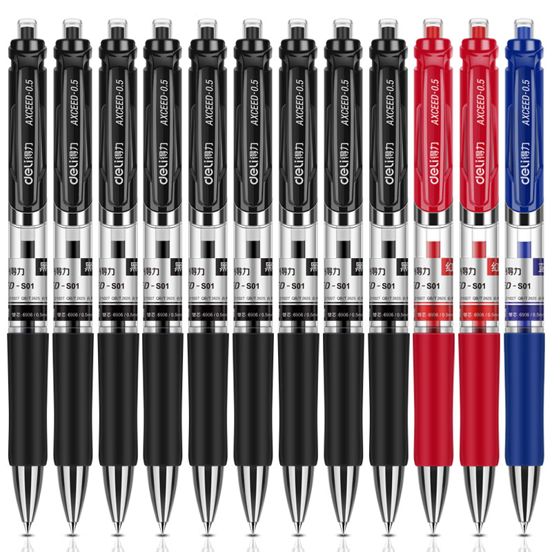 得力(deli)中性笔 0.5mm子弹头经典办公签字笔 水笔按动笔 9黑2红1蓝 33513 自营