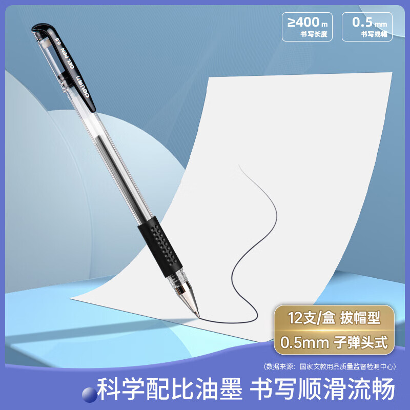 得力(deli)0.5mm办公中性笔 水笔签字笔 12支/盒黑色34567 自营