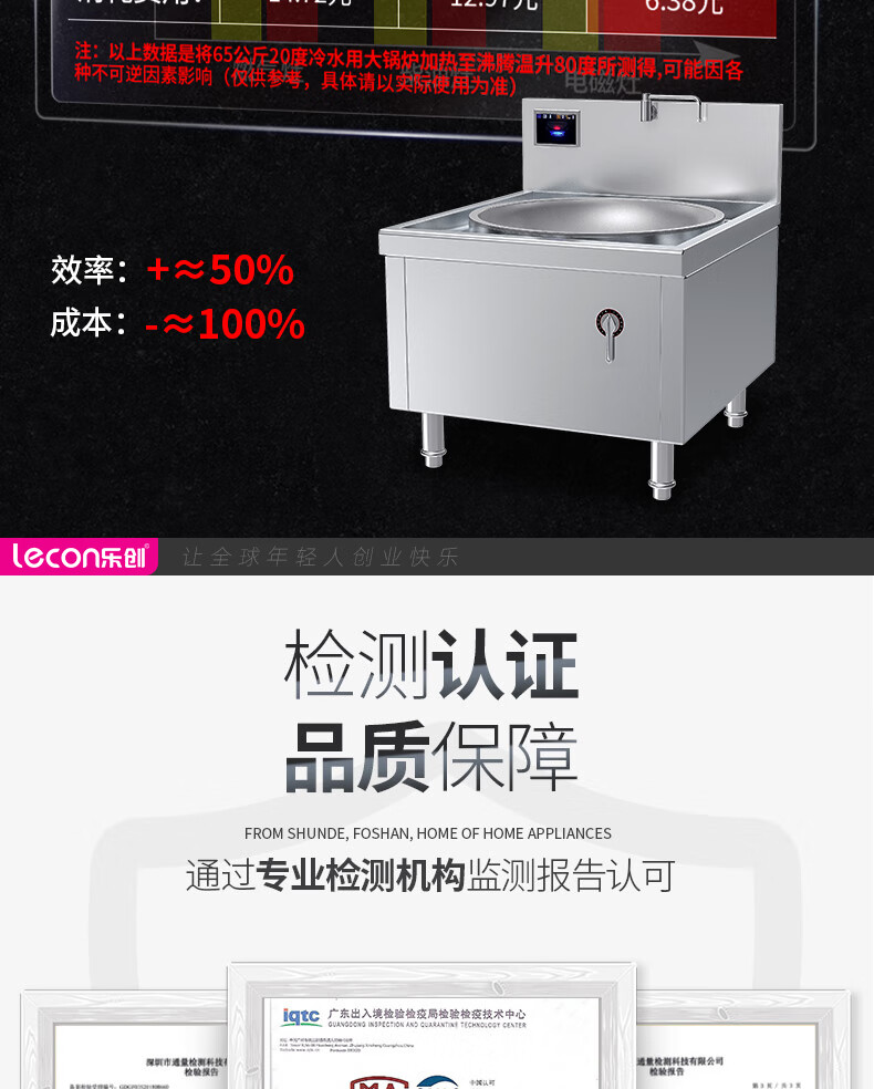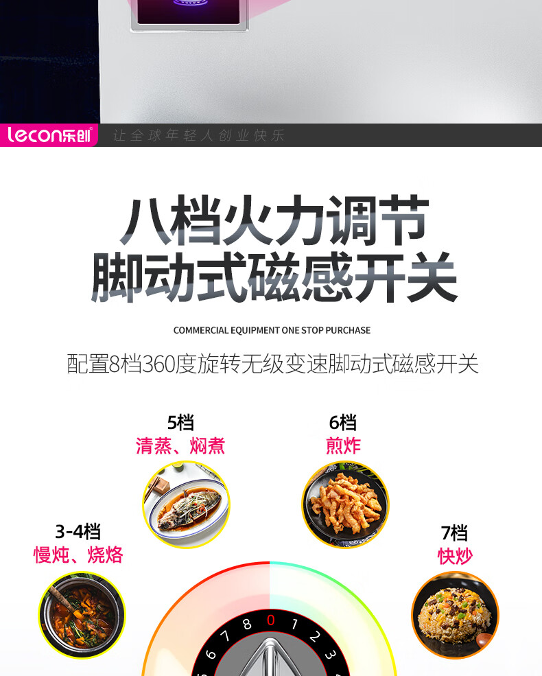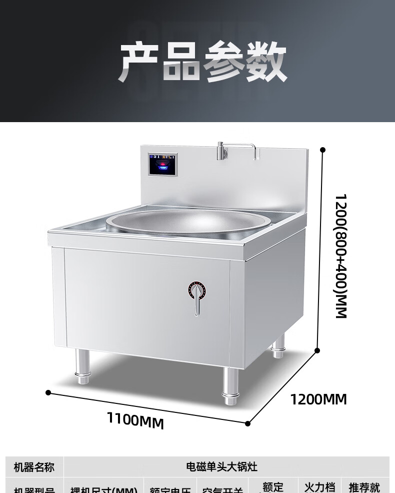 ¥10540.00乐创(lecon)商用单头单尾小炒灶 15KW大功率食堂炒菜电磁灶 201不锈钢工程款 LC-J-DXC400