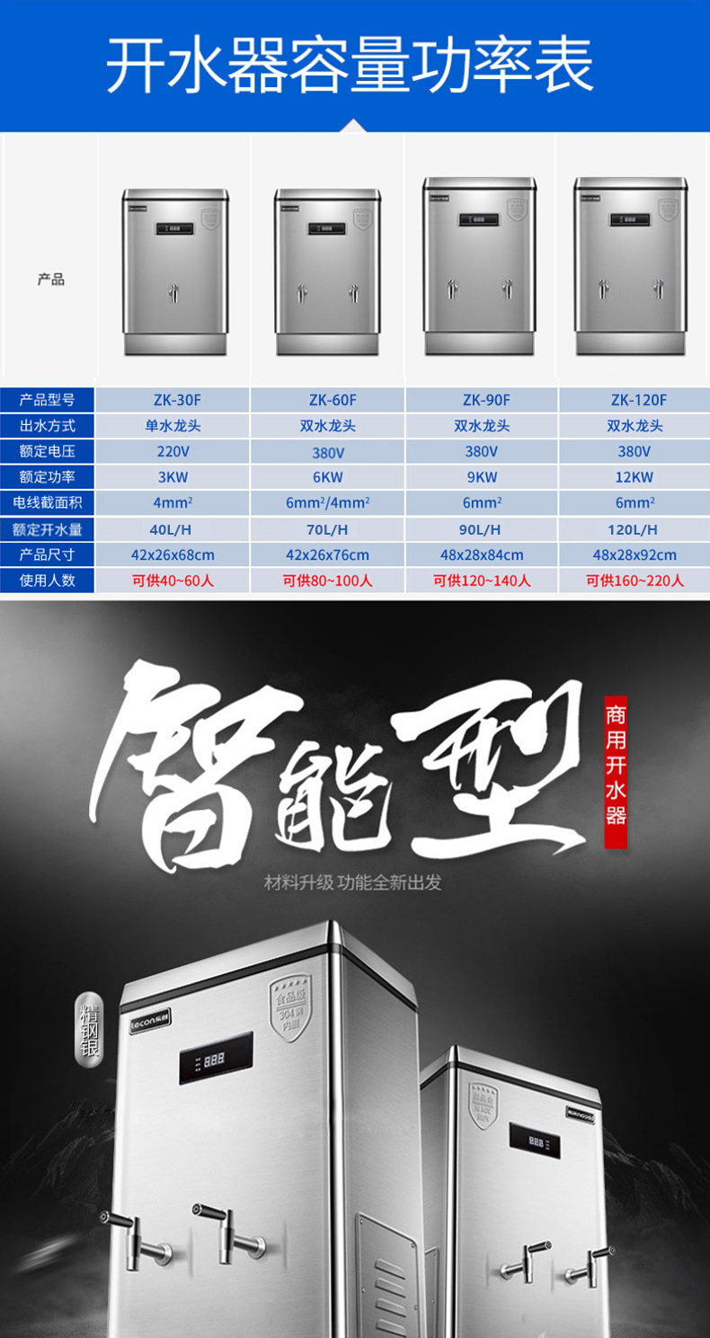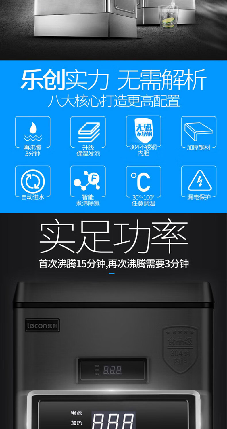 乐创(lecon)商用开水器电热烧水器烧水桶不锈钢大容量饮水机 120L/H 标准款ZK-120 自营