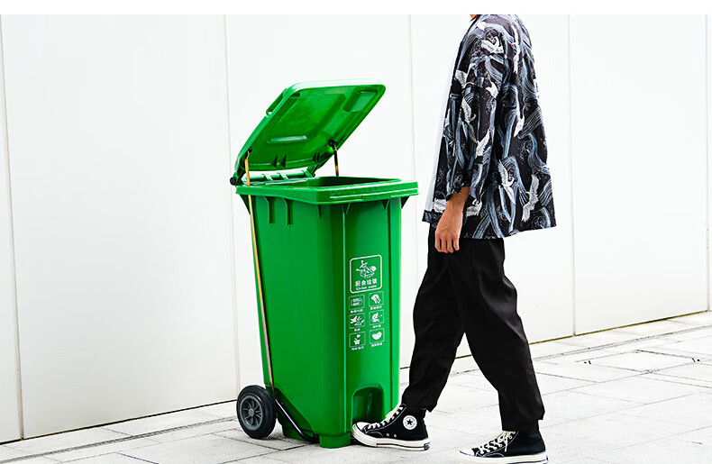 麦享环卫户外垃圾桶120L加厚大号环卫桶商用物业小区公园室外环保分类塑料桶带盖翻盖果皮箱酒店饭店大垃圾桶 自营