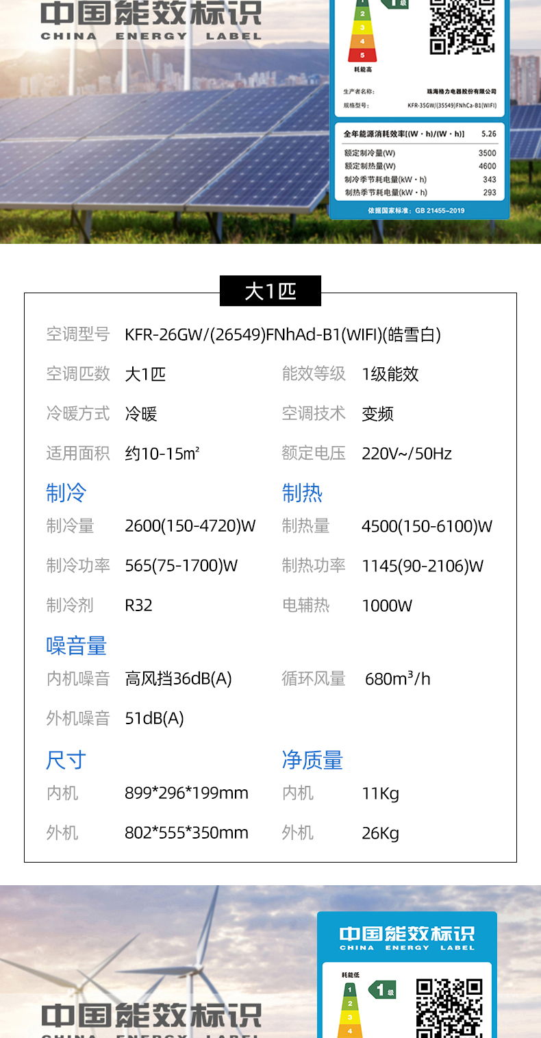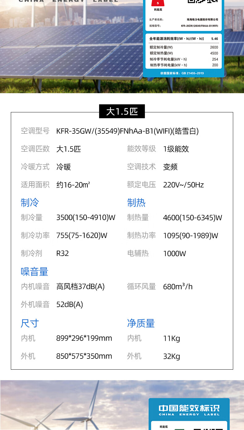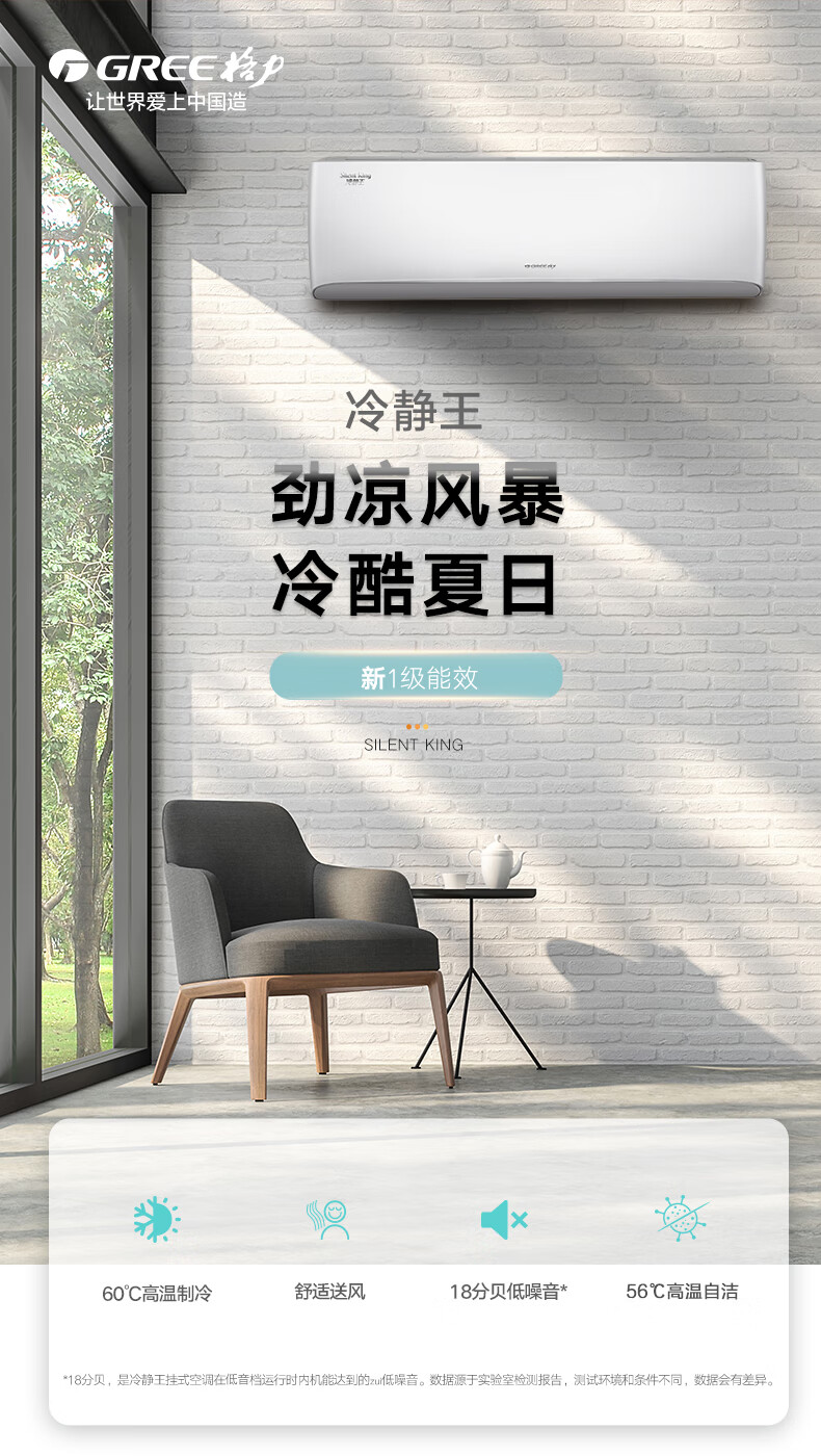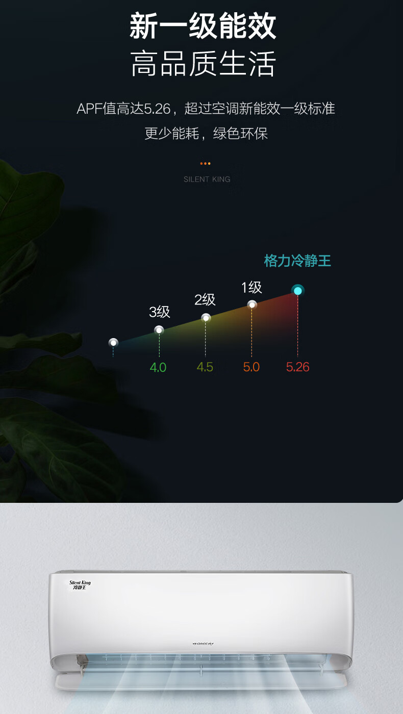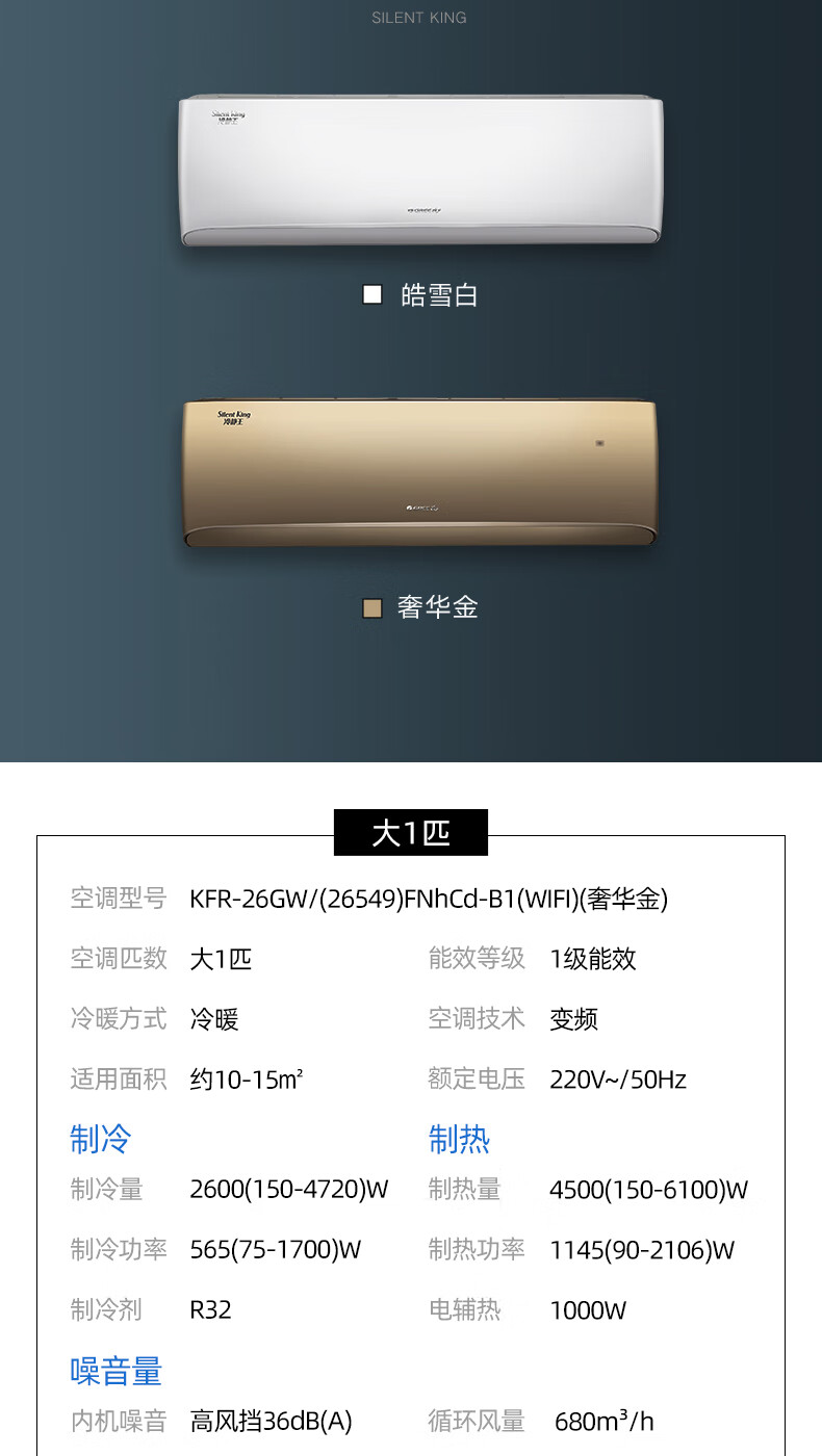 ¥1551.00格力(GREE) 1.2P冷静王 智能WiFi 新国标1级变频冷暖壁挂式空调 奢华金 线下同款 KFR-26GW/(26549)FNhCd-B1