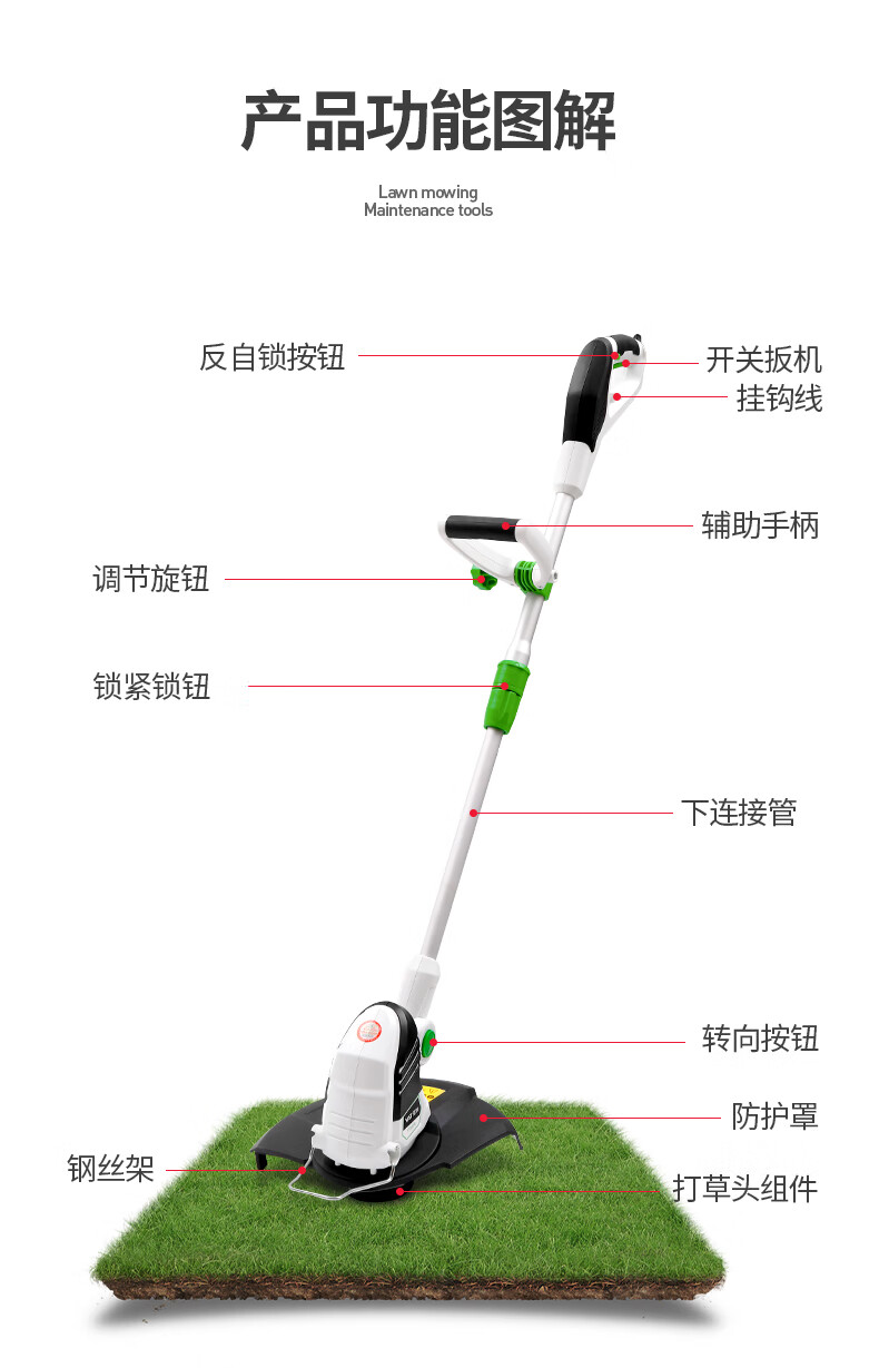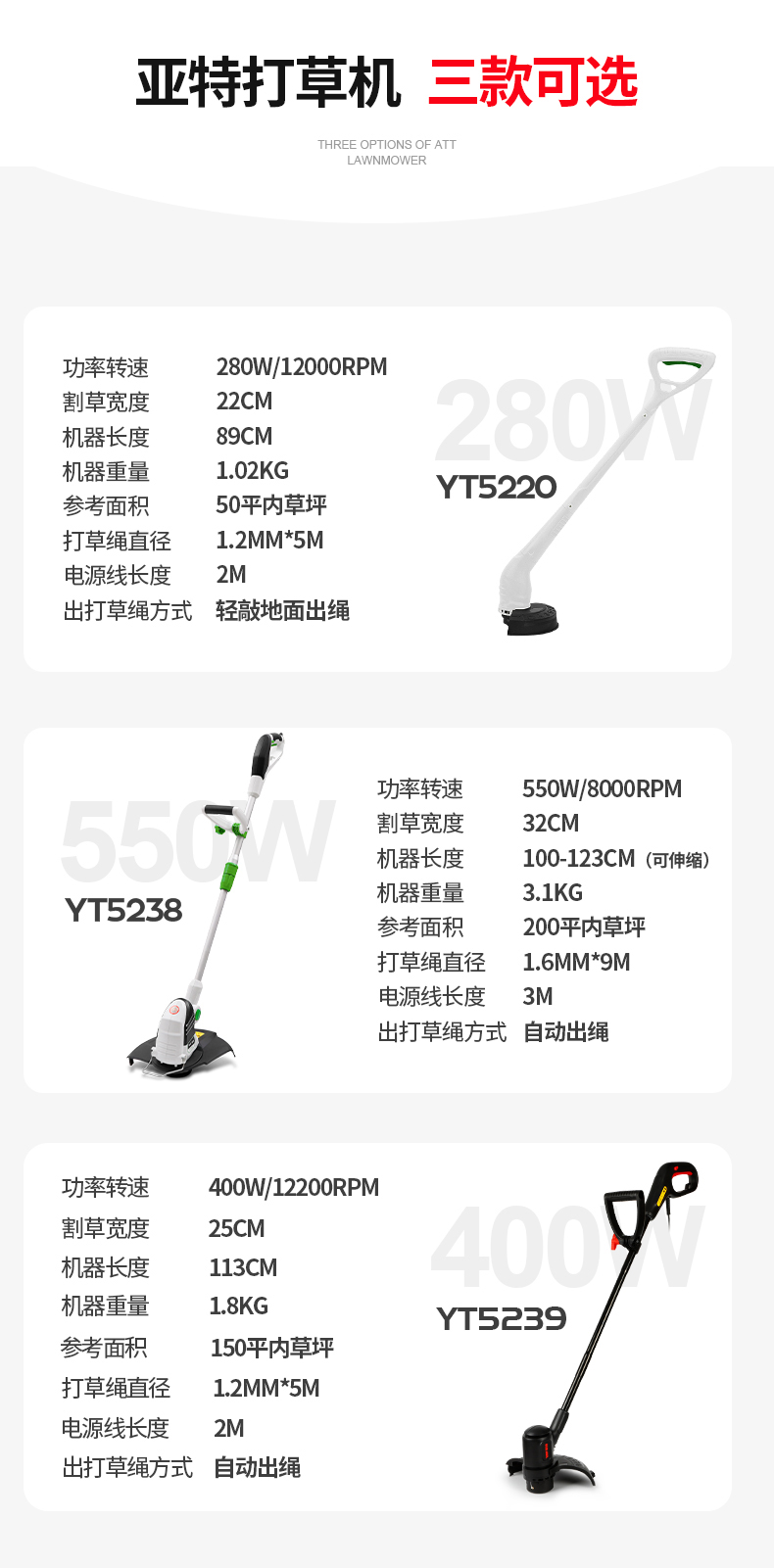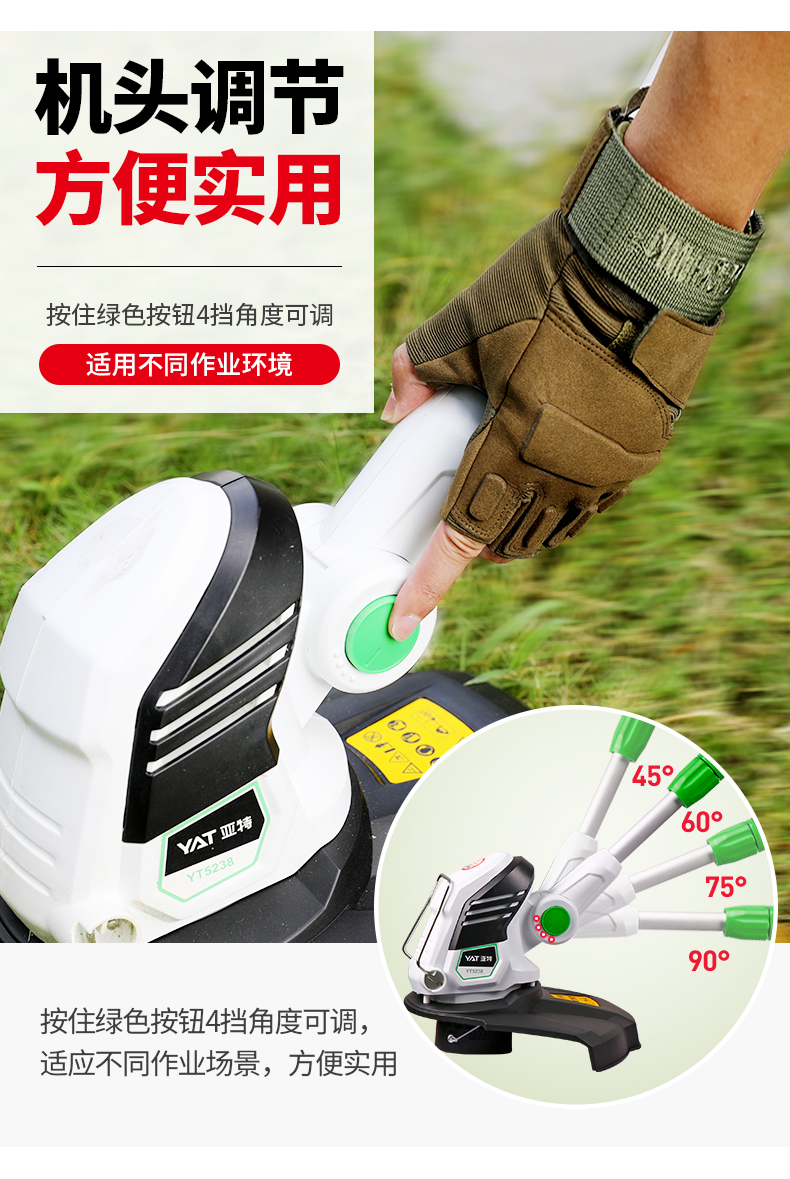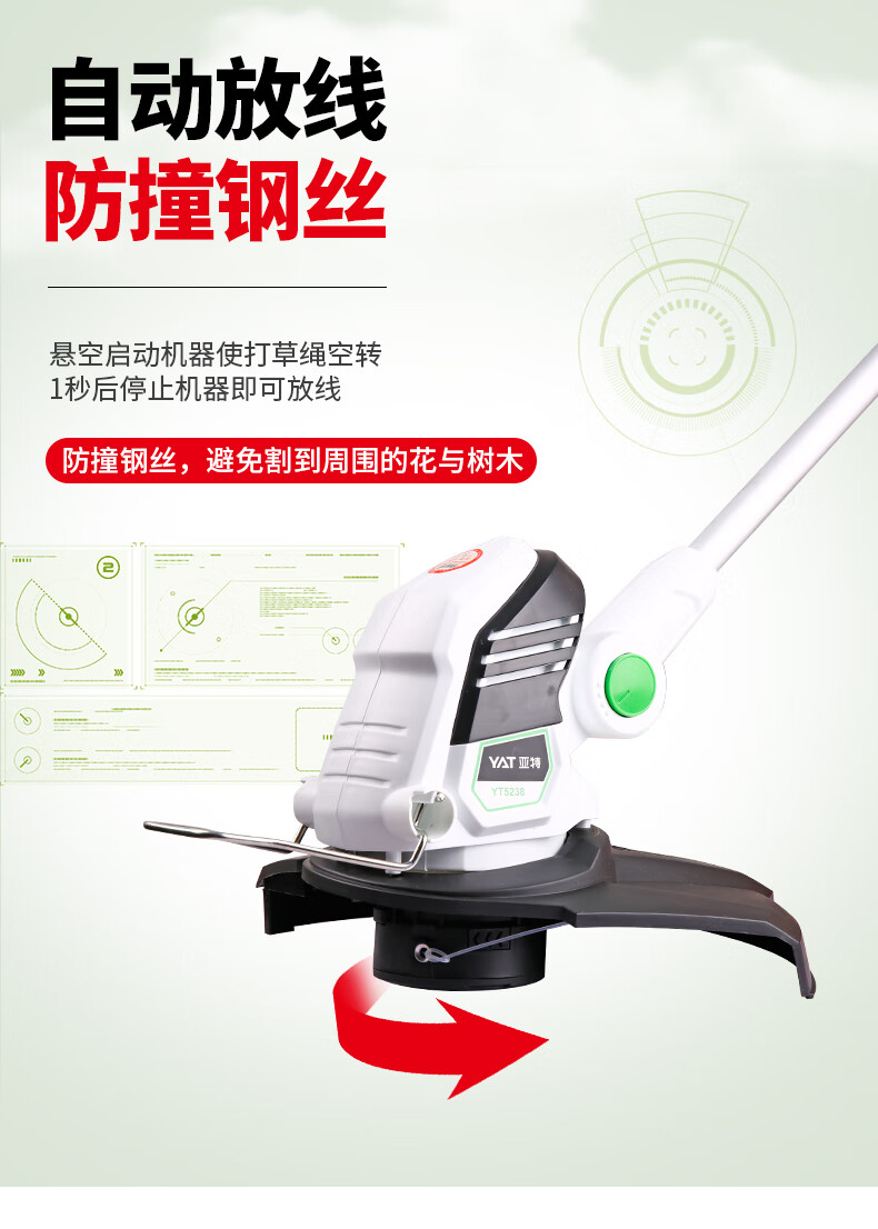 亚特(YAT)割草机除草机电动家用打草机小型除草机多功能草坪修剪机除杂草神器 自营