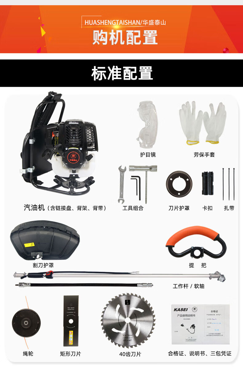 山东华盛割草机四冲程背负式139F-2C汽油割灌机割稻机打草机除草机2235B 2235B背负式四冲割草机 自营