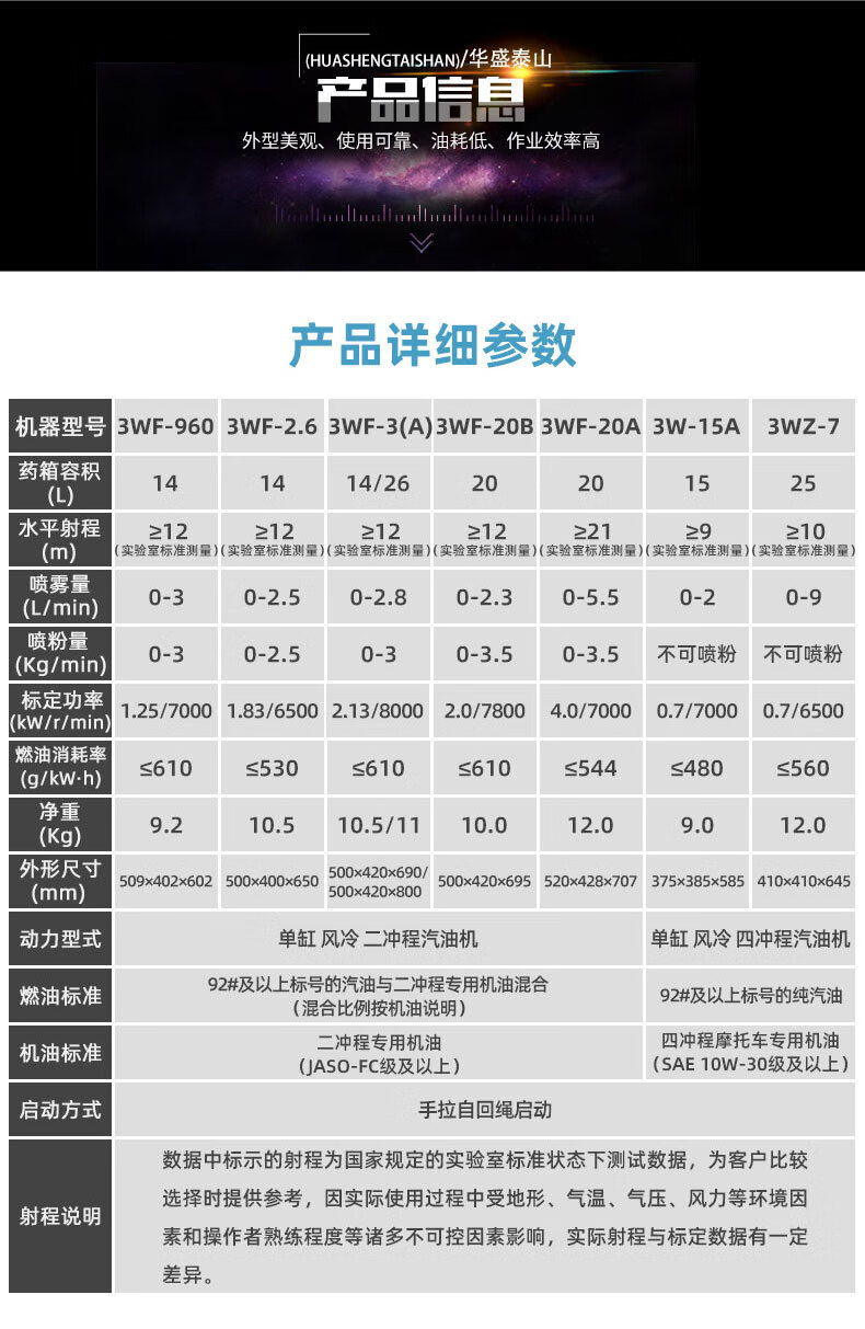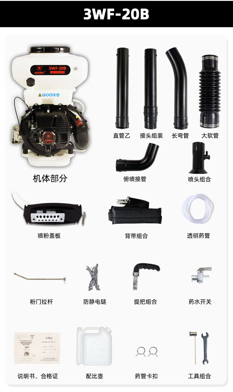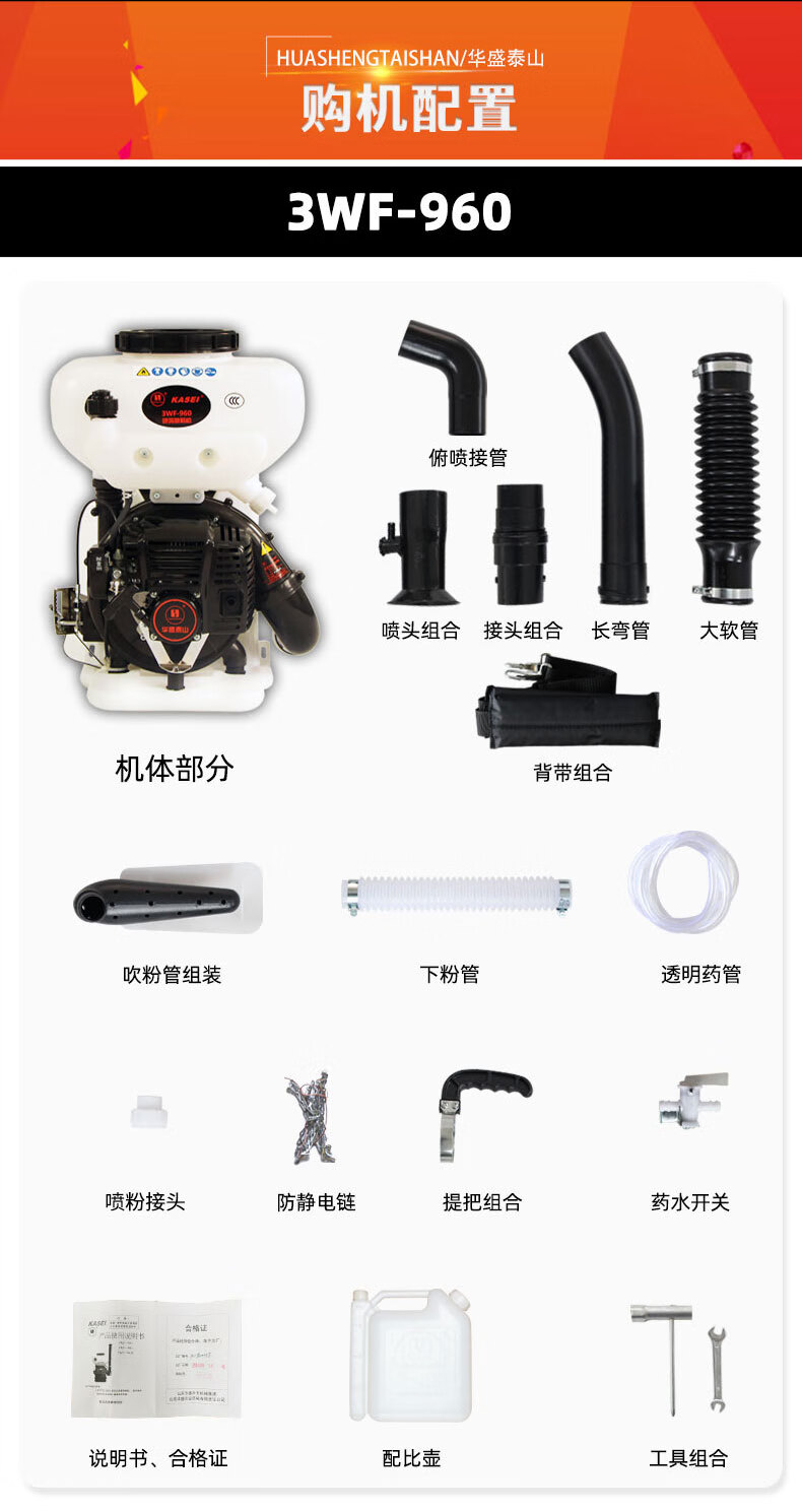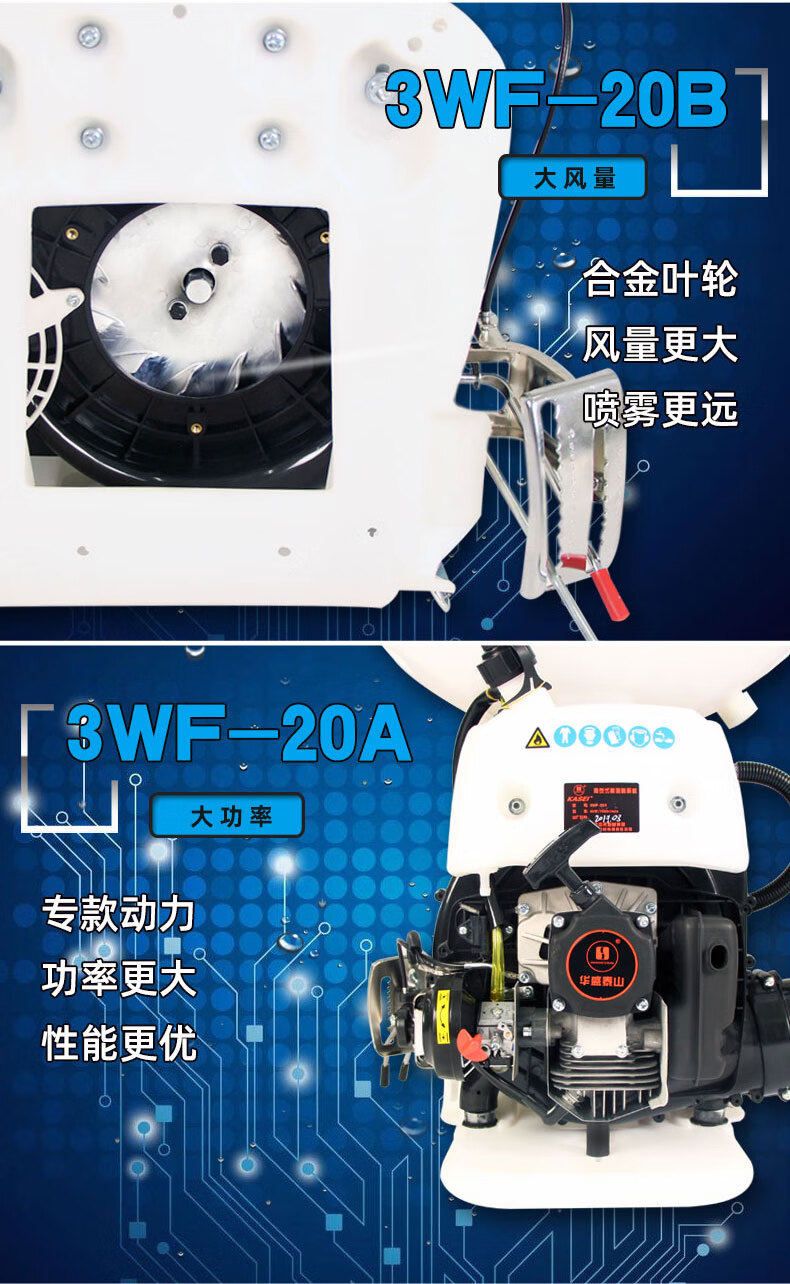 - 华盛泰山机动喷雾器农用背负式小型高压汽油喷雾机桉树喷粉机施肥机扬肥器消毒果树槟榔打药机消杀弥雾机 3WF-20A(二冲程20L喷粉状态)带喷雾泵