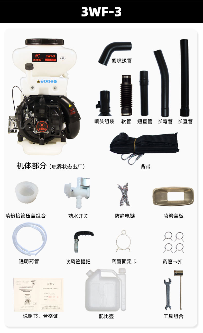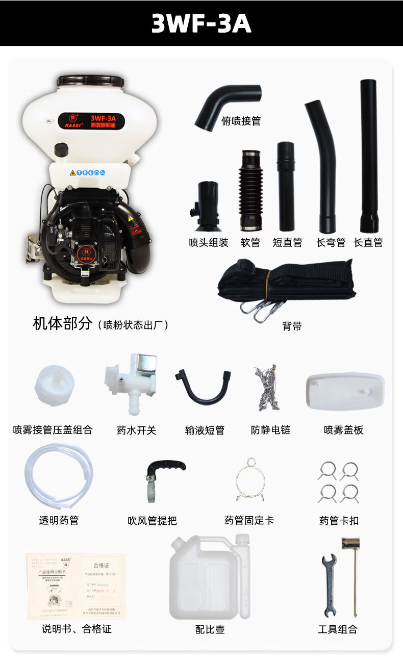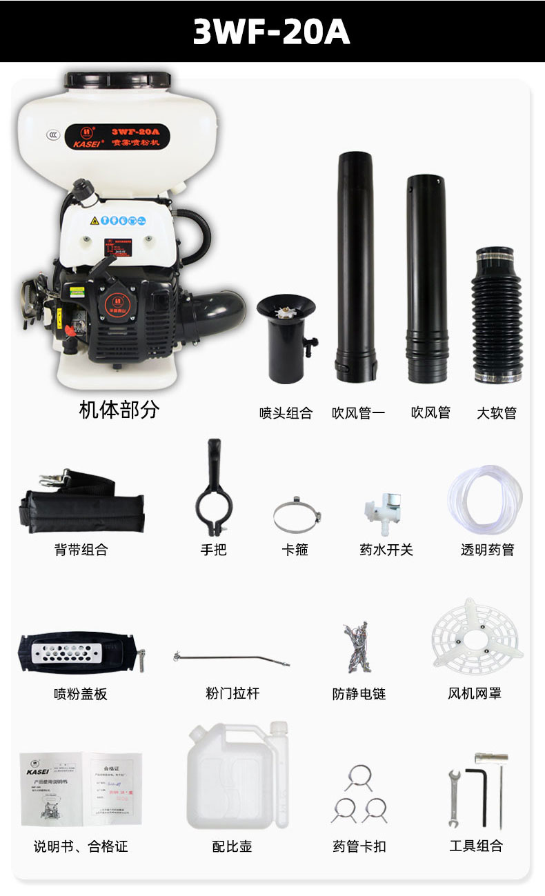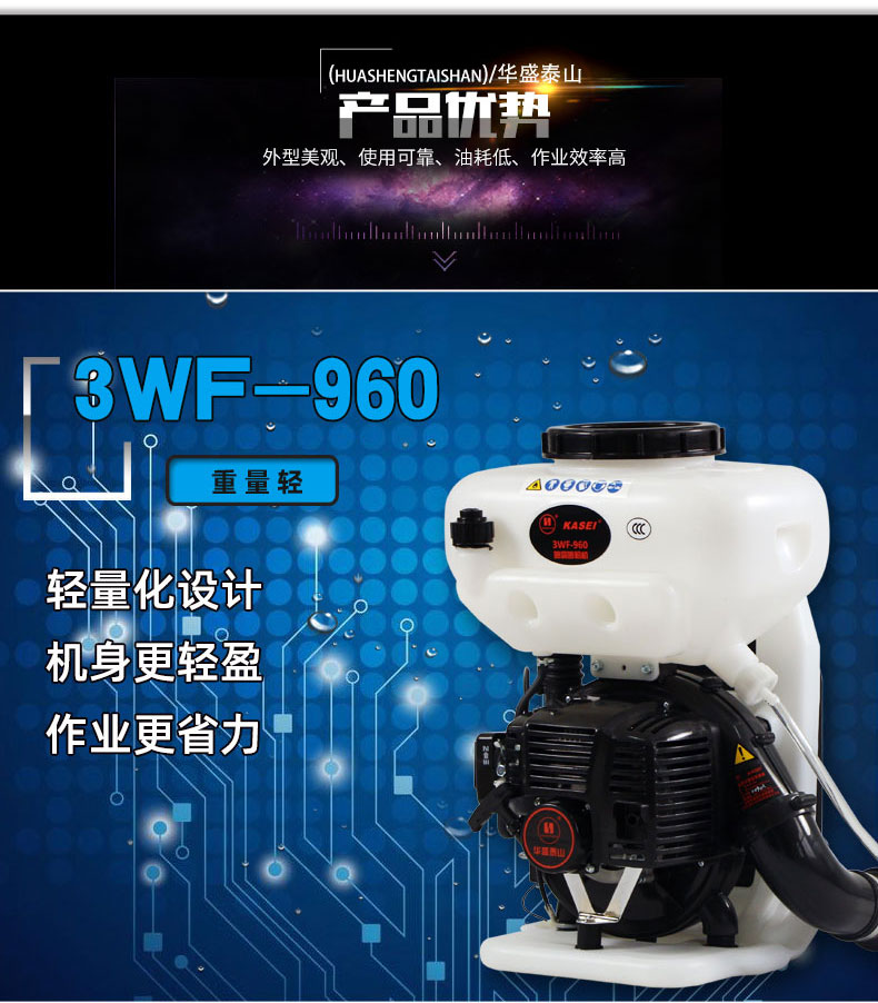 - 华盛泰山机动喷雾器农用背负式小型高压汽油喷雾机桉树喷粉机施肥机扬肥器消毒果树槟榔打药机消杀弥雾机 3WF-20A(二冲程20L喷粉状态)带喷雾泵