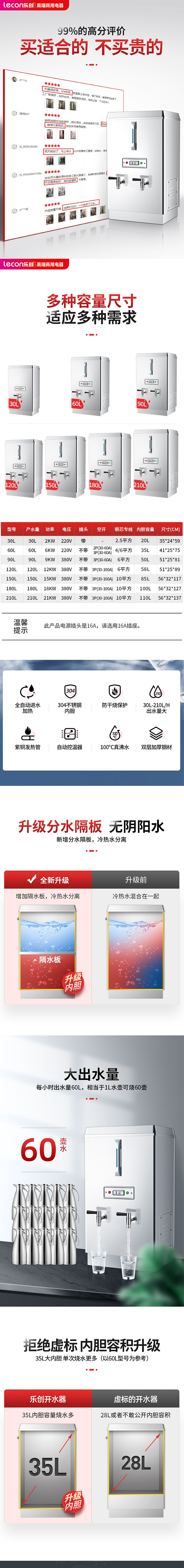 乐创(lecon)开水器 商用开水机 电热 全自动进水 304不锈钢 烧水器商用 120L/H(380V) 自营