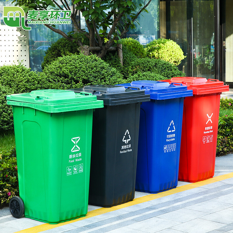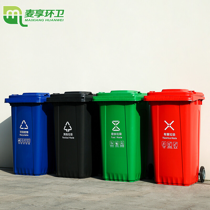 麦享户外垃圾桶商用加厚环卫垃圾桶带盖带轮工业小区物业饭店酒店户外大号塑料垃圾桶 有轮 特厚増韧(120L 可挂车) 自营