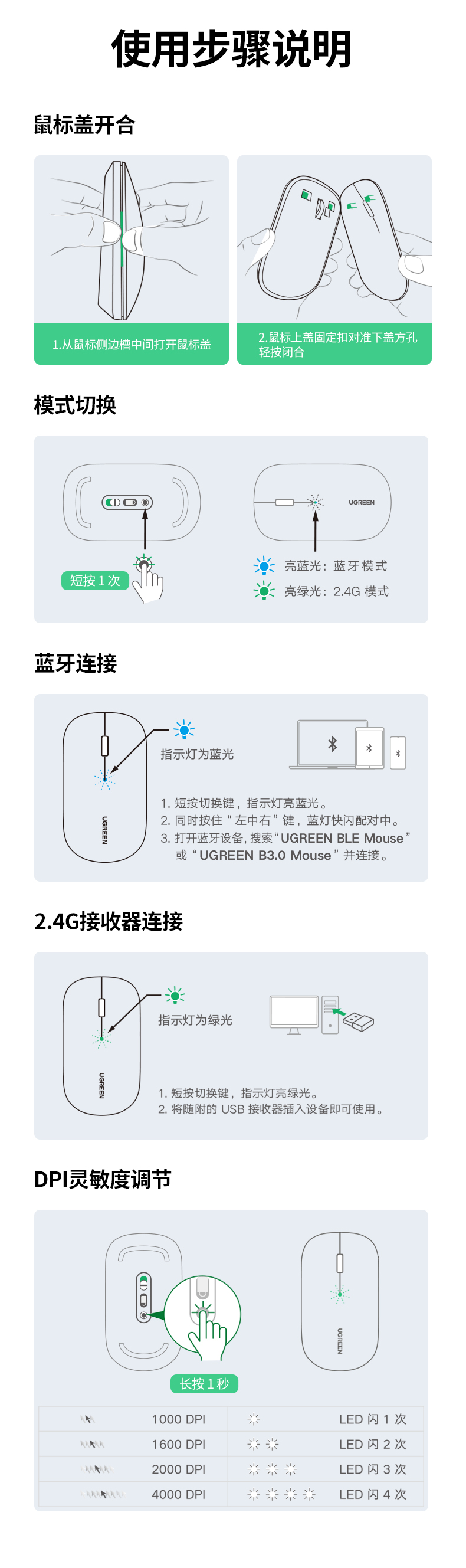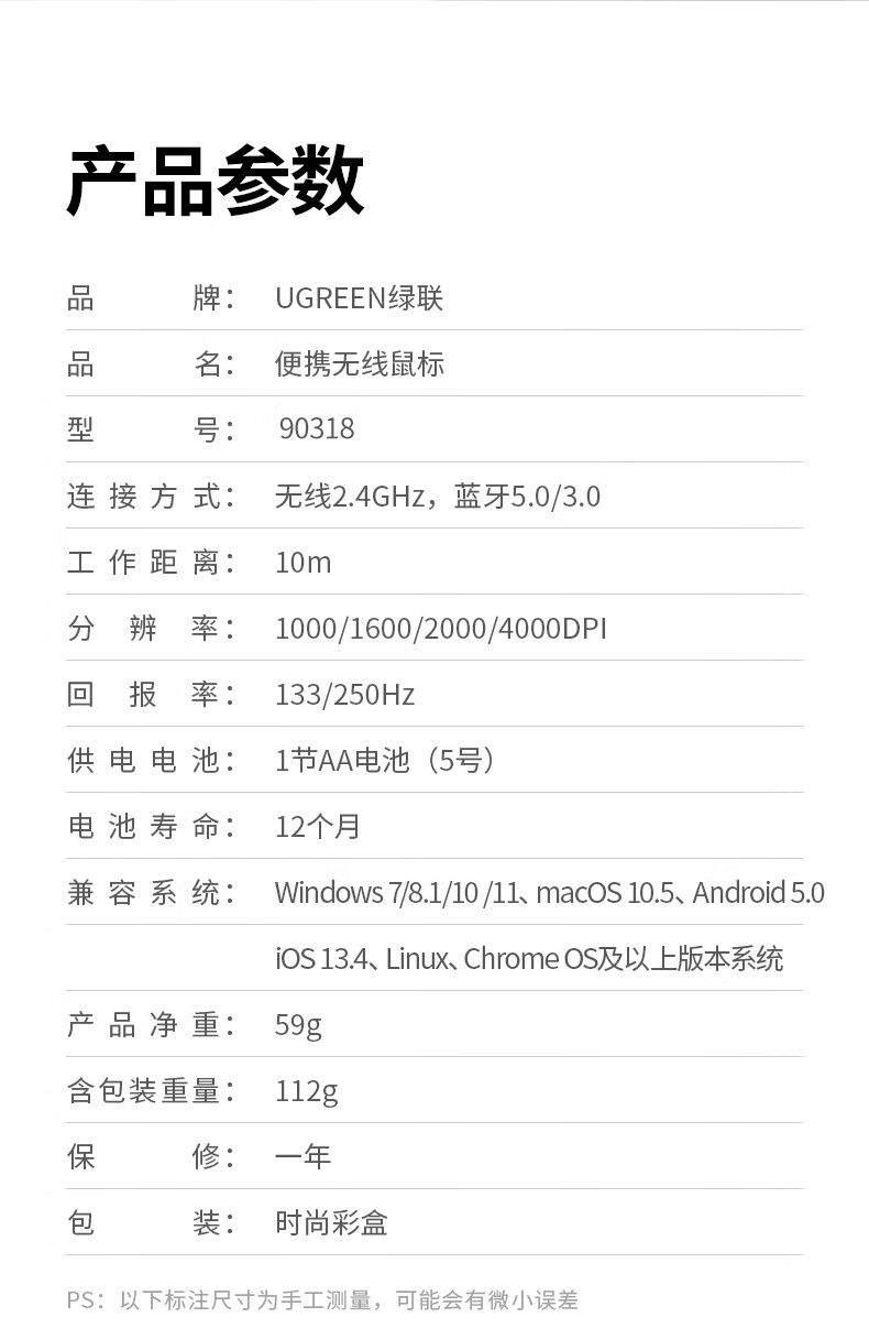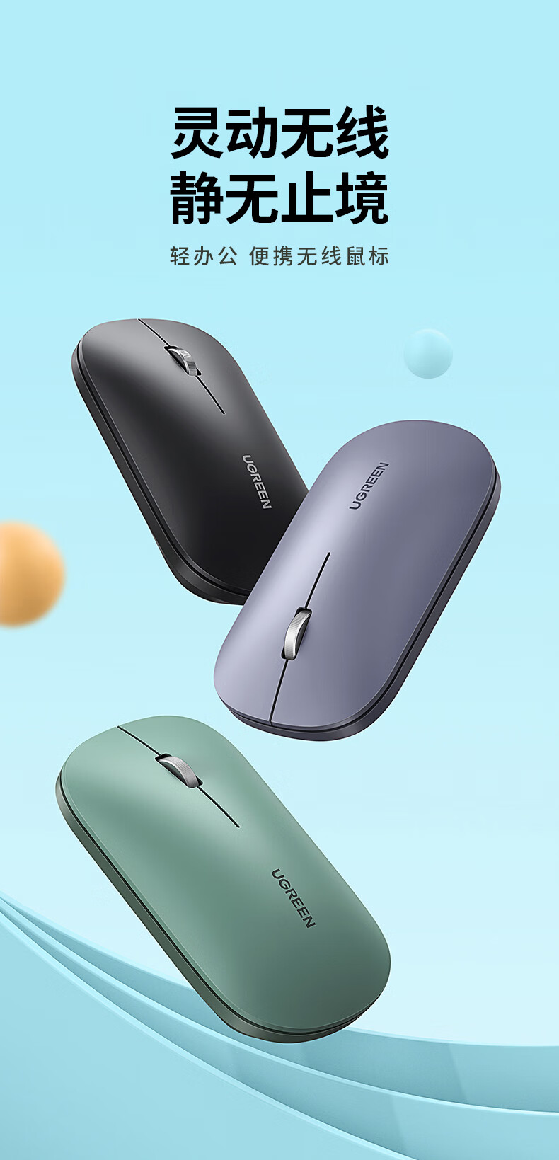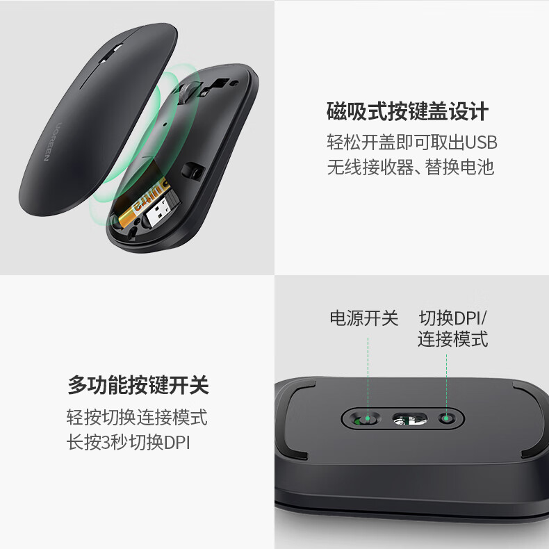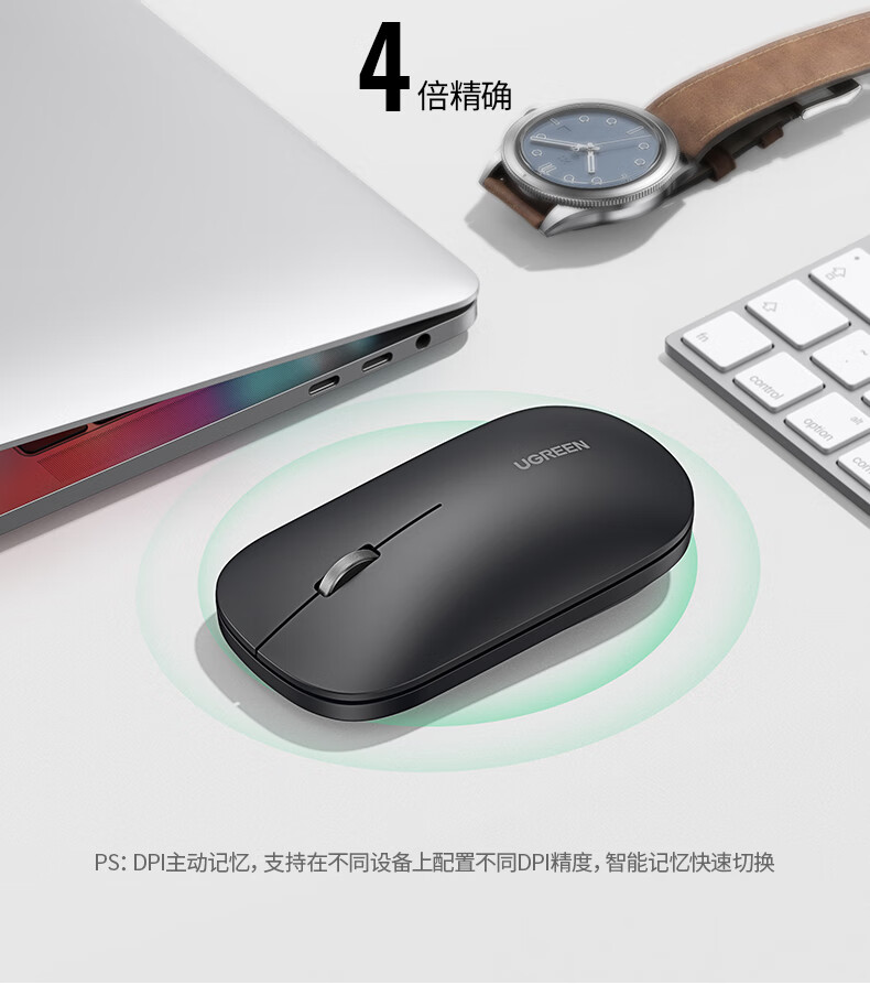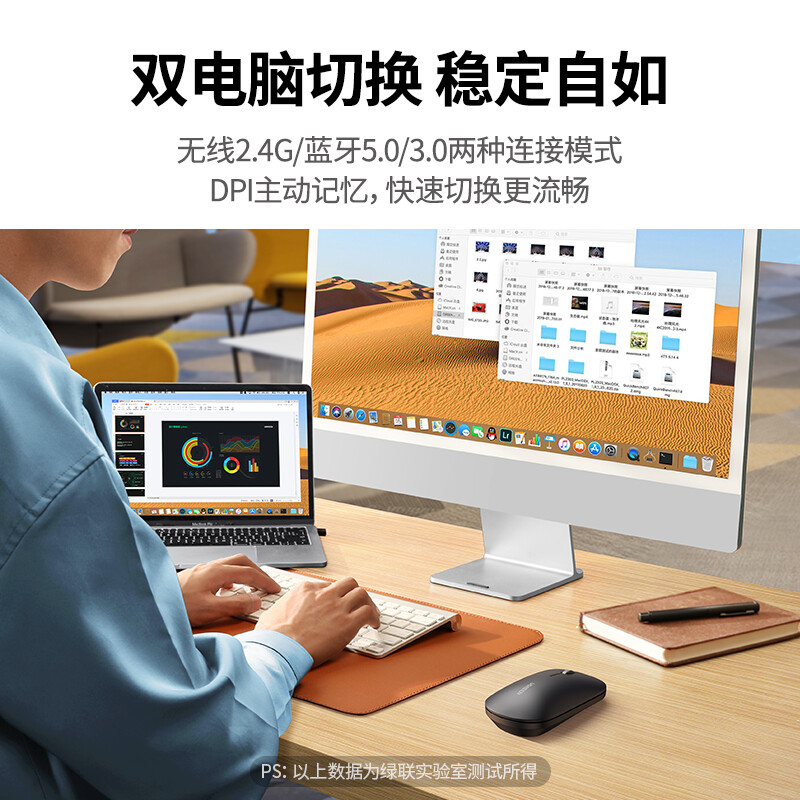 绿联 无线鼠标 2.4G/蓝牙双模鼠标 便携办公轻音鼠标 适用苹果华为联想台式机笔记本电脑 星夜黑 自营