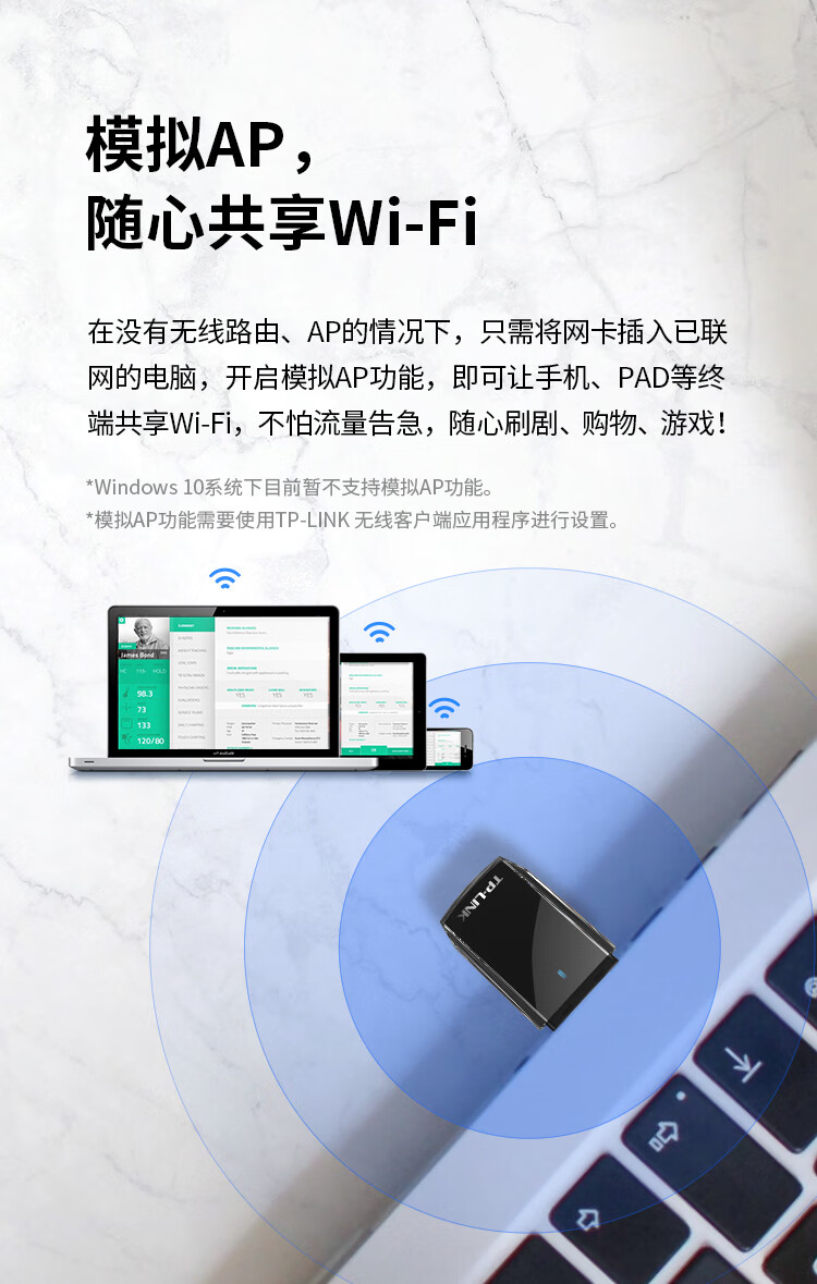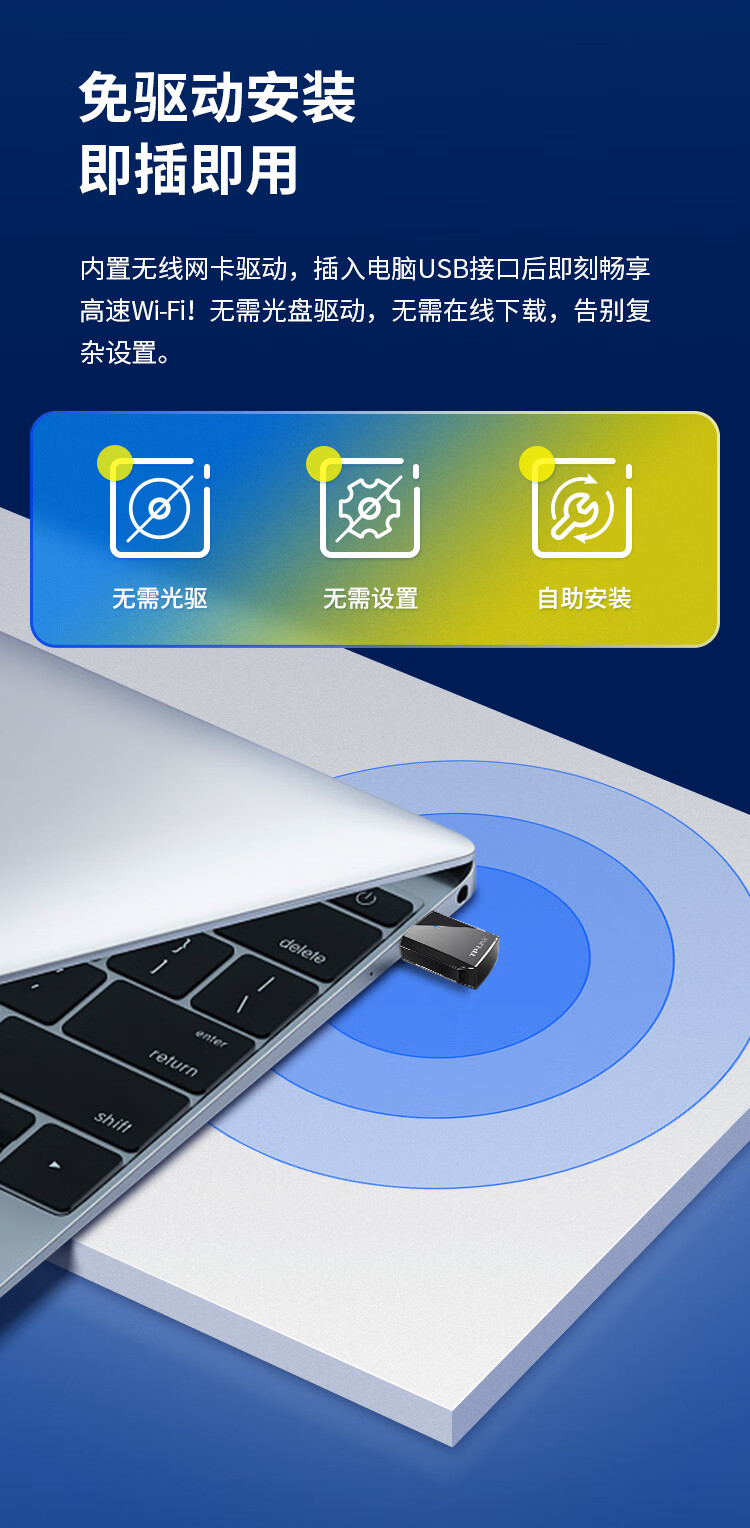 - TP-LINK USB无线网卡 TL-WDN5200免驱版 AC650双频5G迷你网卡 笔记本台式机电脑无线接收器随身WiFi发射器