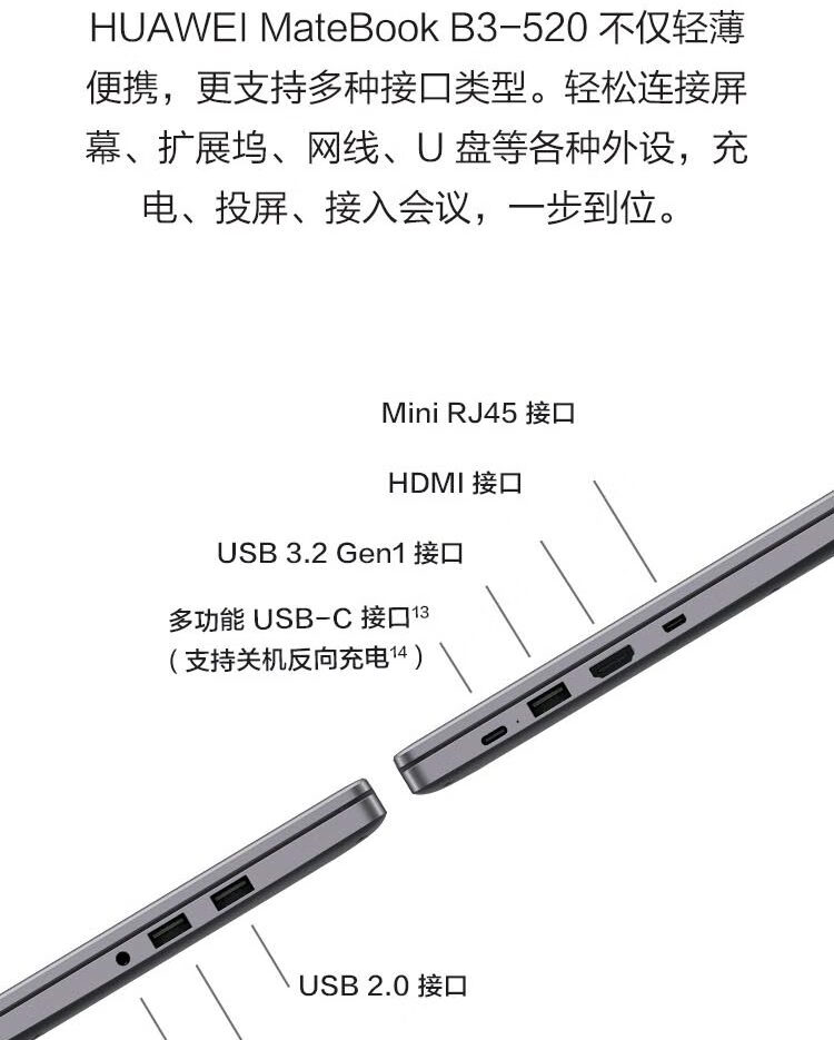 华为笔记本电脑 MateBook B3-520 15.6英寸轻薄本 (i5-1135G7 16G 512G) 深空灰 自营