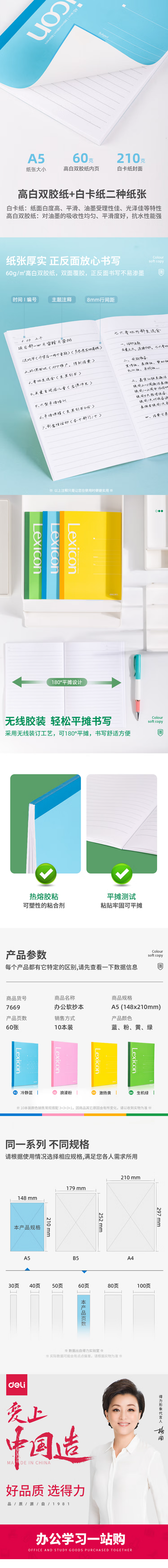 得力(deli)10本A5/60张无线胶装软抄本记事本 工作笔记本子/ 日记本 文具办公用品 7669 自营
