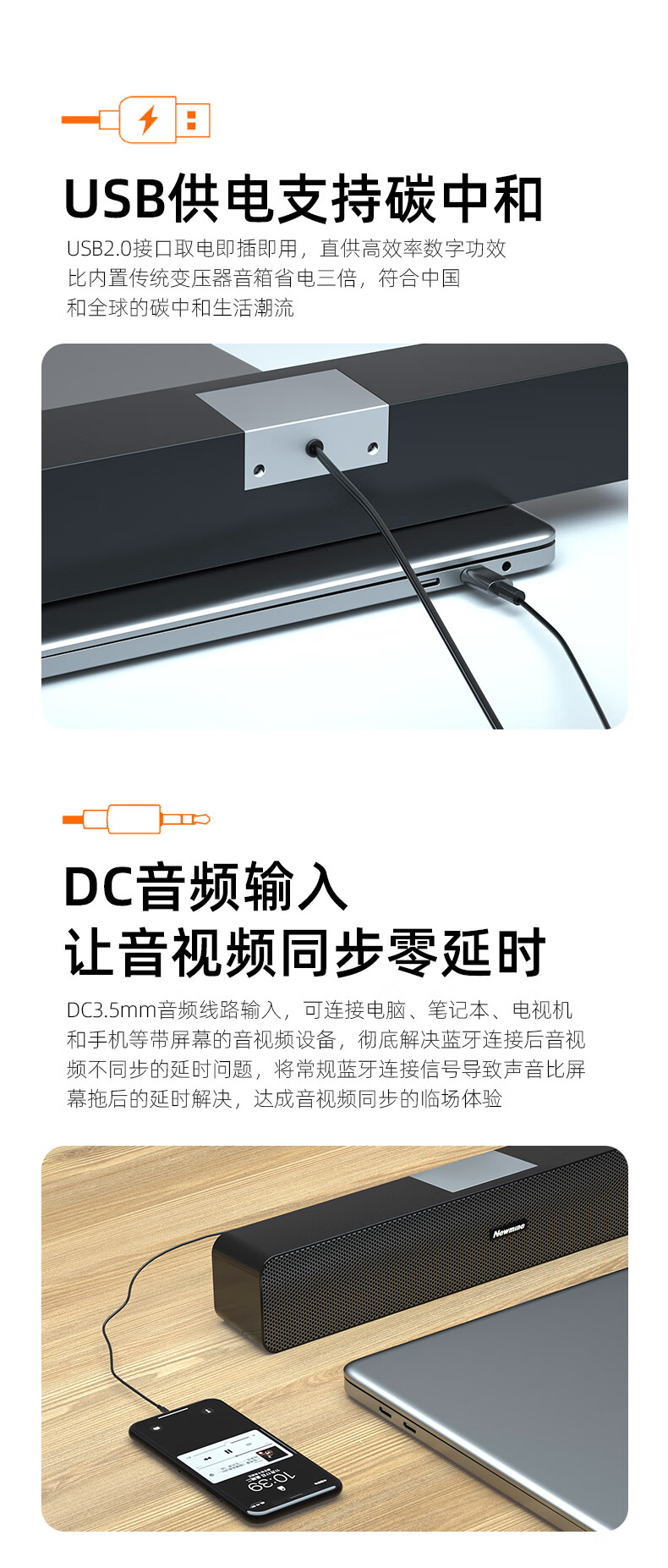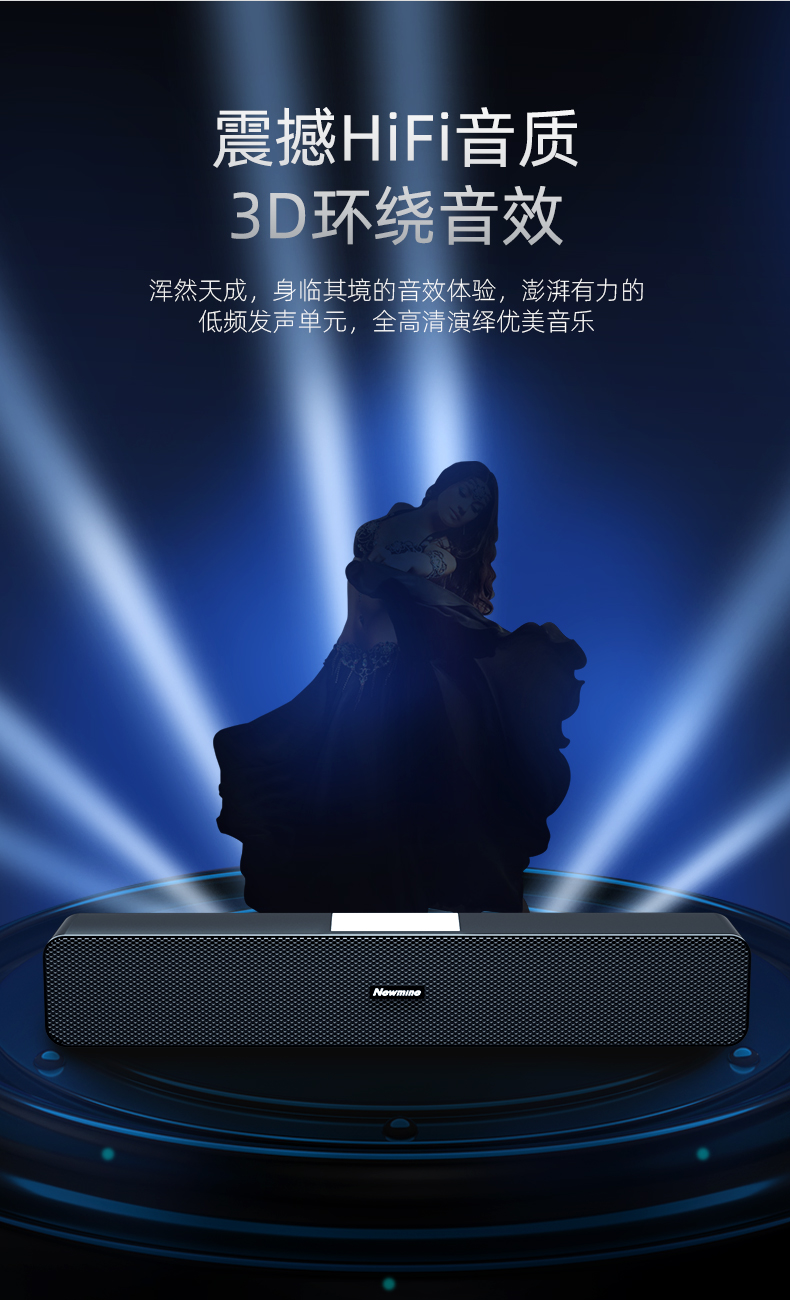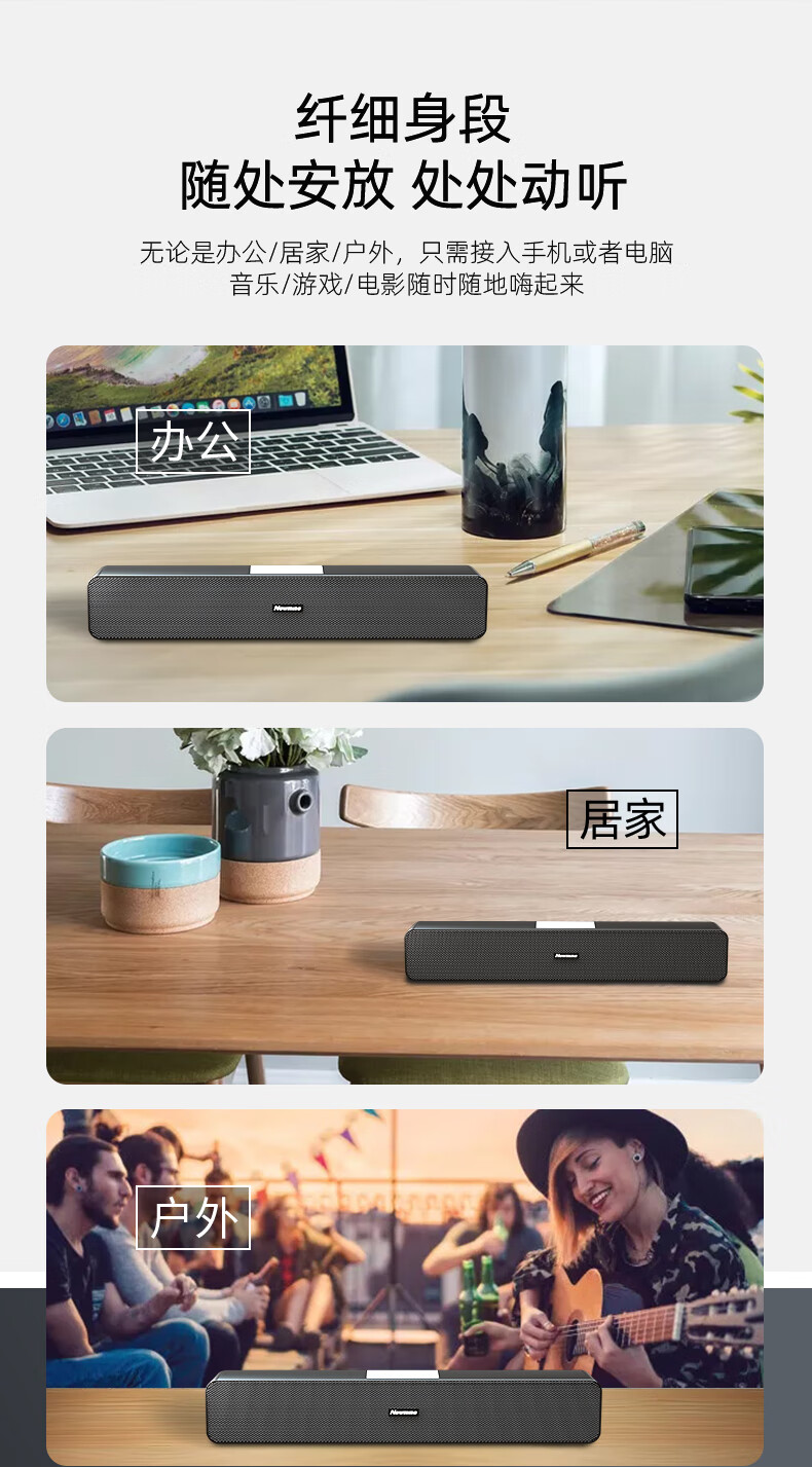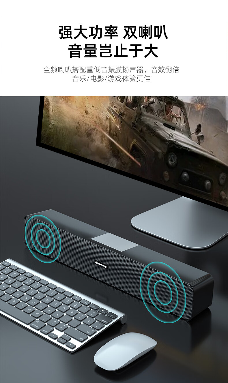 纽曼 Newmine MX07电脑音响台式机笔记本有线音箱家用桌面游戏多媒体小型长条低音炮高音质 自营