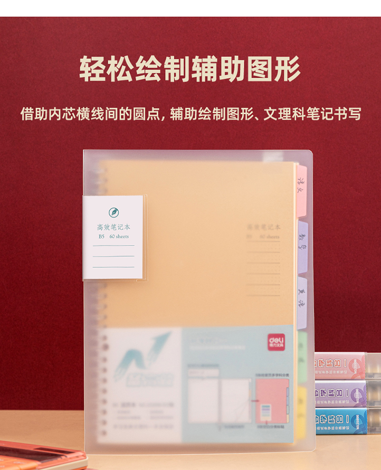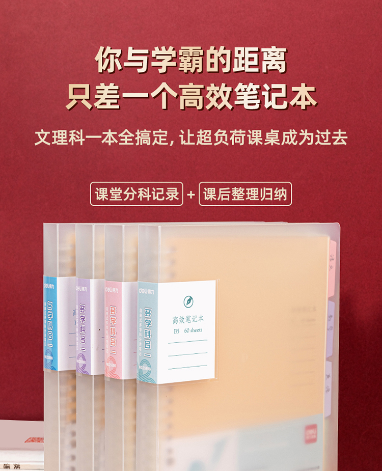 得力(deli)B5/60张多效合一备考用笔记本子 活页本作业本学生用品 25996 自营