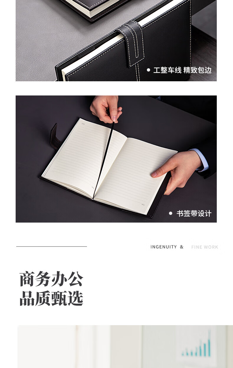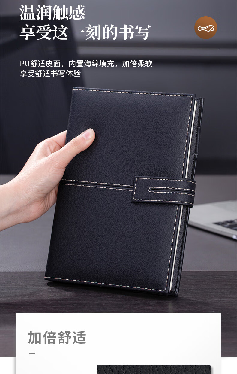 得力(deli)25K120张荔枝纹磁扣皮面本办公用品 商务记事本日记本工作笔记本子文具 黑色3343 自营