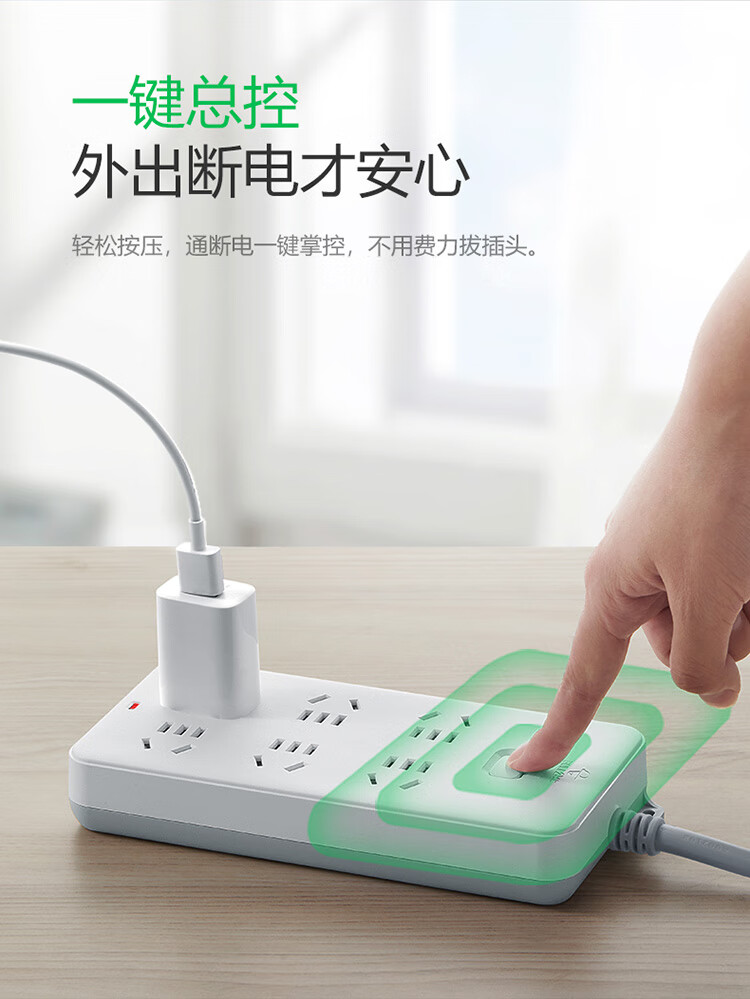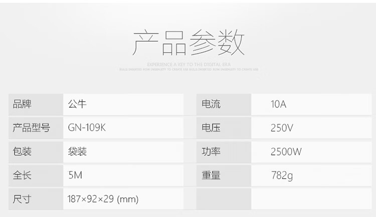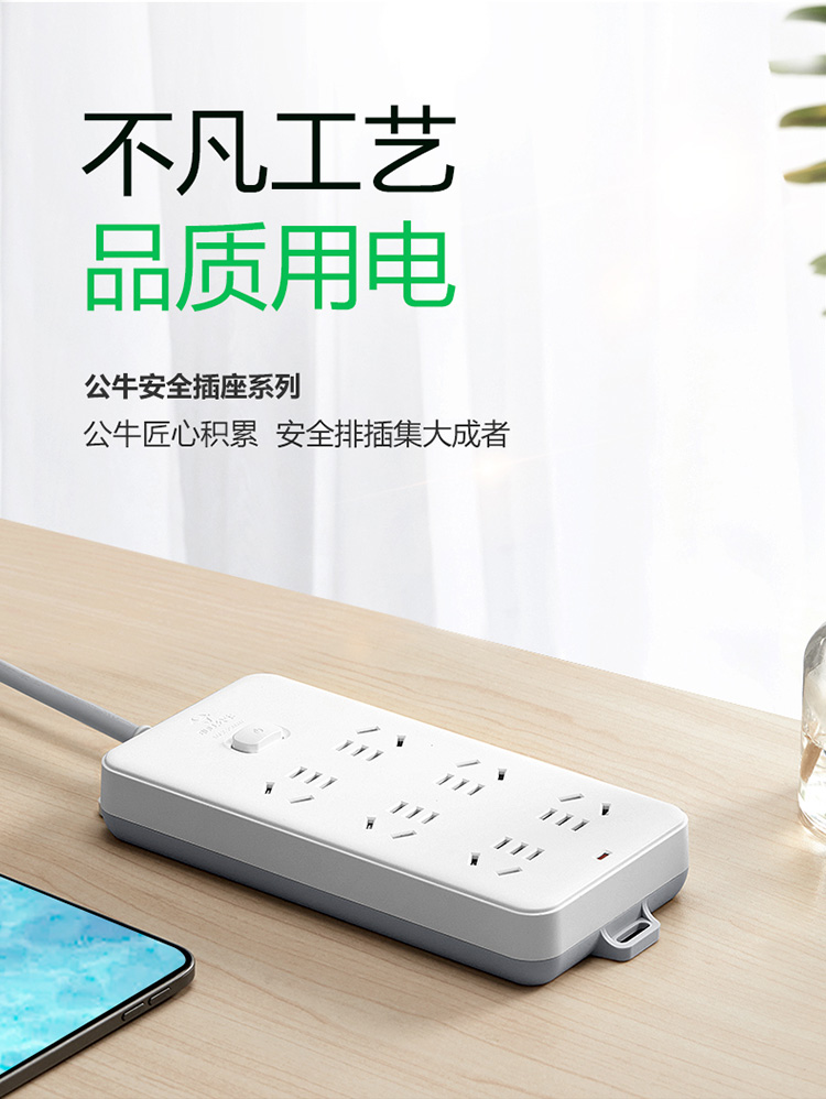 公牛(BULL)GN-109K 新国标插座/插线板/插排/排插/接线板/拖线板 6位总控全长5米 自营