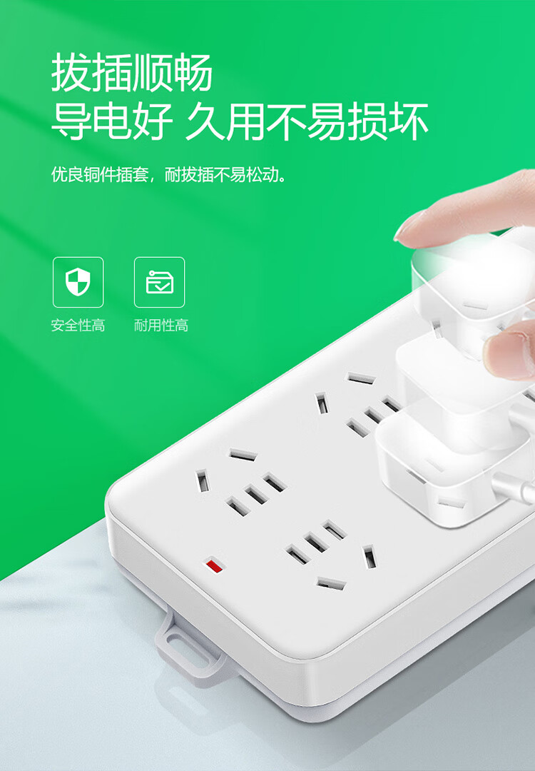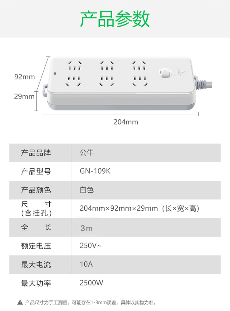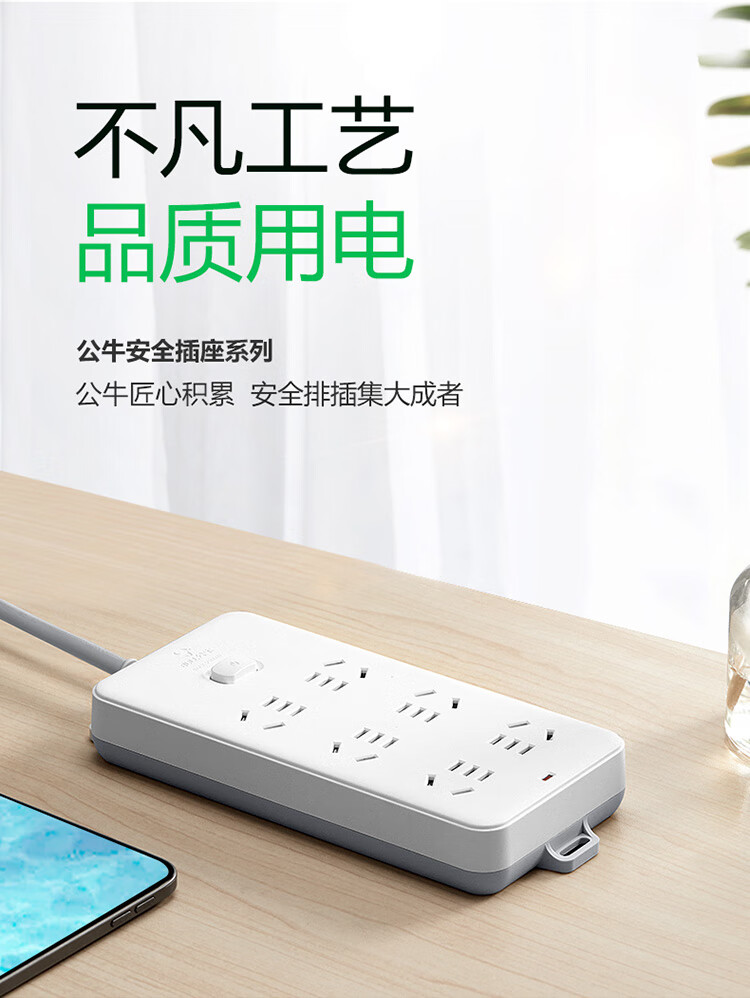 公牛(BULL)GN-109K 新国标插座/插线板/插排/排插/接线板/拖线板 6位总控全长3米 自营