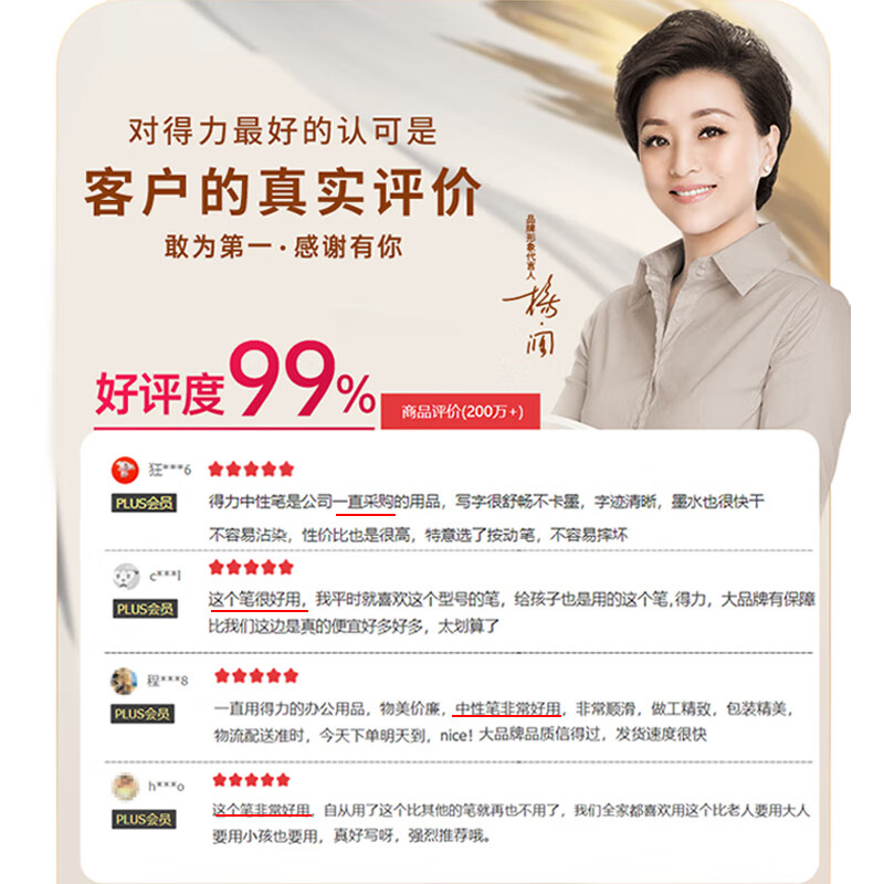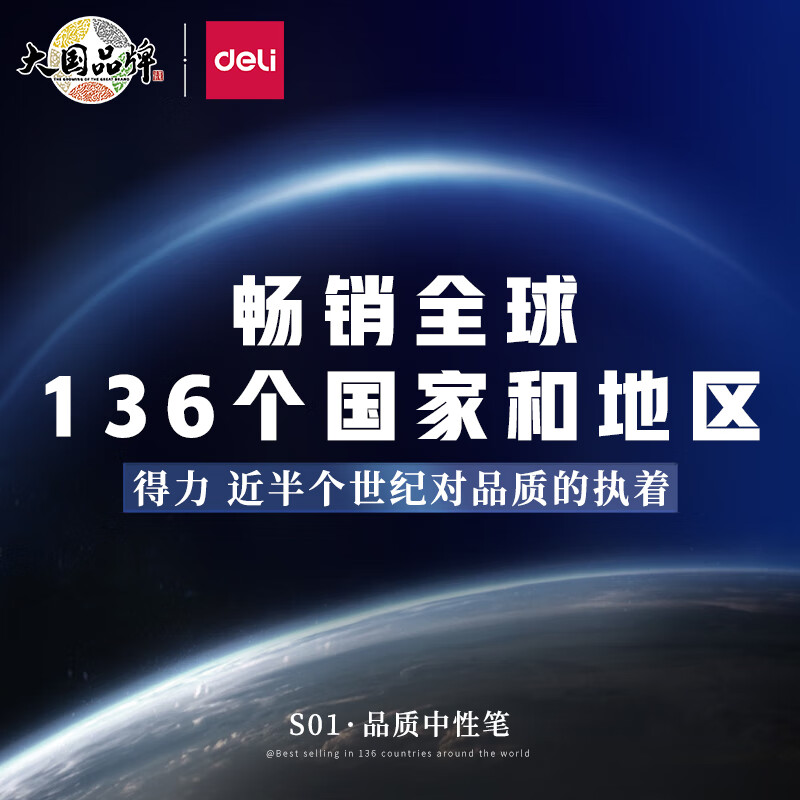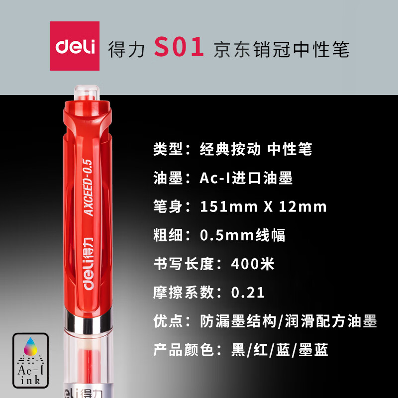 得力(deli)S01中性笔签字笔 0.5mm子弹头经典办公按动笔水笔 红色 12支/盒 自营