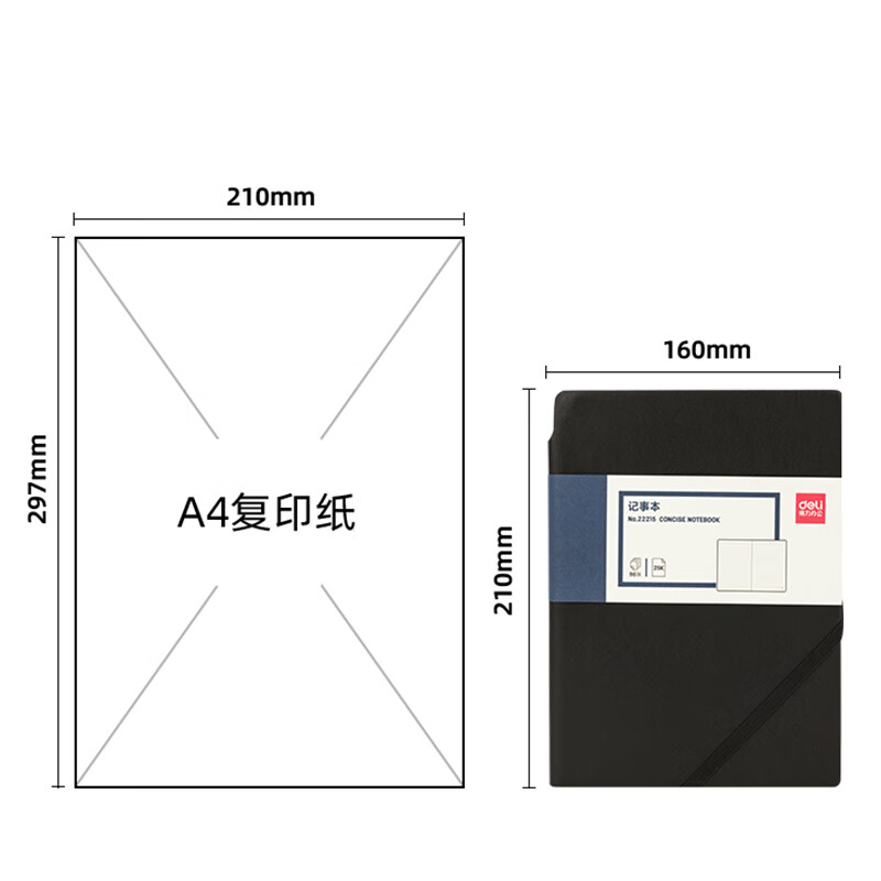 得力(deli)25K96张可插笔绑带皮面本 记事本工作笔记本子日记本文具办公用品 黑色22215 自营