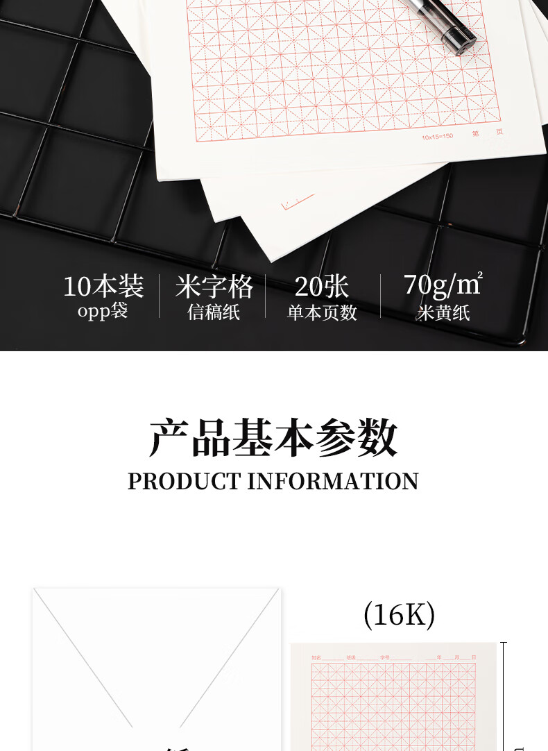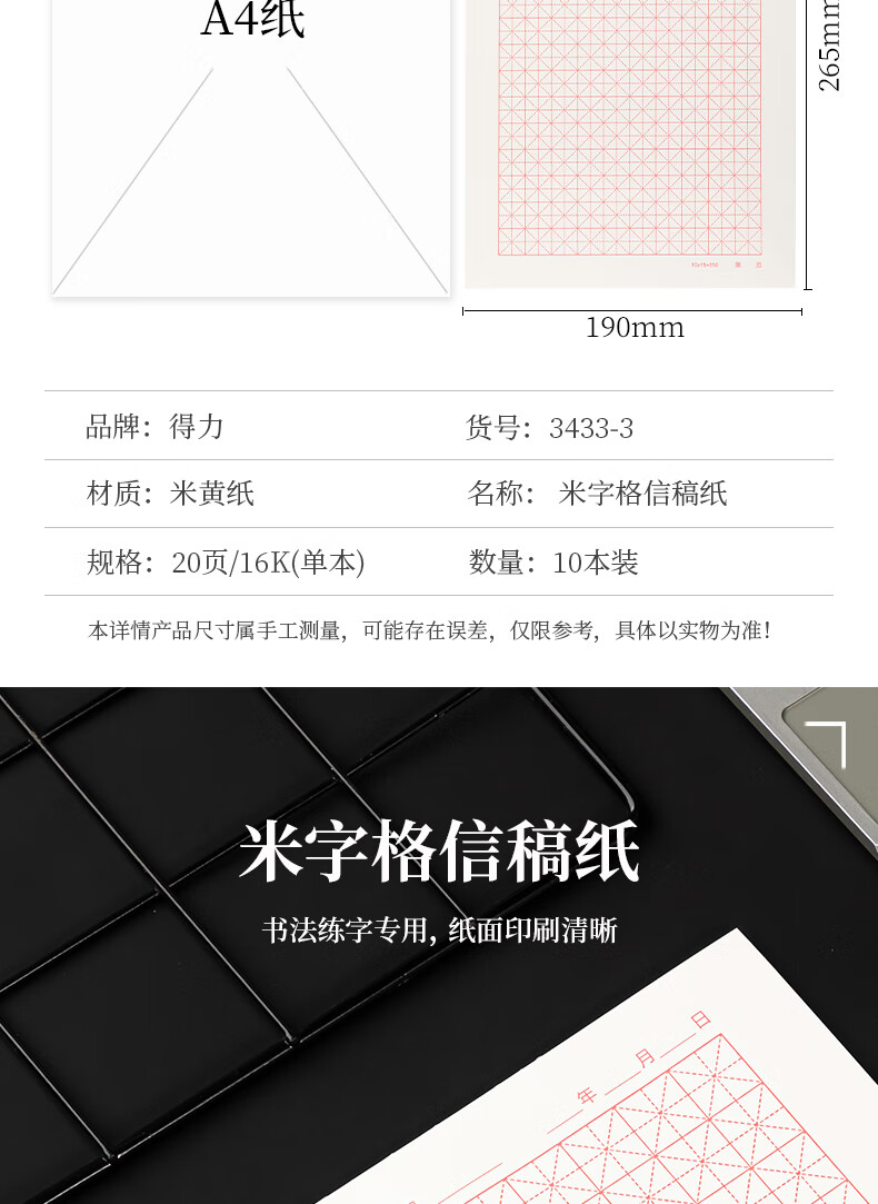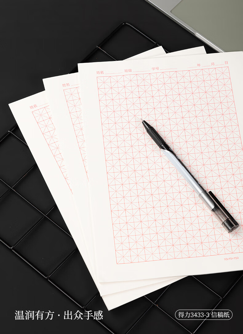 得力(deli)10本16K/20张米字格信纸信稿纸 笔记本子信签纸草稿纸作业本 3433-3 自营