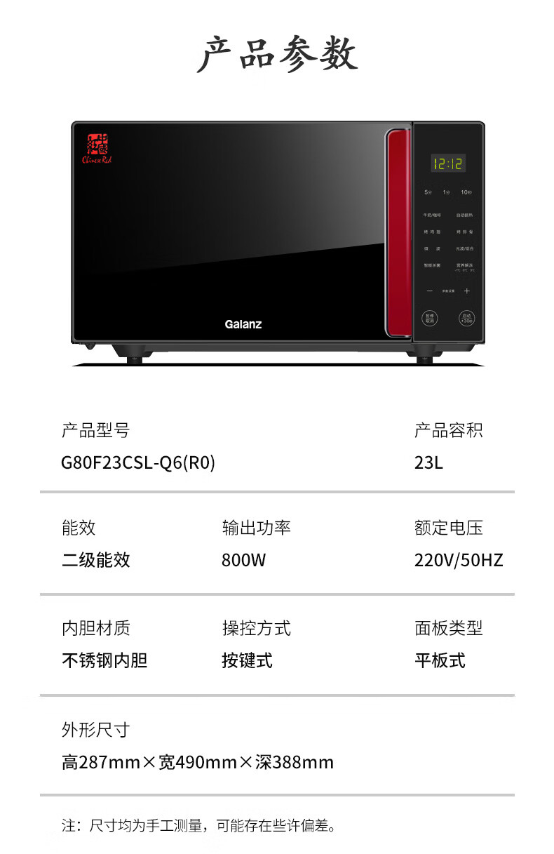 格兰仕(Galanz) 微波炉家用不锈钢小型大容量光波炉烤箱一体线下G80F23CSL-Q6(R0) 23升 自营