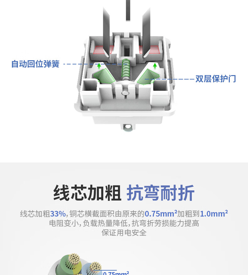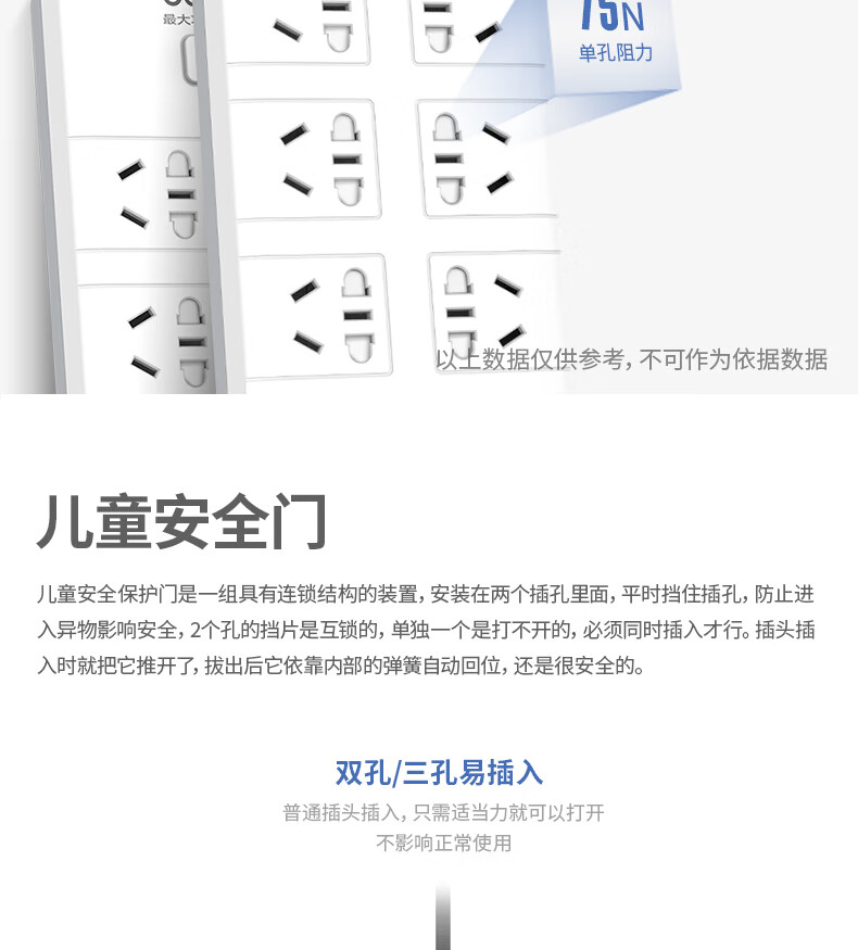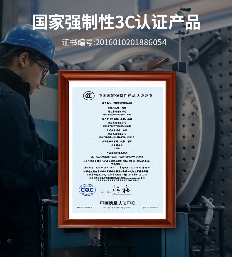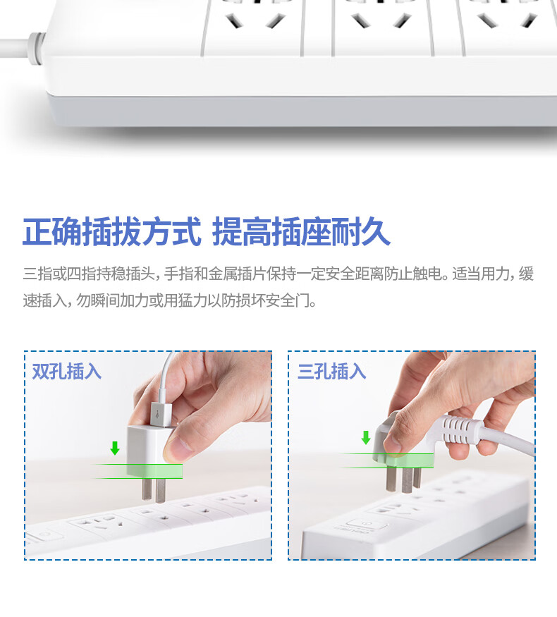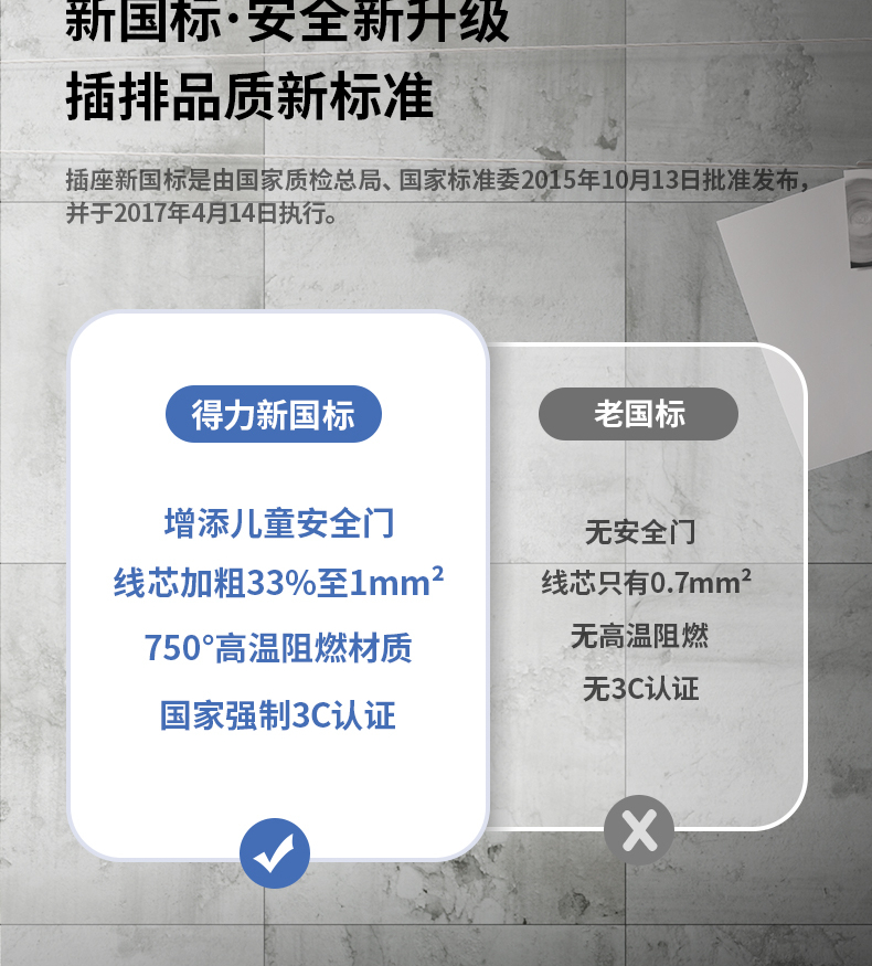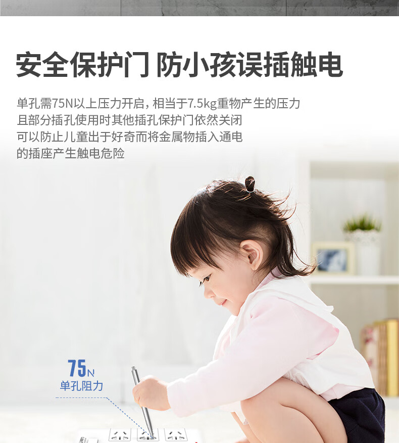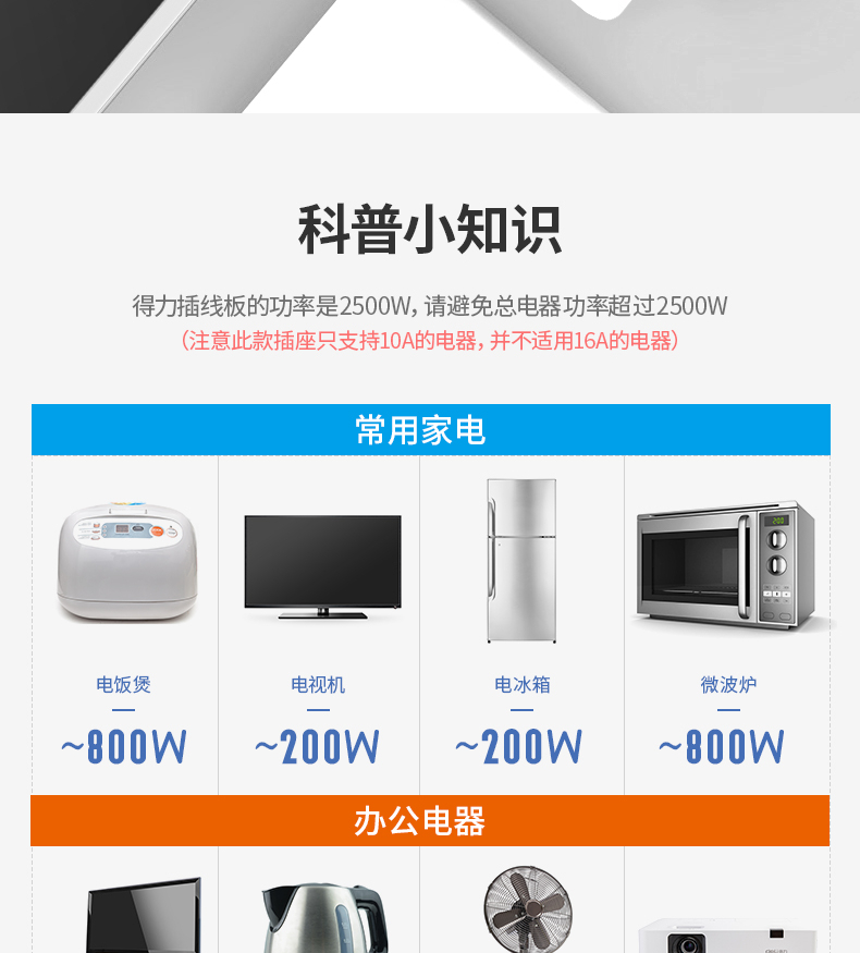 得力(deli) 总控开关 安全门保护插排 新国标插排 插座 接线板 插线板 (6组合插孔 全长3米)18168-03 自营