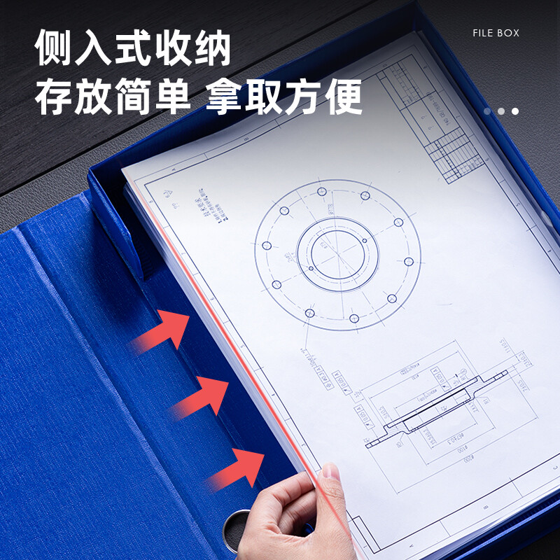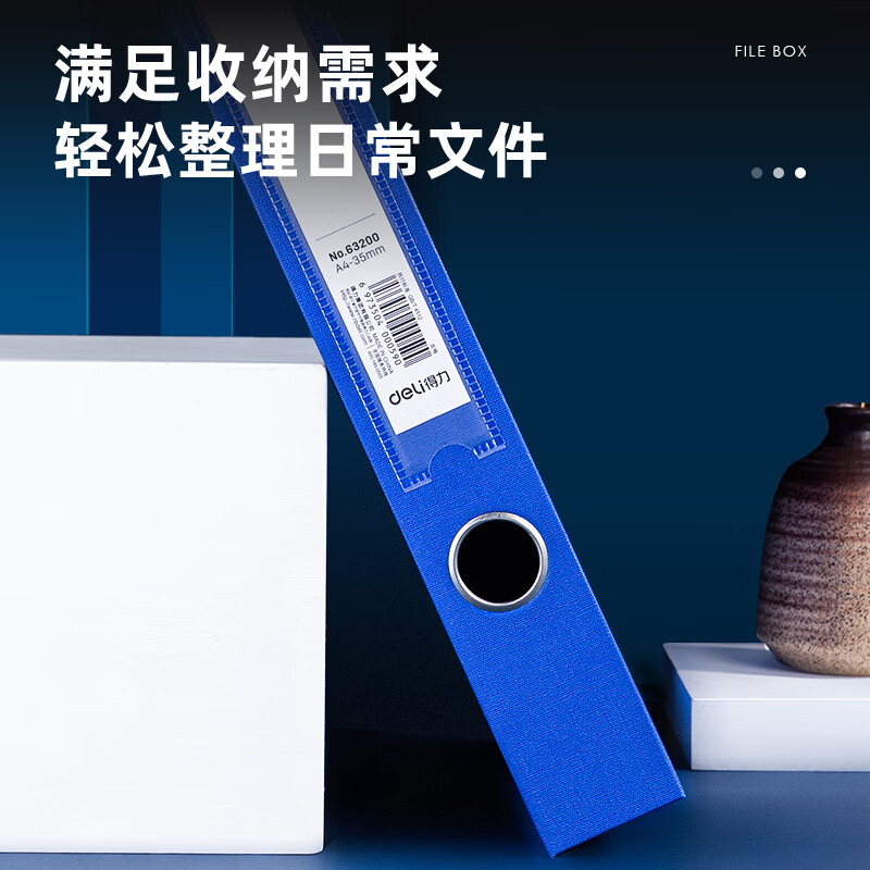 得力(deli)35mmA4/PVC磁扣式文件盒 加厚档案盒财务票据试卷收纳 单只装 蓝色63200 自营