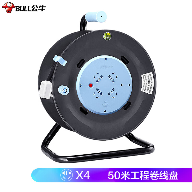 公牛(BULL)GN-804 4位50米工程接线盘/新升级过热保护电缆卷盘插座/插排 工程专用 自营