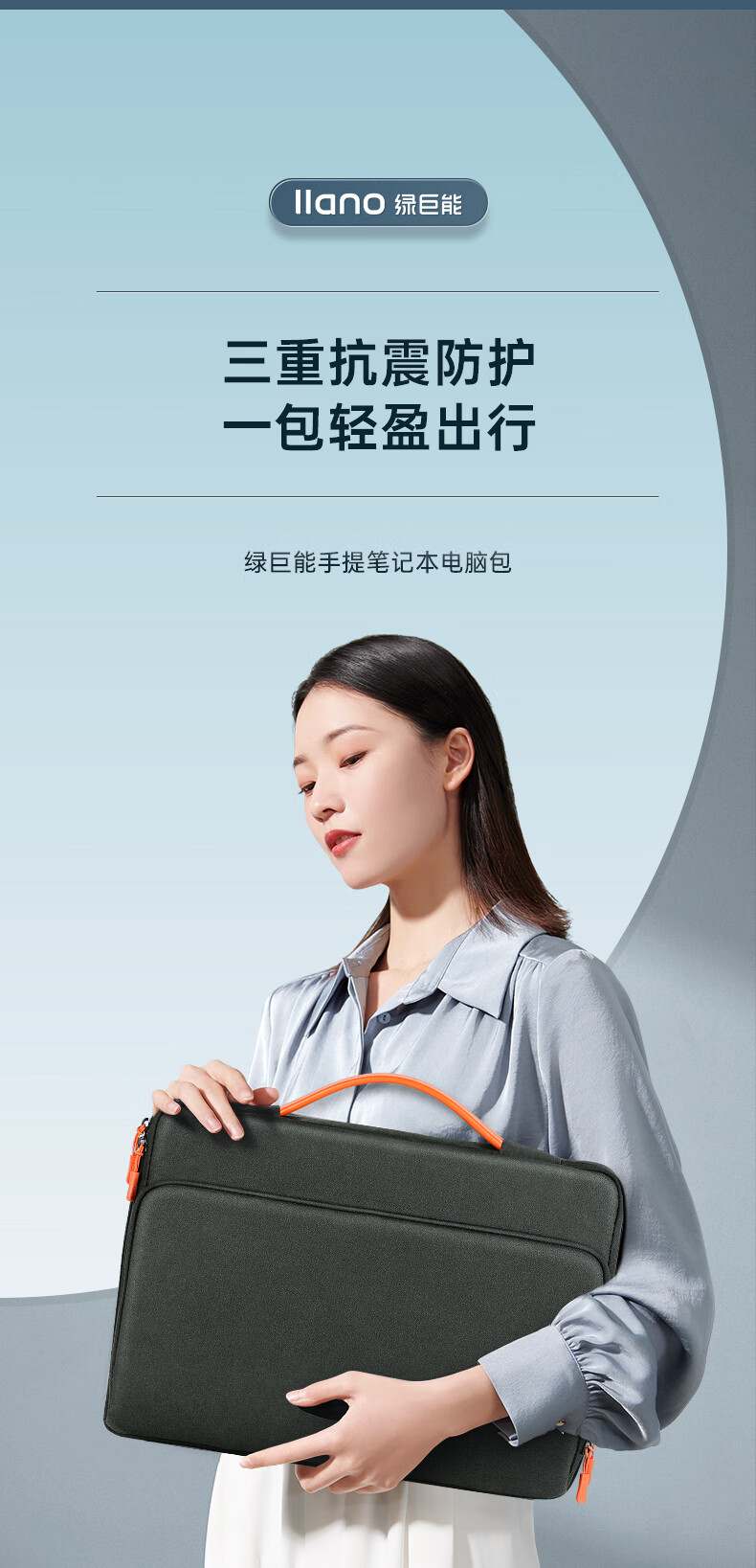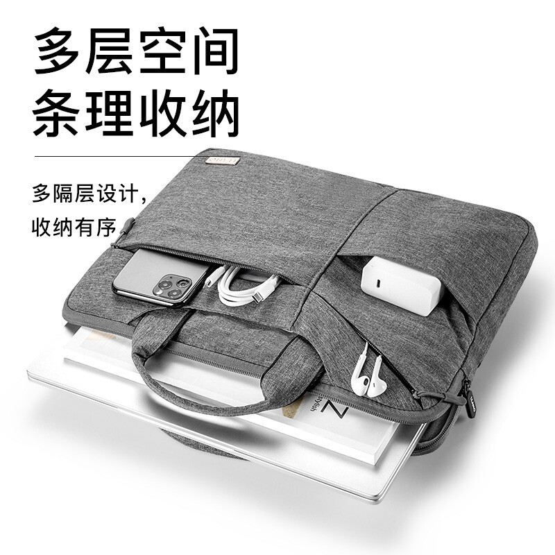 绿巨能(llano)电脑包 笔记本电脑包 手提电脑包 大容量收纳 适用华为、苹果等笔记本 14英寸 神秘黑 自营