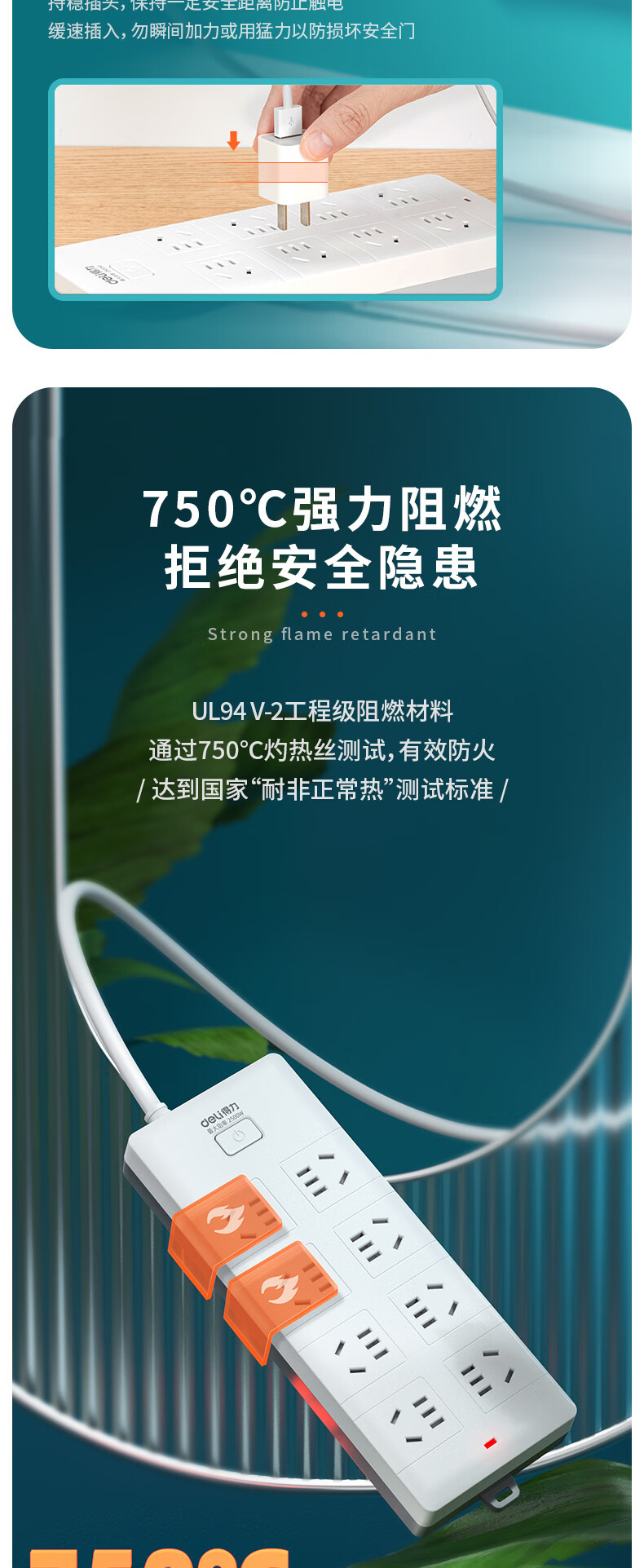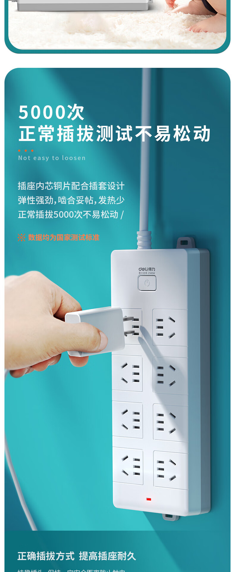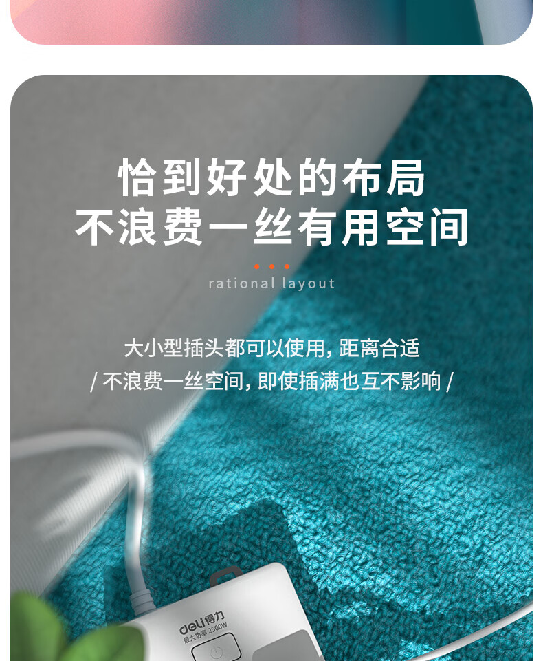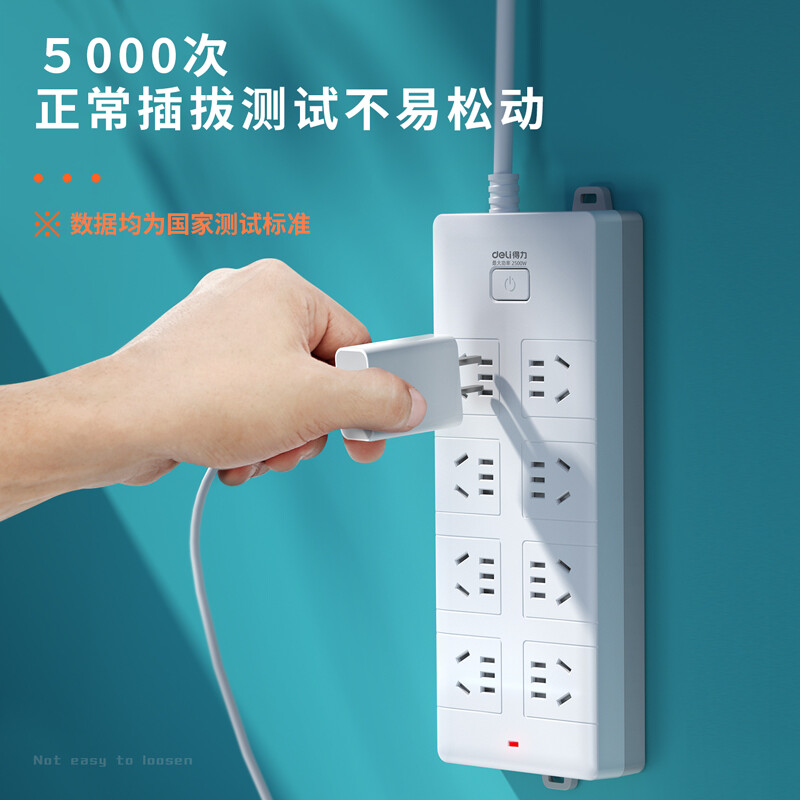 - 得力(deli)新国标安全插座/插排/插线板/接线板/排插/拖线板 总控开关 儿童保护门 8组合孔2米 18262-02