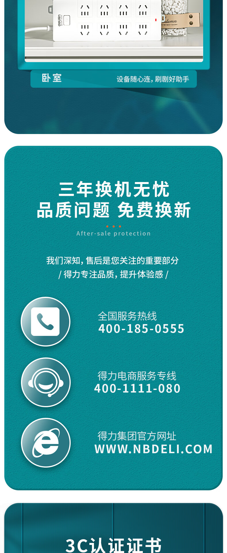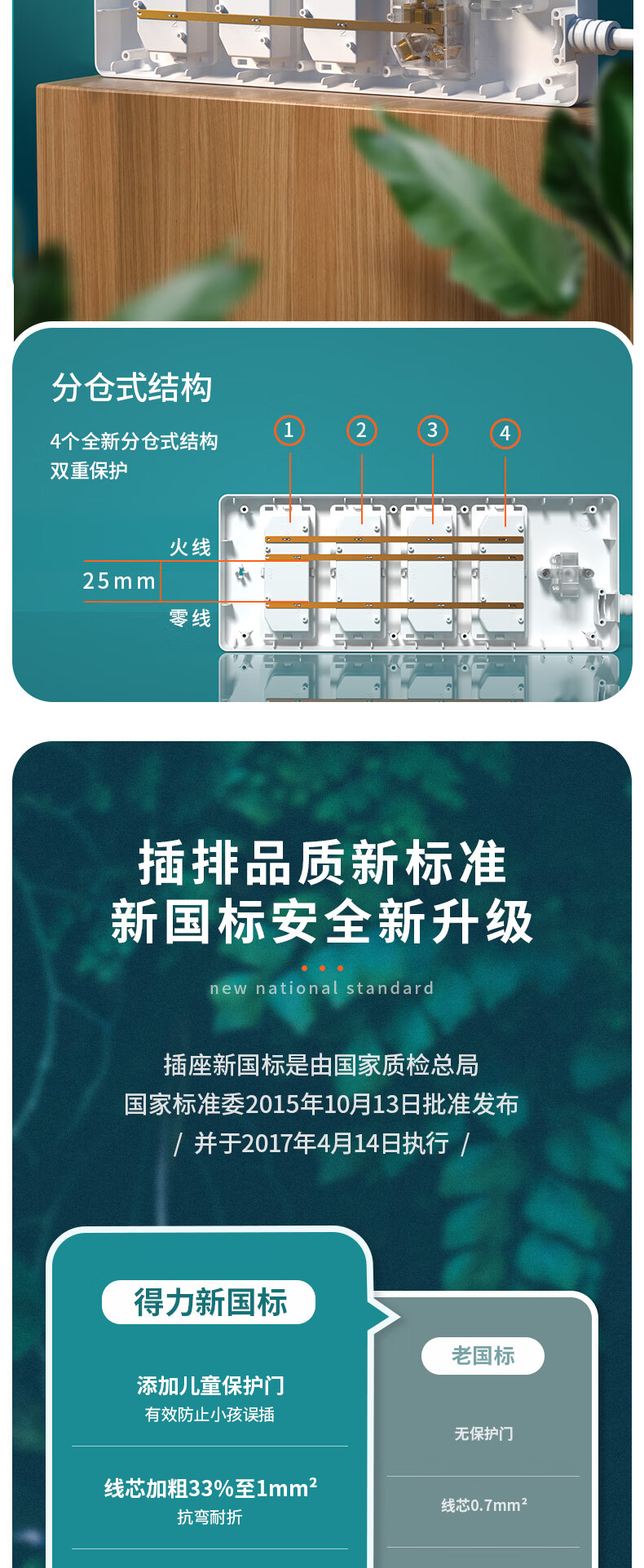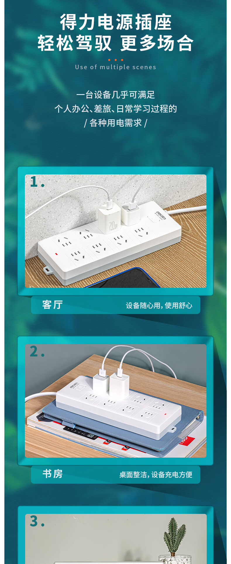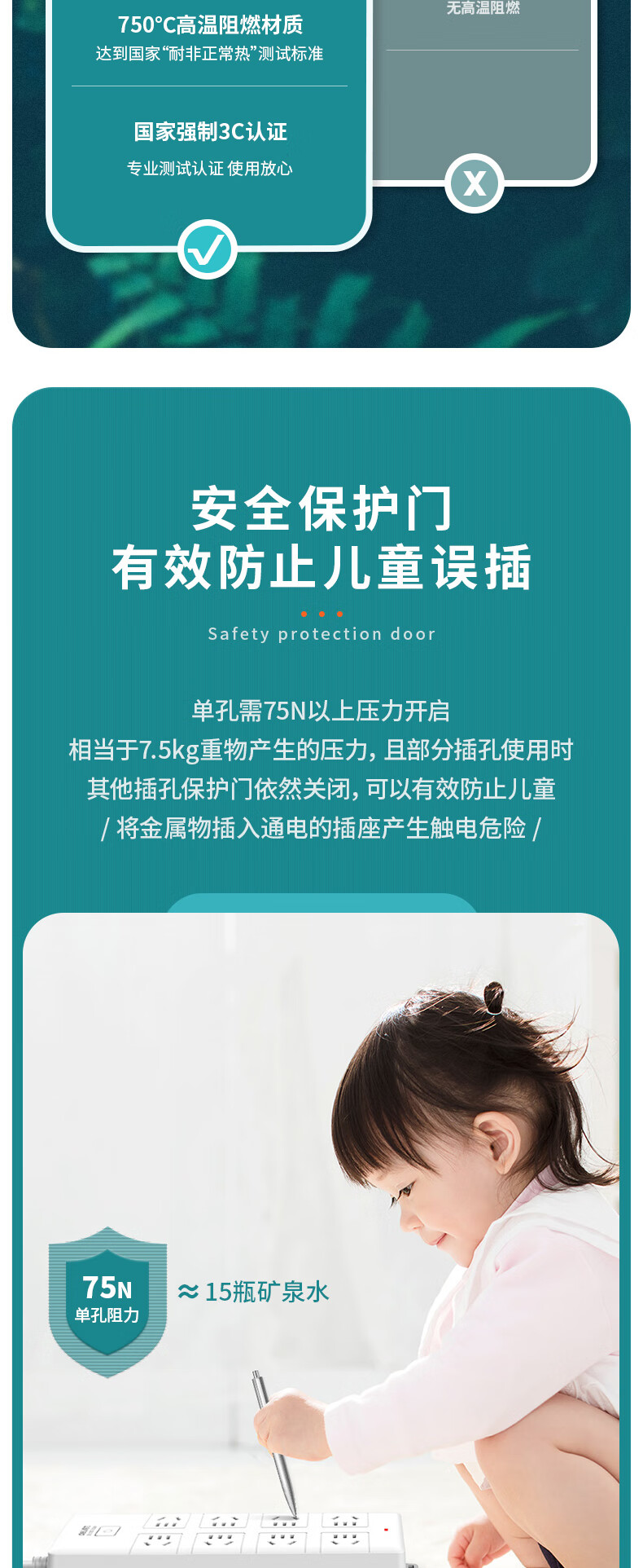 - 得力(deli)新国标安全插座/插排/插线板/接线板/排插/拖线板 总控开关 儿童保护门 8组合孔2米 18262-02