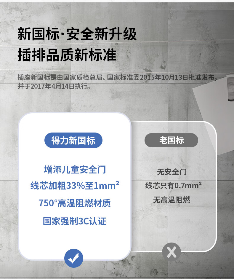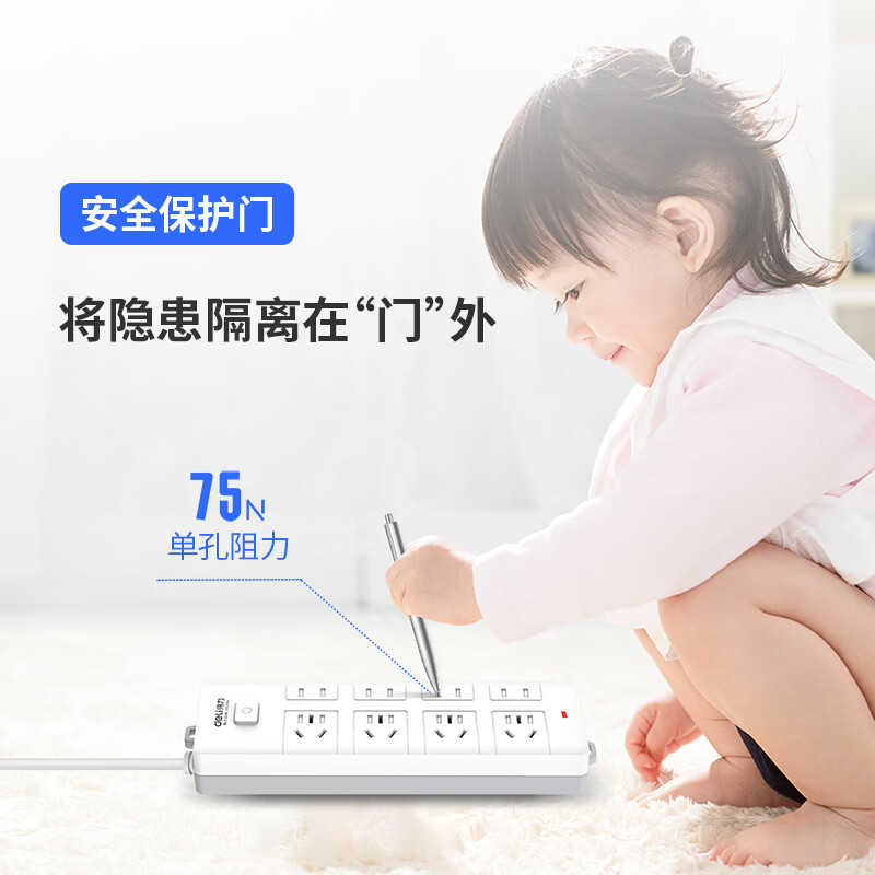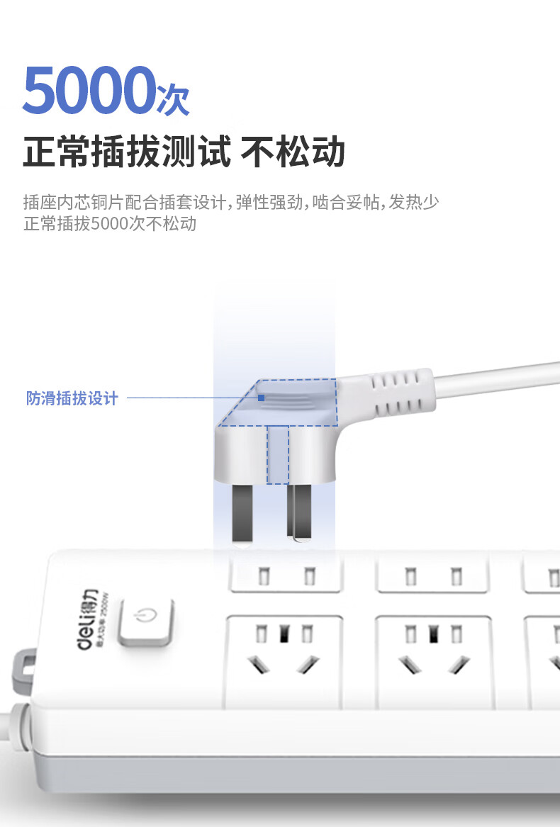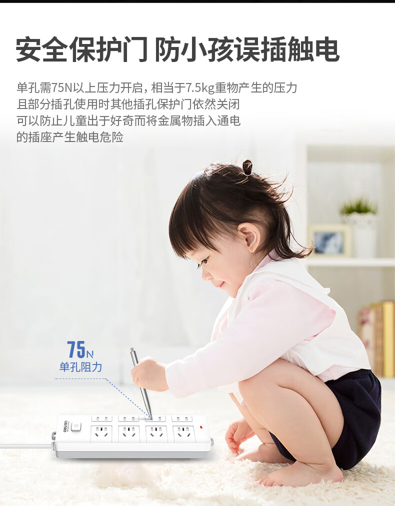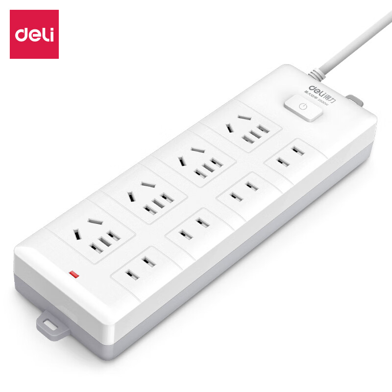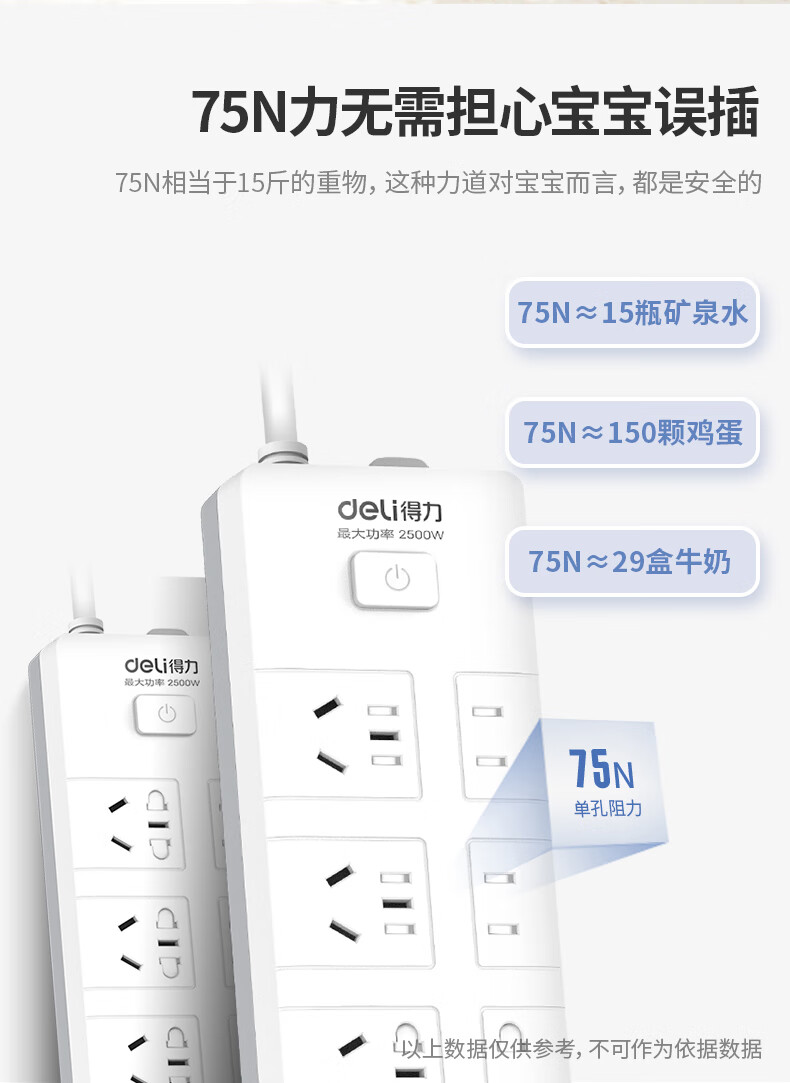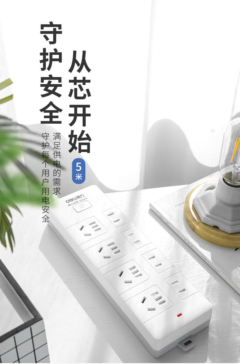 得力(deli) 新国标安全插座/插排/插线板/接线板/排插/拖线板 总控开关 儿童保护门 8位5米 18259 自营
