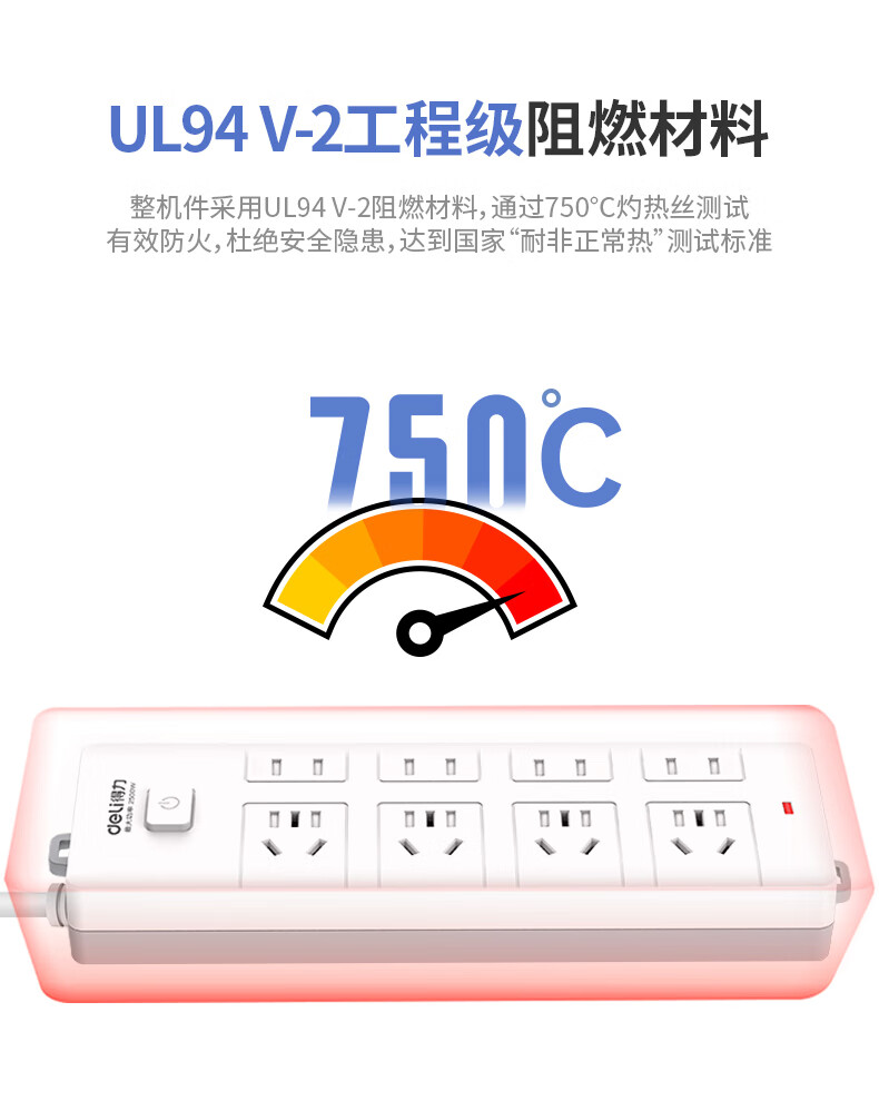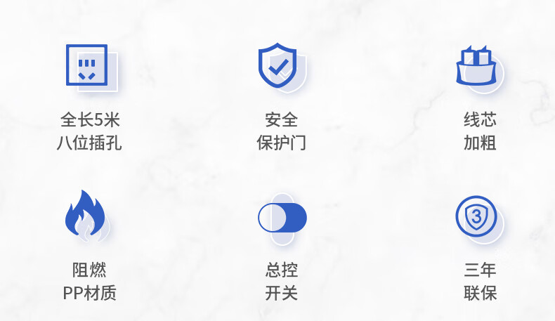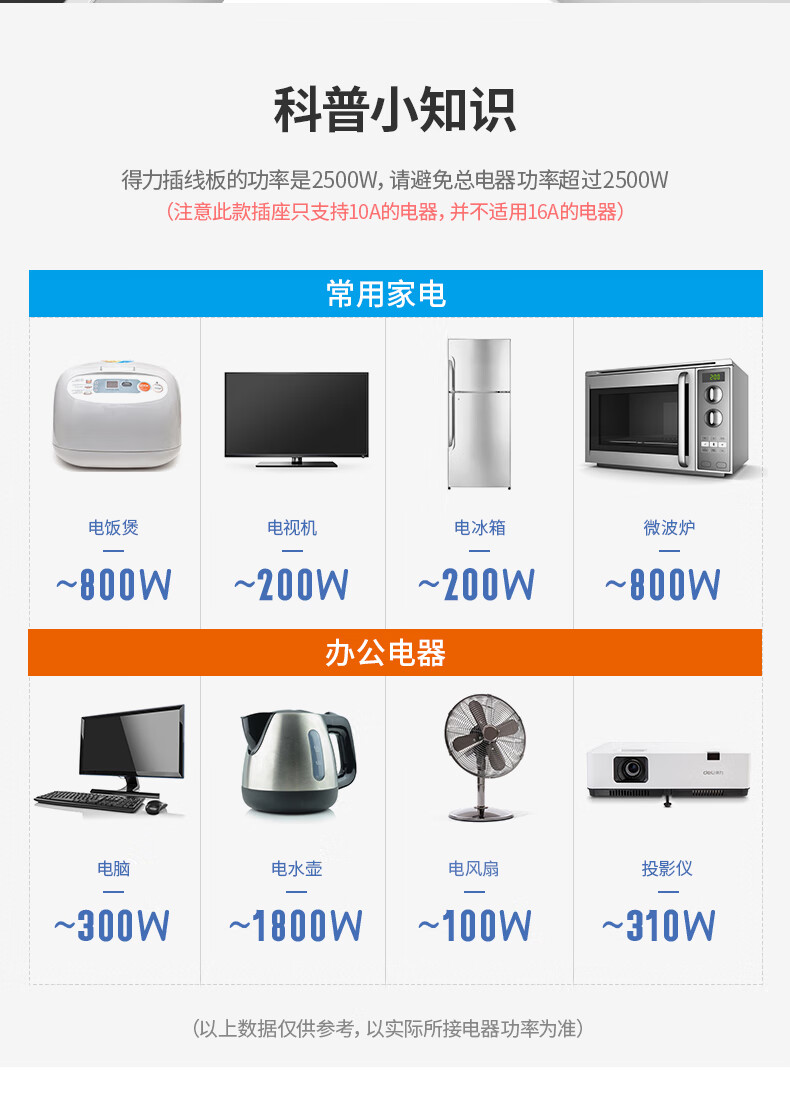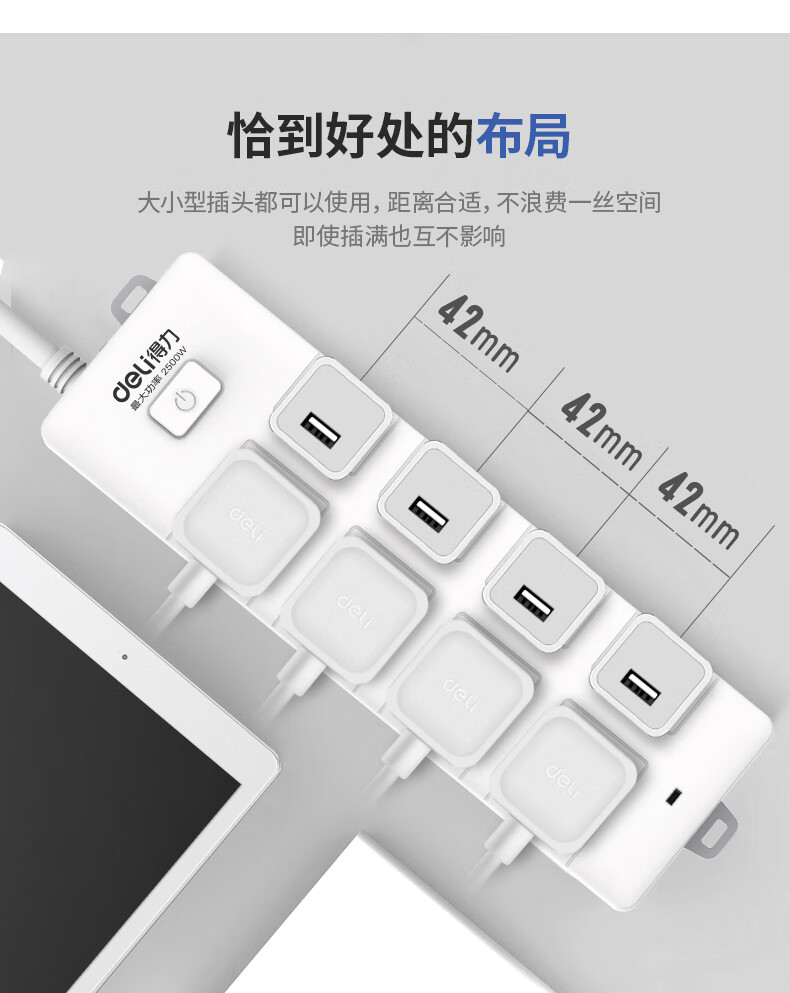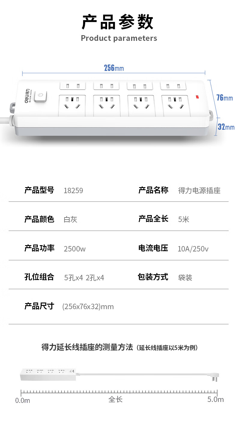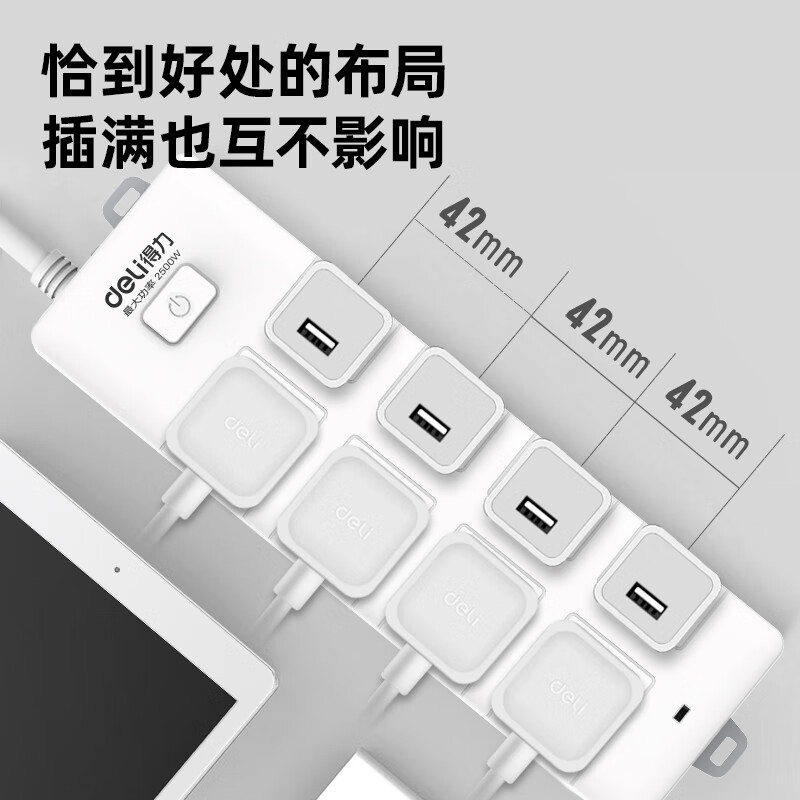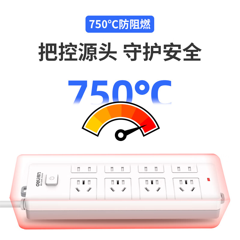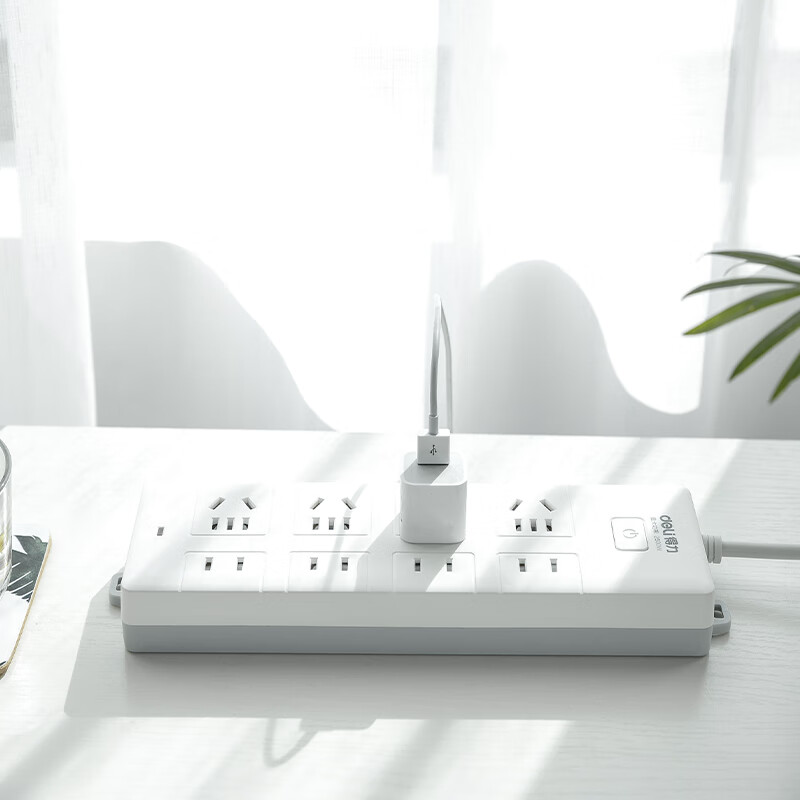 得力(deli) 新国标安全插座/插排/插线板/接线板/排插/拖线板 总控开关 儿童保护门 8位5米 18259 自营