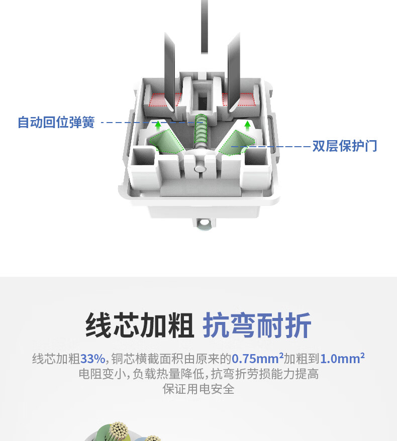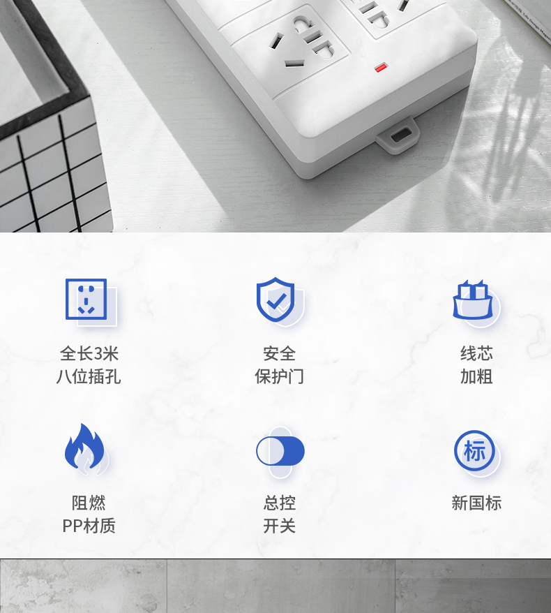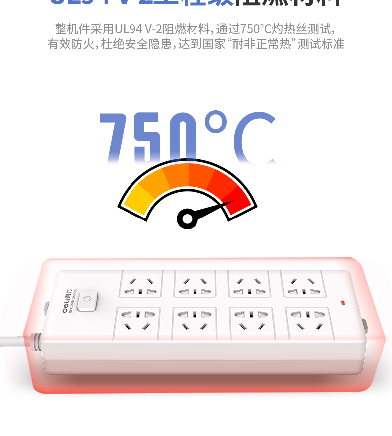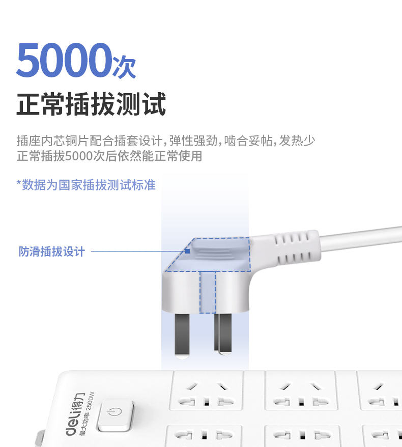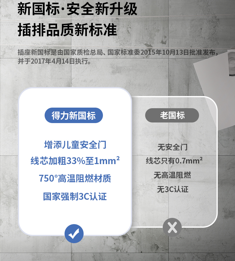得力(deli)新国标 插排 插座 接线板 插线板 总控开关 安全门保护插排 8组合插孔全长3米 18170-03 自营