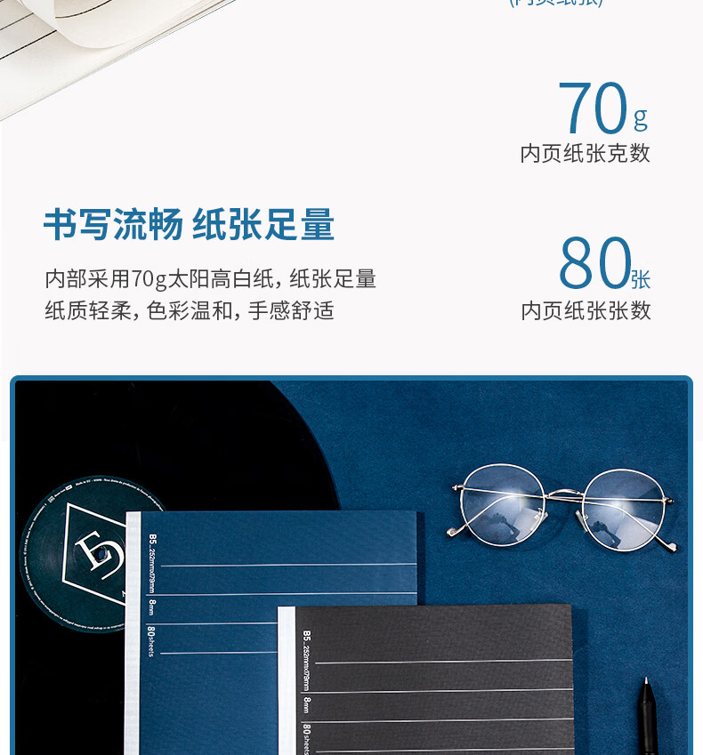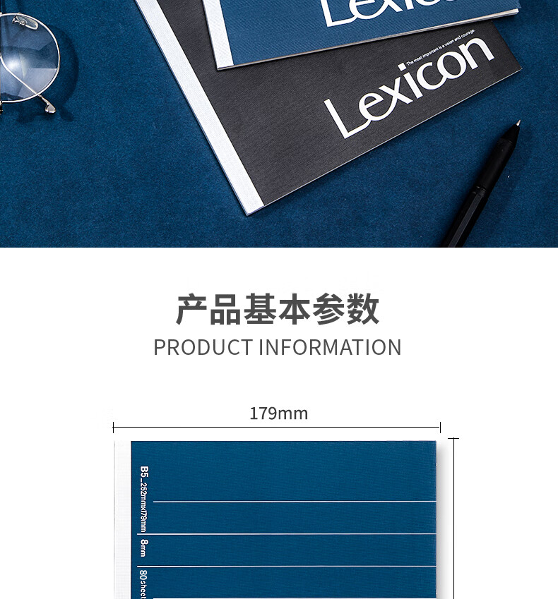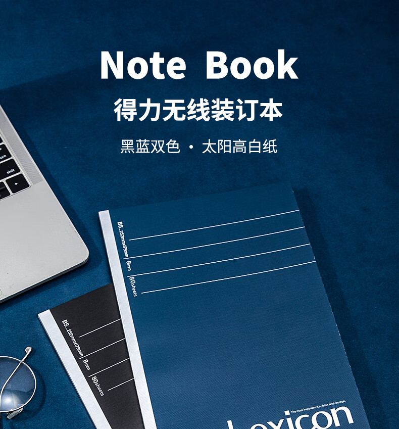 得力(deli)8本B5/80张Lexicon系列高档办公软抄本记事本 无线装订工作笔记本子文具办公用品 2159 自营