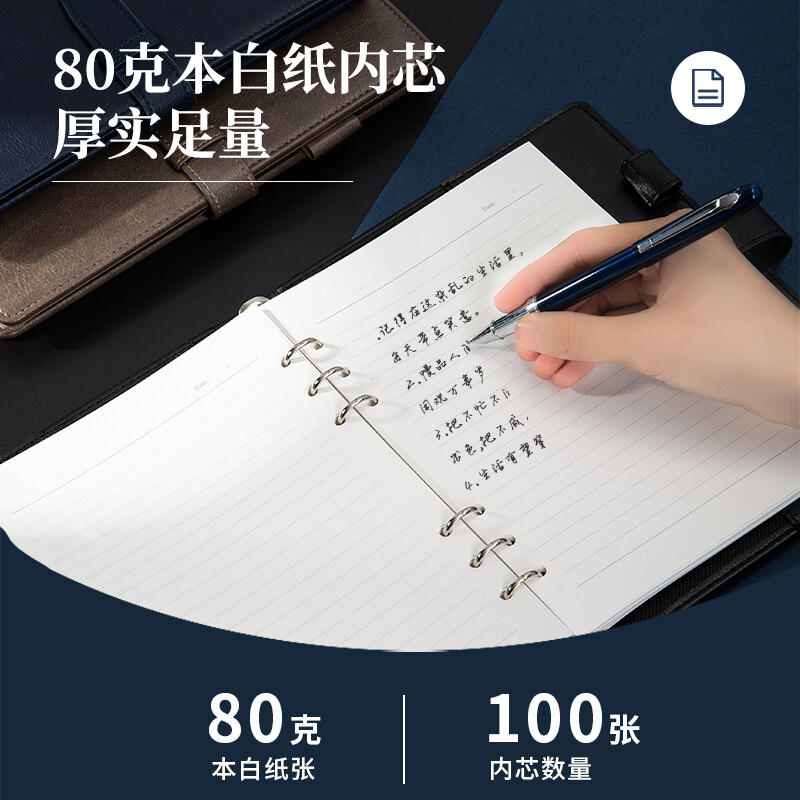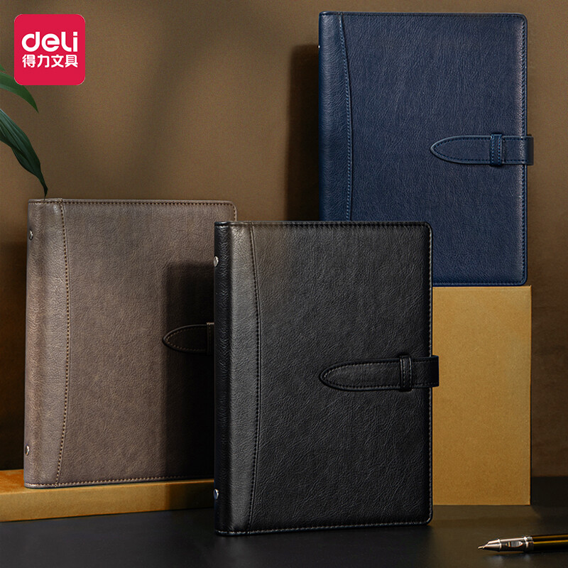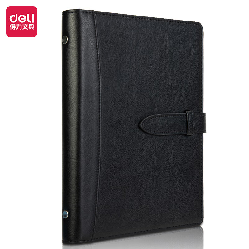 得力(deli)25K/100张活页夹皮面本笔记本子 办公商务本会议记事本活页本 黑色22800 自营
