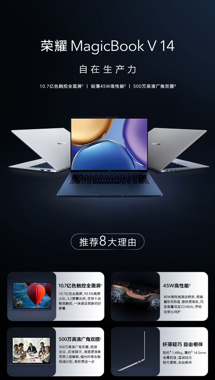 - 荣耀笔记本电脑MagicBook V 14 轻薄本触屏手提全能本超薄商务办公本 灰 i5-11320H 集显 16G+512G 90Hz高刷触控屏