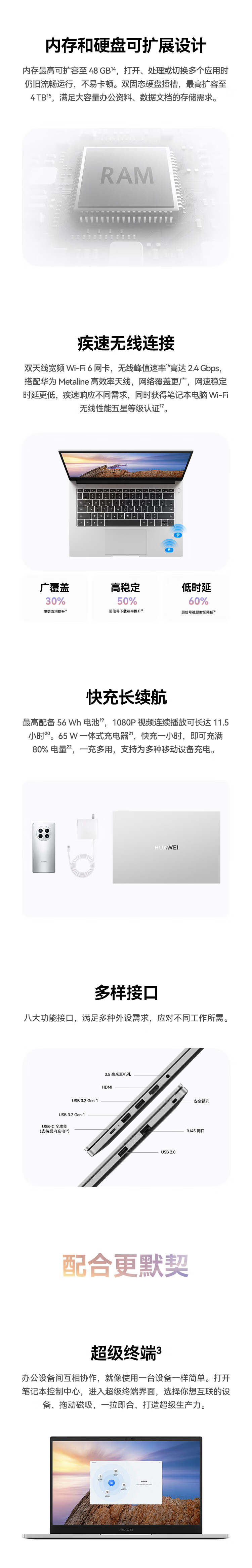 华为笔记本 擎云S540 14英寸高性能轻薄商务笔记本(i5-1240P 16G 512G)皓月银(定制升级) 自营