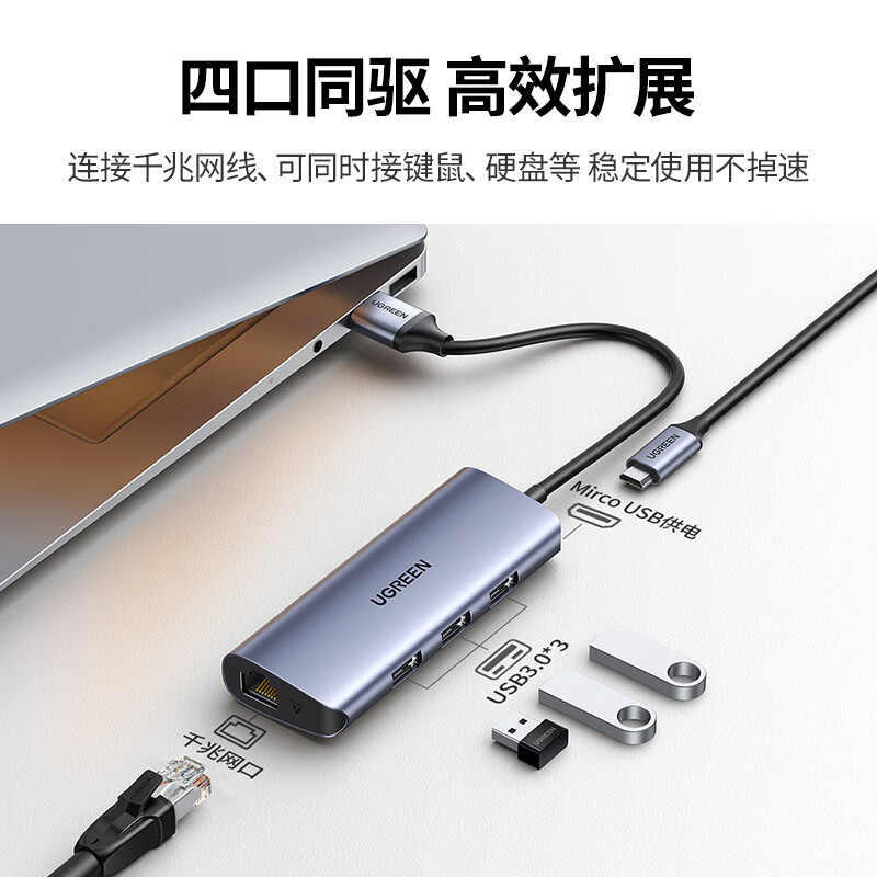绿联USB3.0转千兆网口扩展坞分线器 外置网线转接头RJ45有线网卡转换器拓展坞 适用台式机笔记本电脑集线器 自营