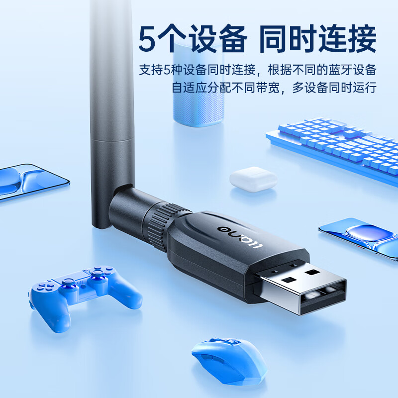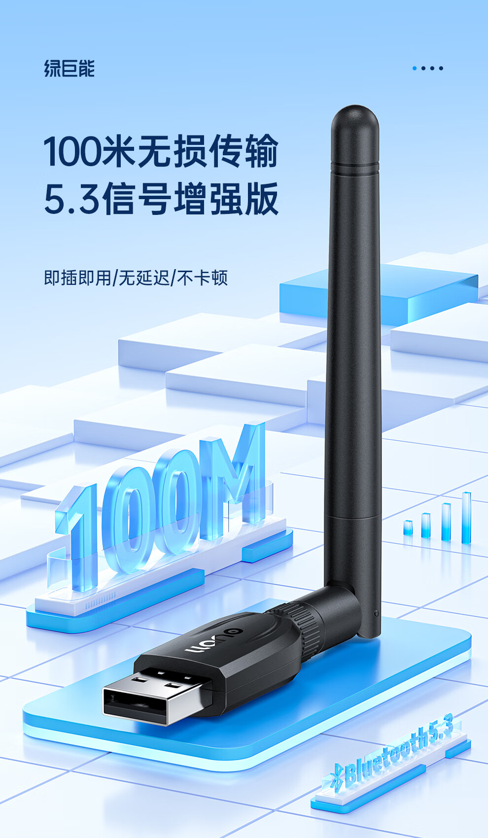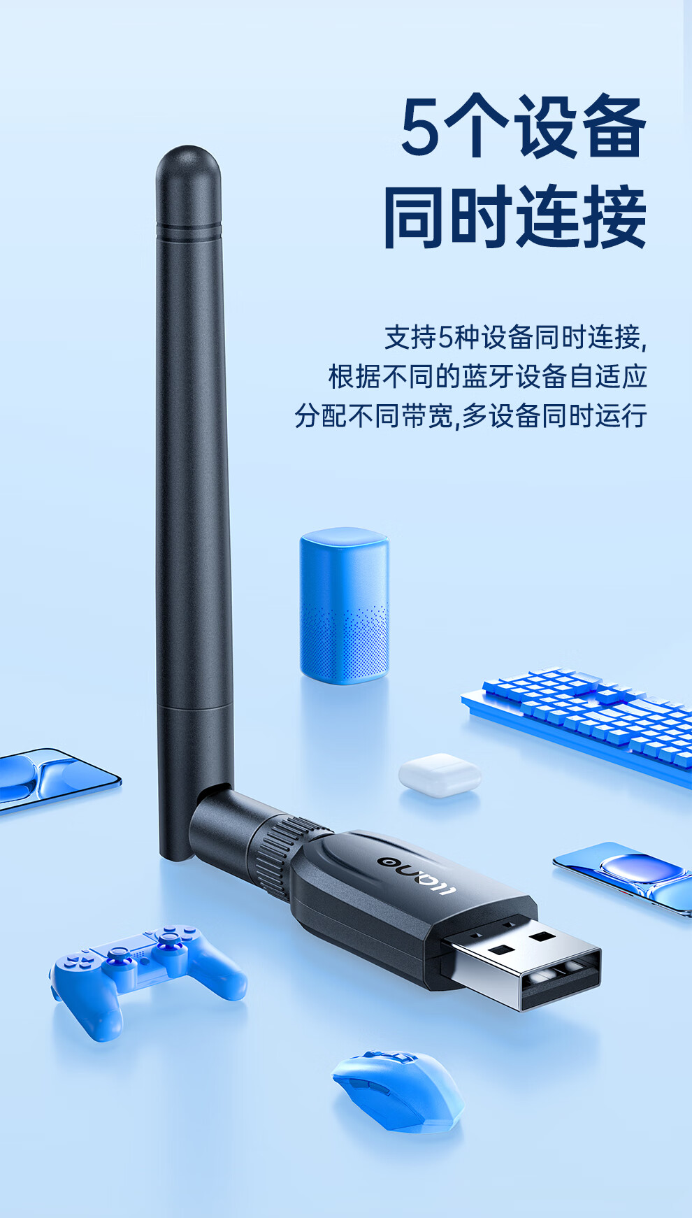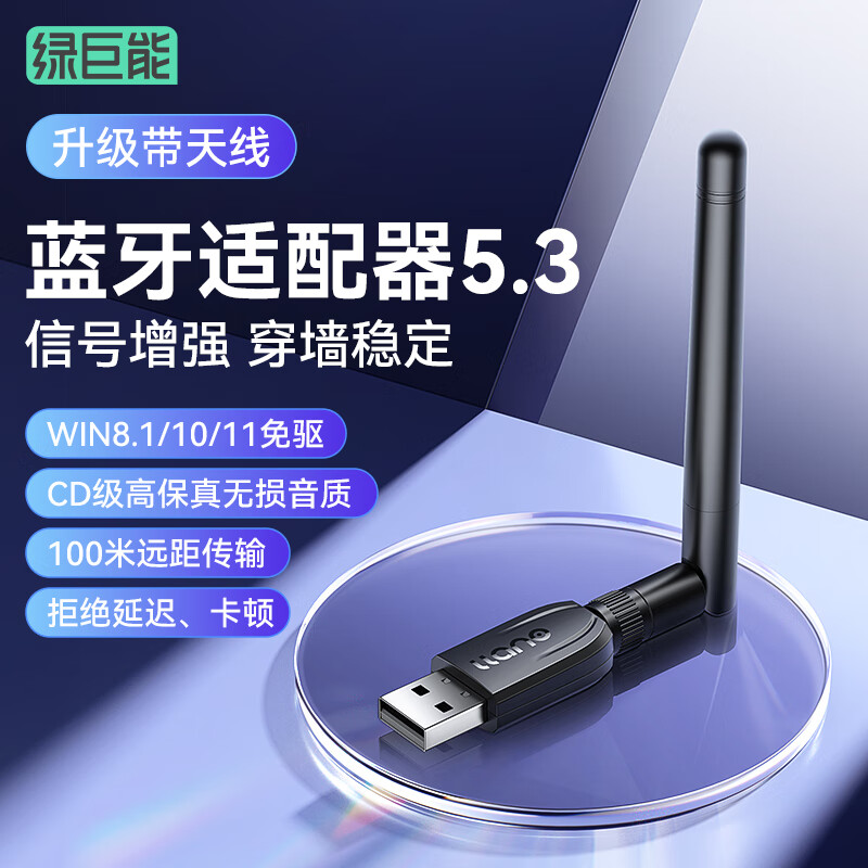 绿巨能(llano)USB蓝牙适配器5.3 蓝牙接收器发射器免驱笔记本电脑台式机外置模块车载音频音响打印无线耳机 自营
