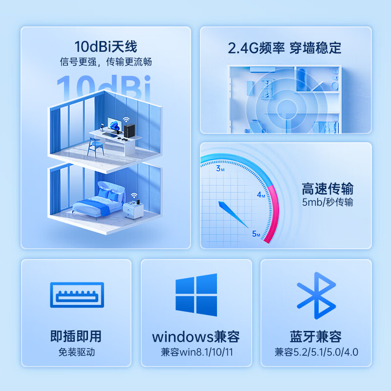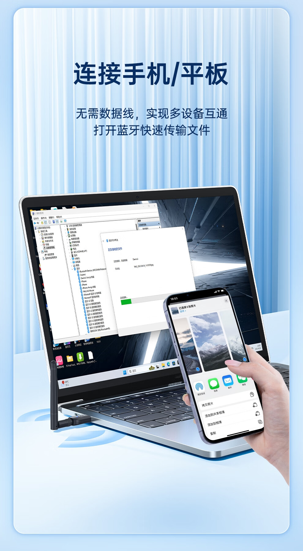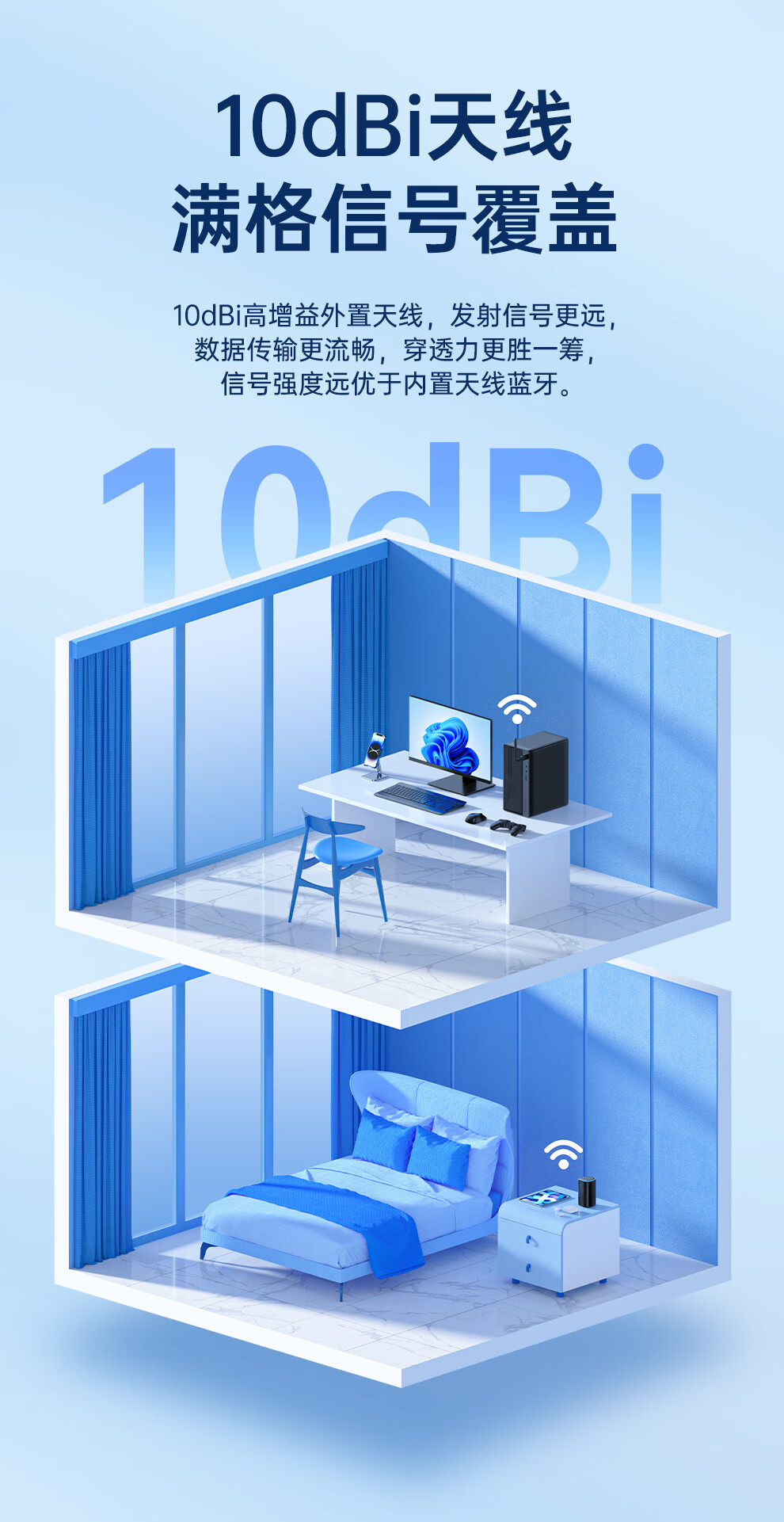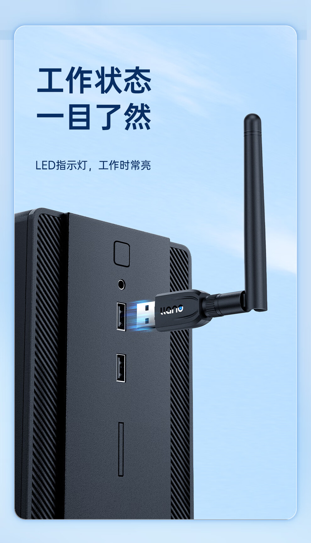 绿巨能(llano)USB蓝牙适配器5.3 蓝牙接收器发射器免驱笔记本电脑台式机外置模块车载音频音响打印无线耳机 自营