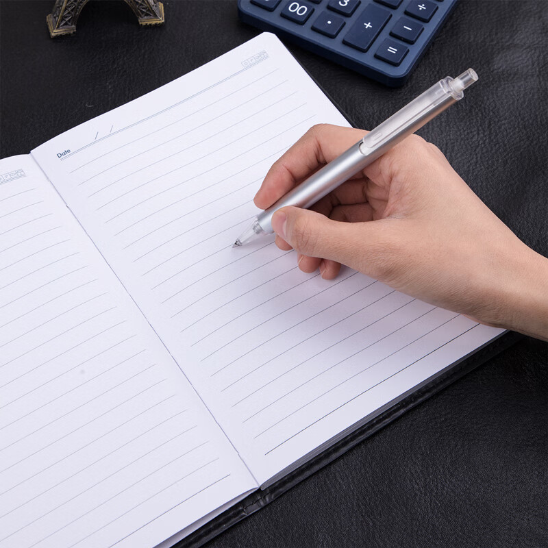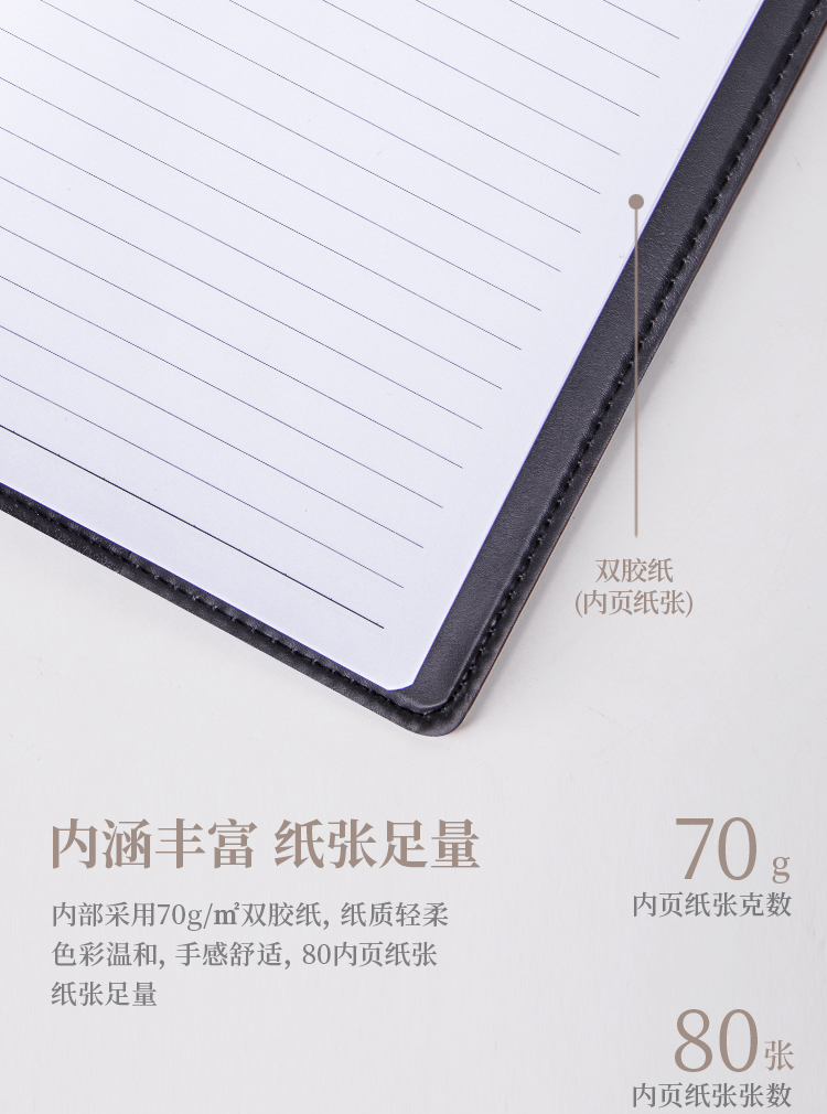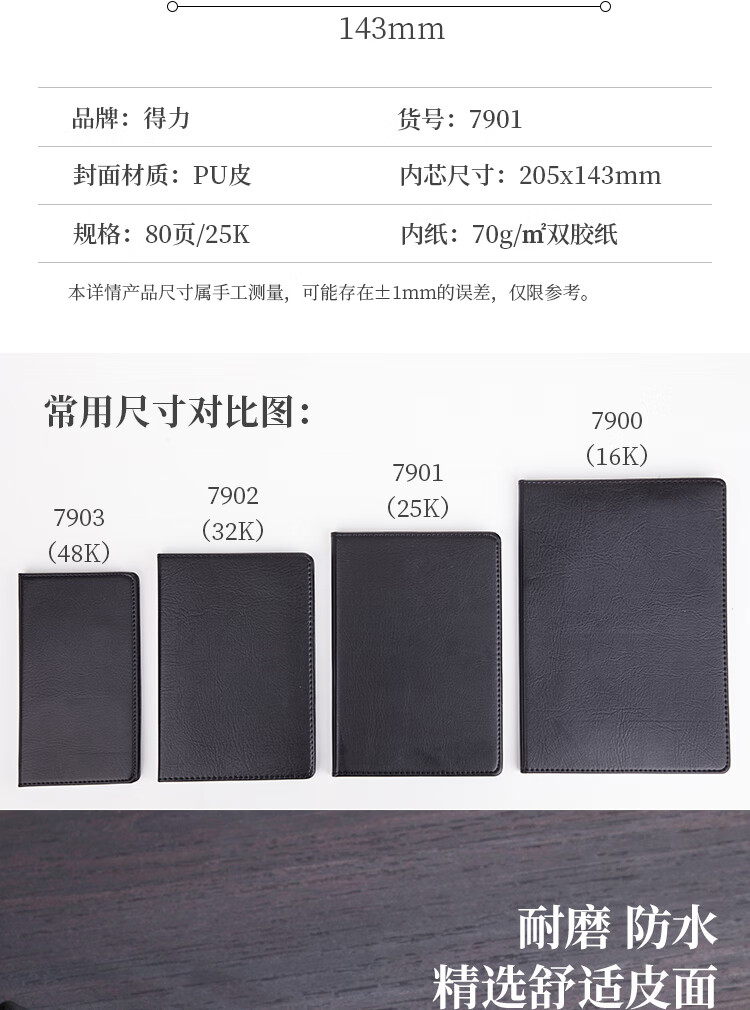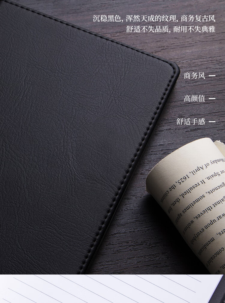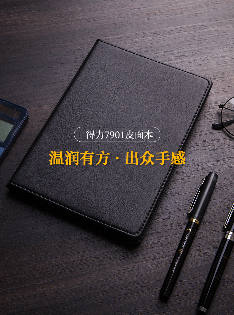得力(deli)25K80张商务经典皮面本 办公会议记事本笔记本子文具 黑7901 自营